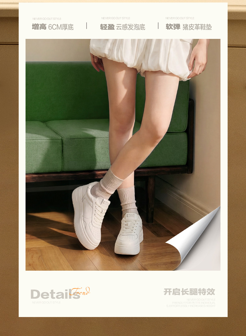 Shen Yue's Same Style Belle Step-In Platform Thick-Soled White Shoes, New Summer Height-Increasing Casual Sneakers E7J1Da Pre-Order