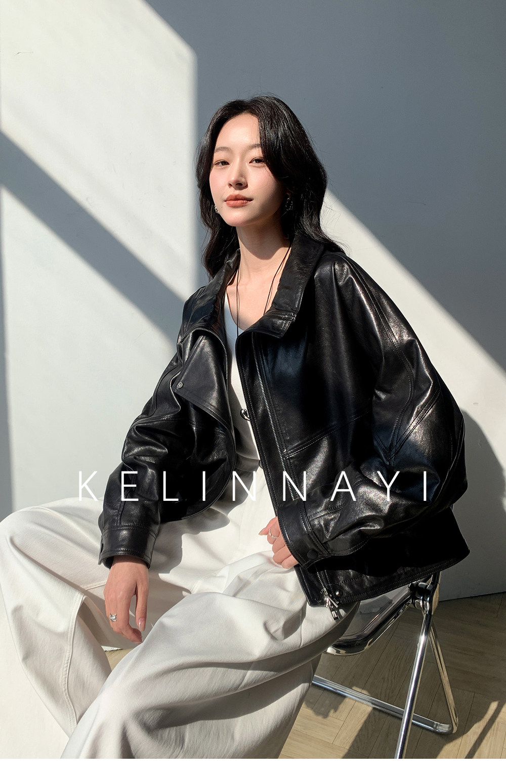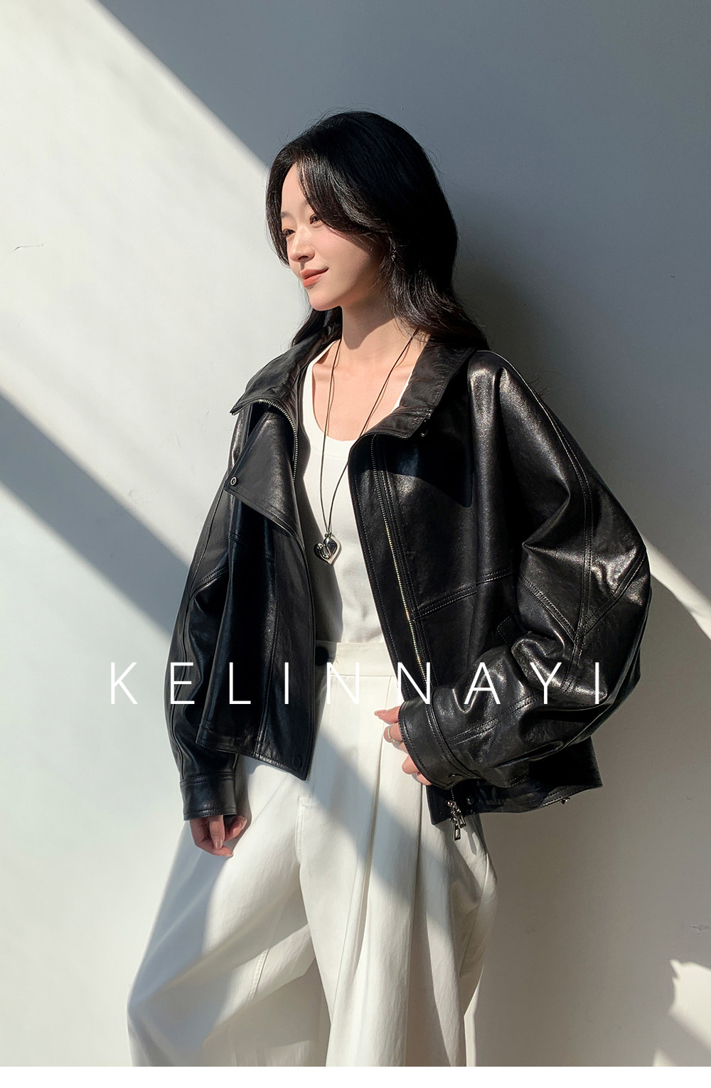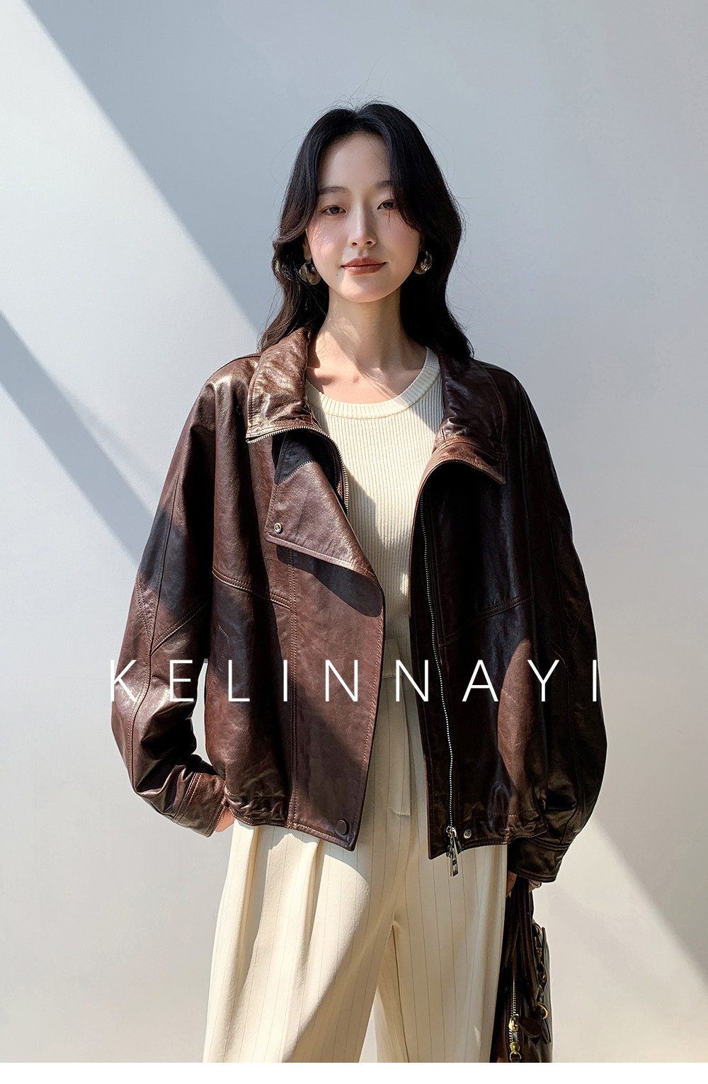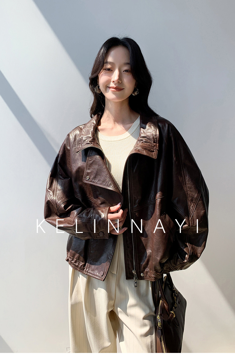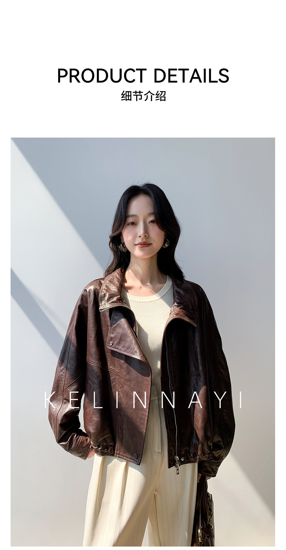 Imported Oil-Waxed Sheepskin Genuine Leather Jacket for Women, 2025 Autumn New Style, Loose Casual Short Leather Jacket