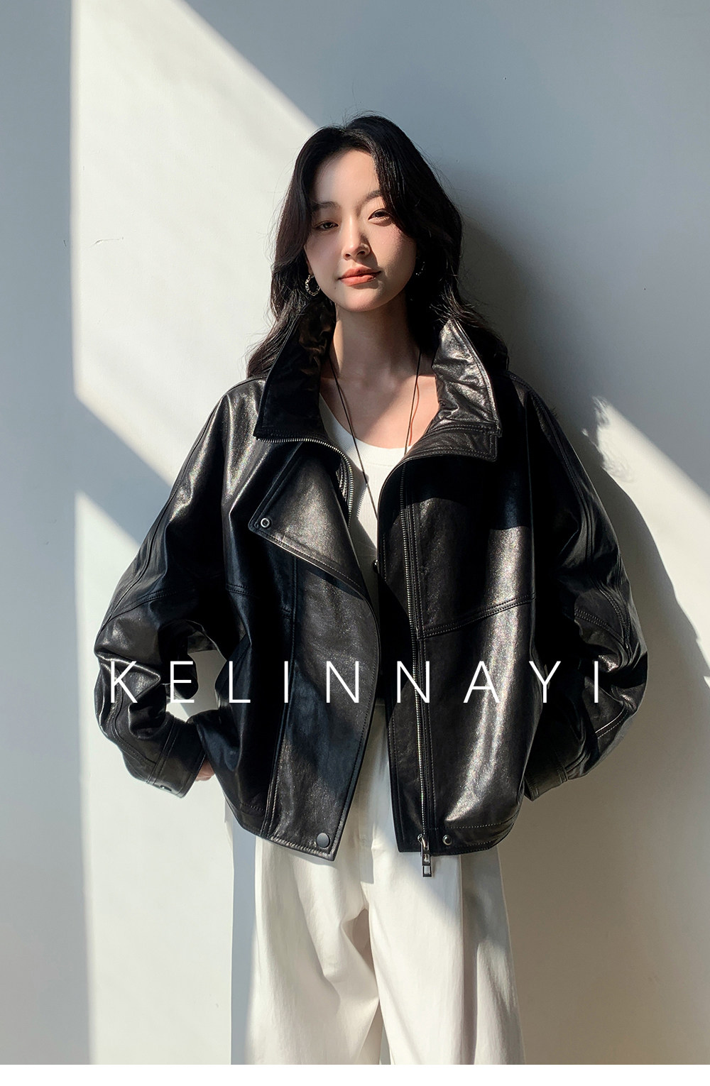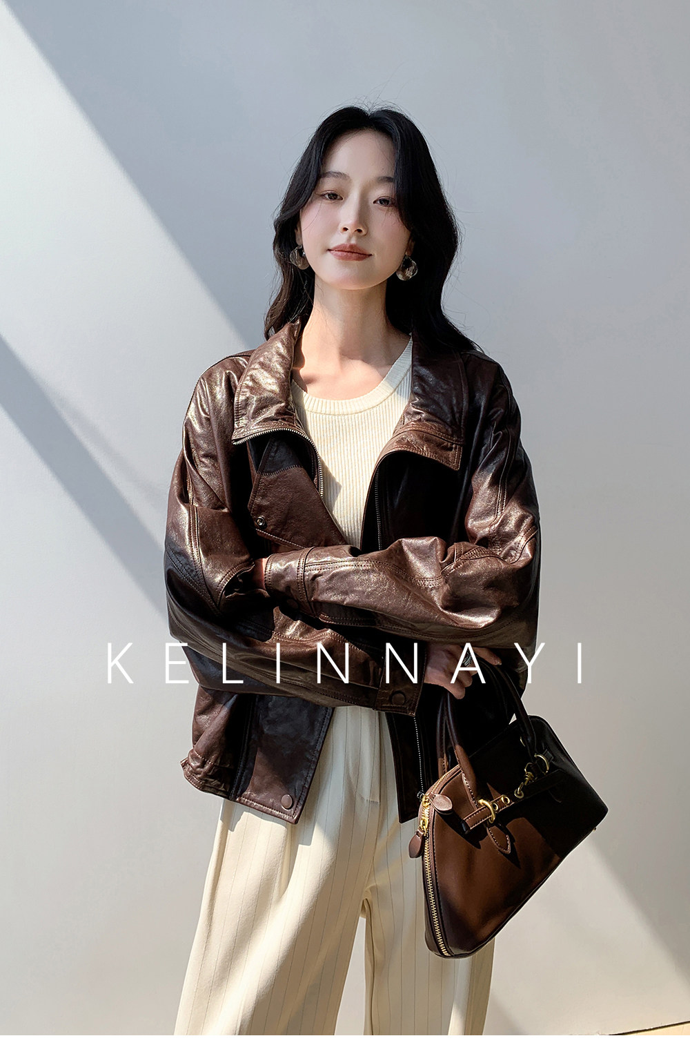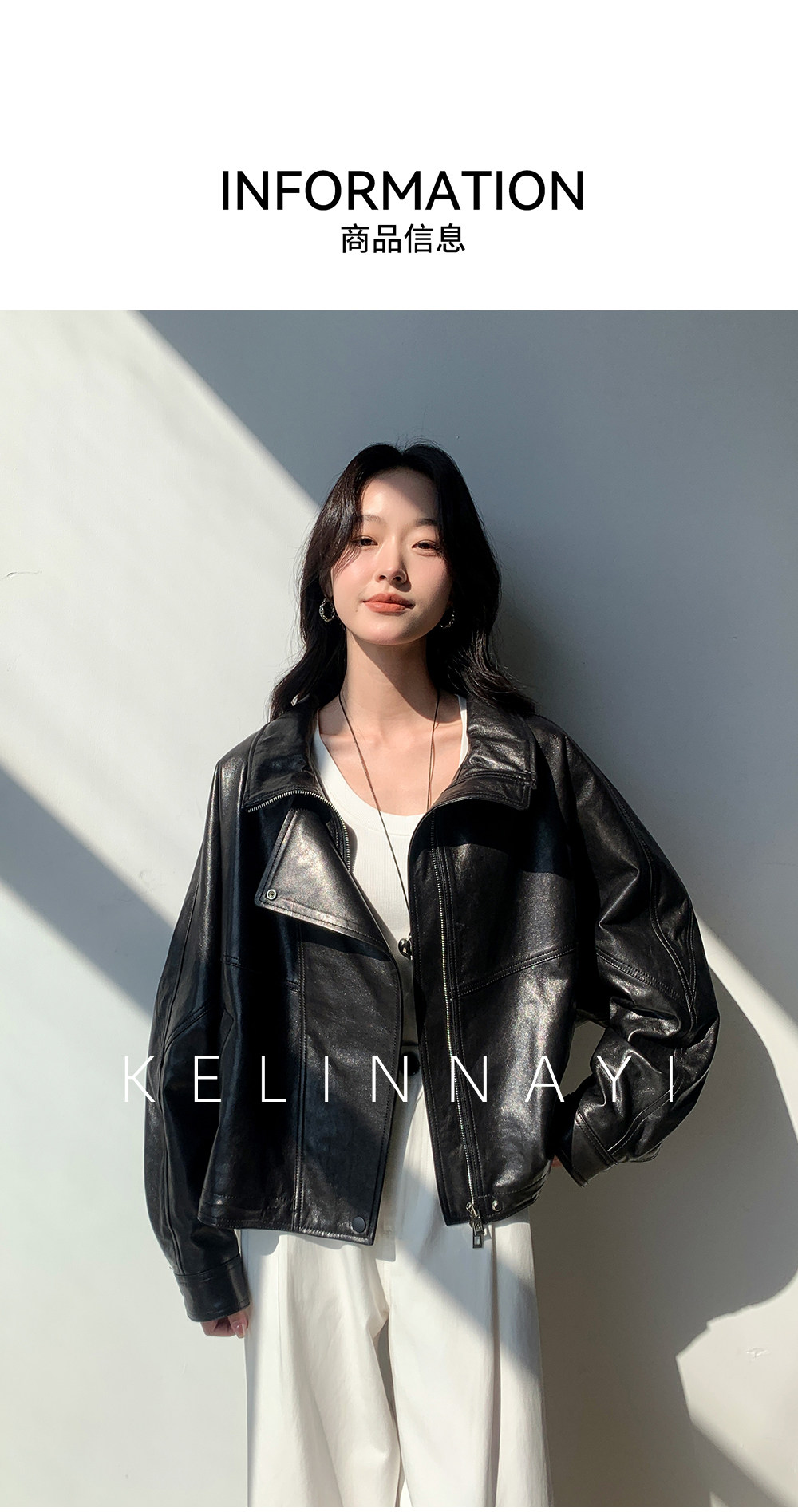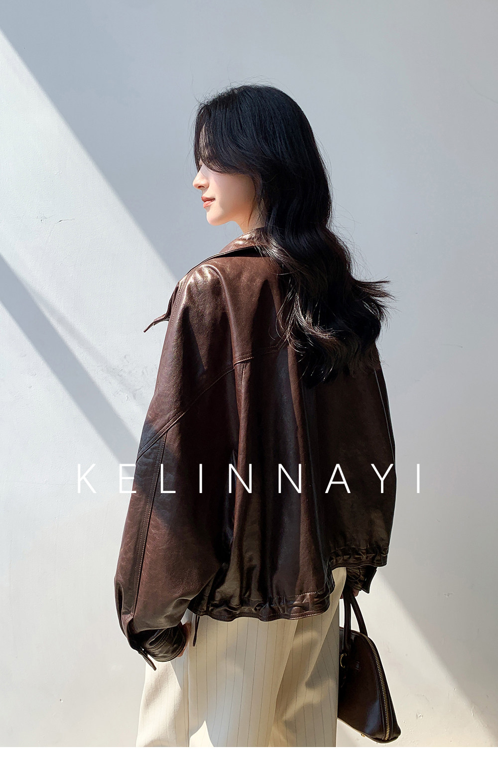 Imported Oil-Waxed Sheepskin Genuine Leather Jacket for Women, 2025 Autumn New Style, Loose Casual Short Leather Jacket