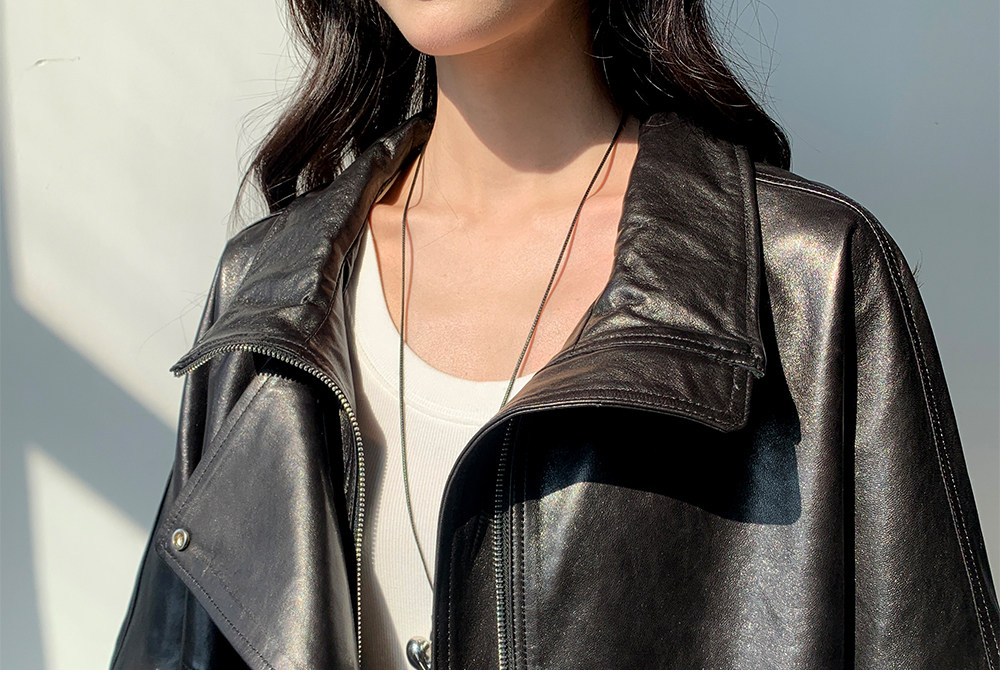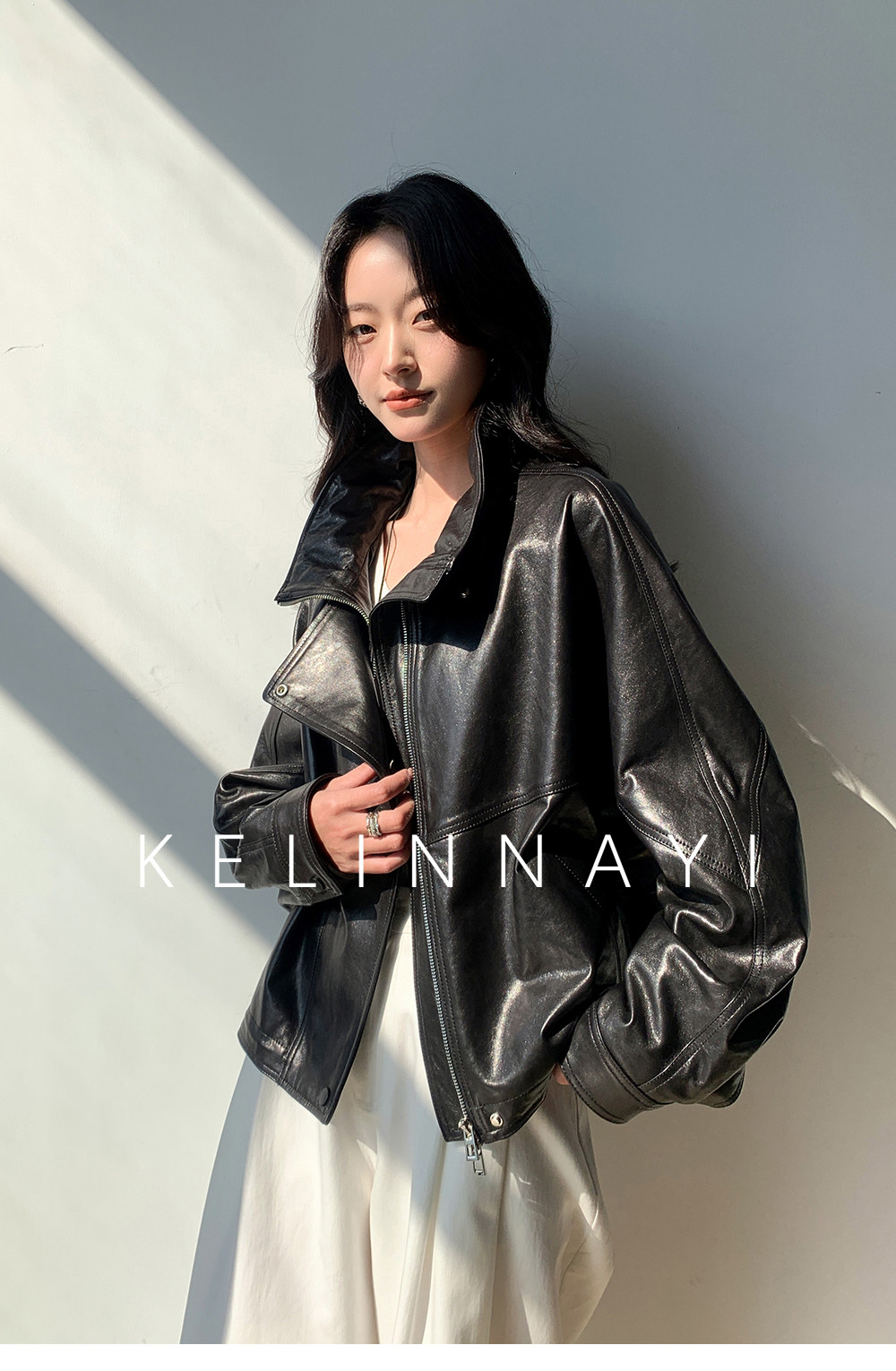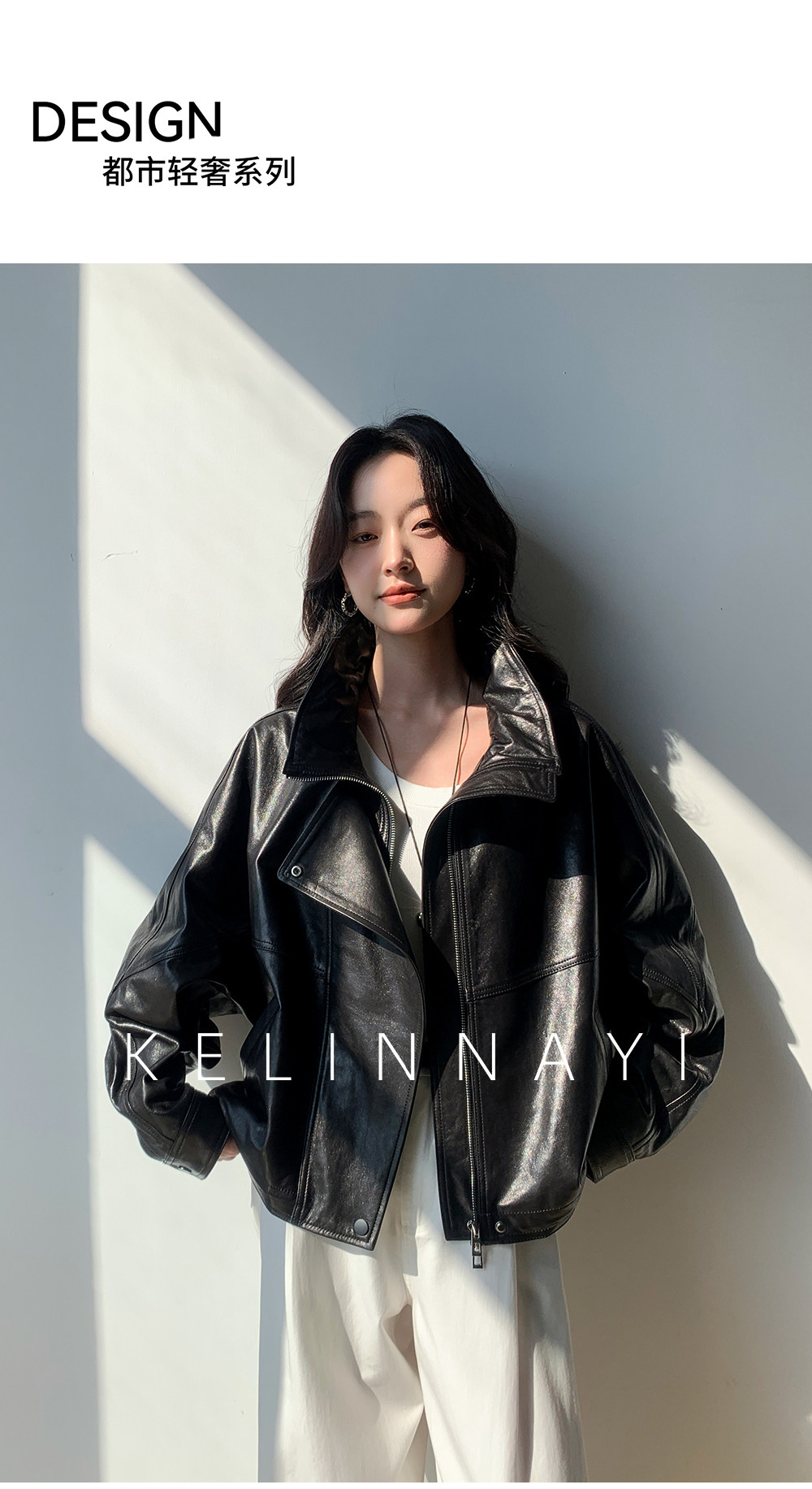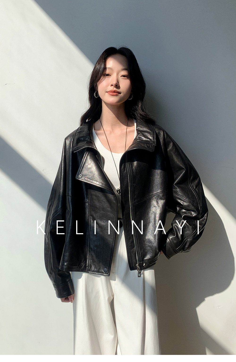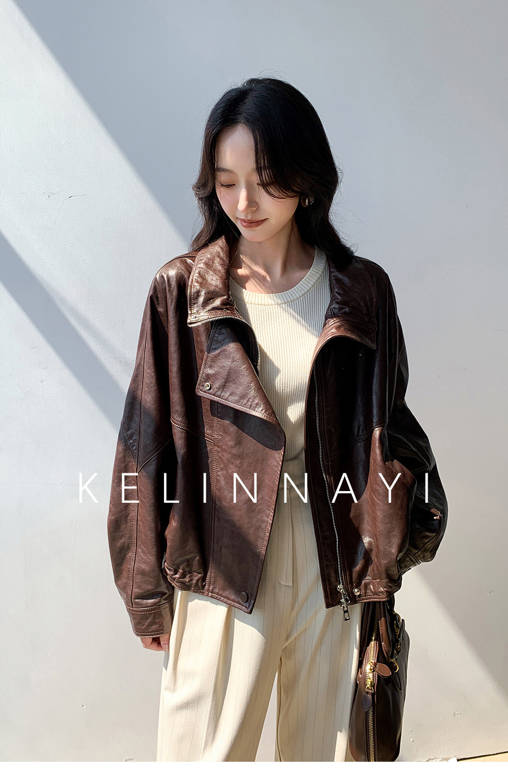 Imported Oil-Waxed Sheepskin Genuine Leather Jacket for Women, 2025 Autumn New Style, Loose Casual Short Leather Jacket