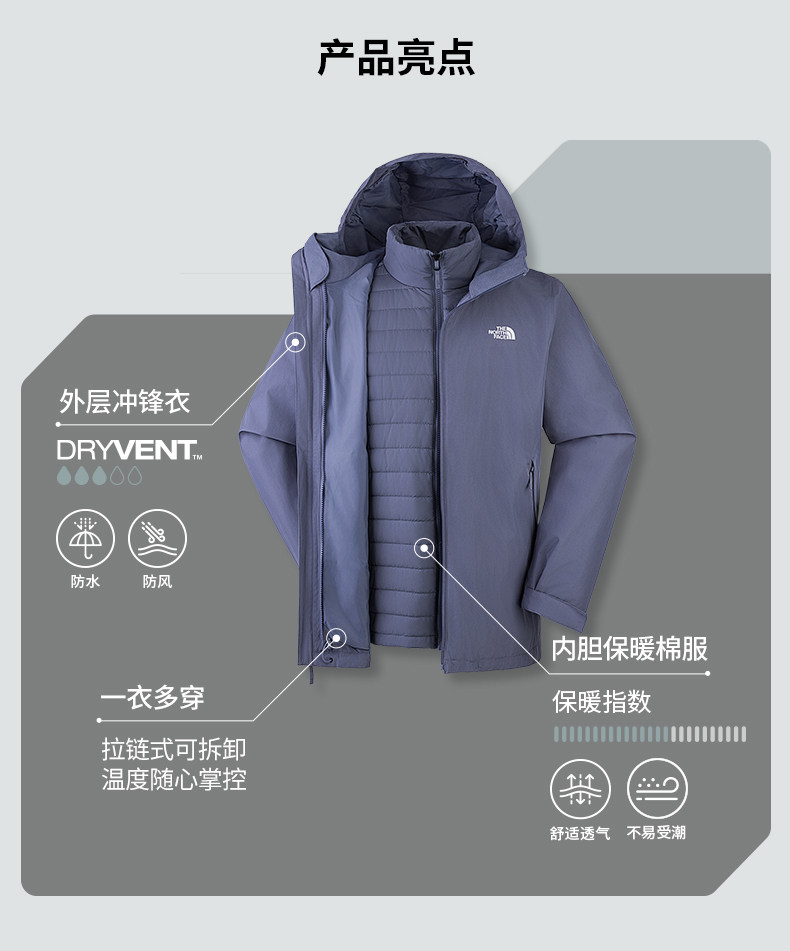 The North Face Men's Carto Cotton Jacket Three-In-One Waterproof Outdoor Jacket Thenorthface | 8Fhw