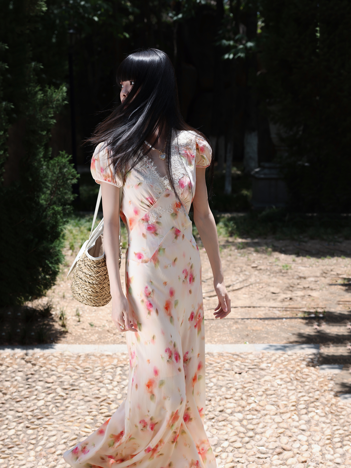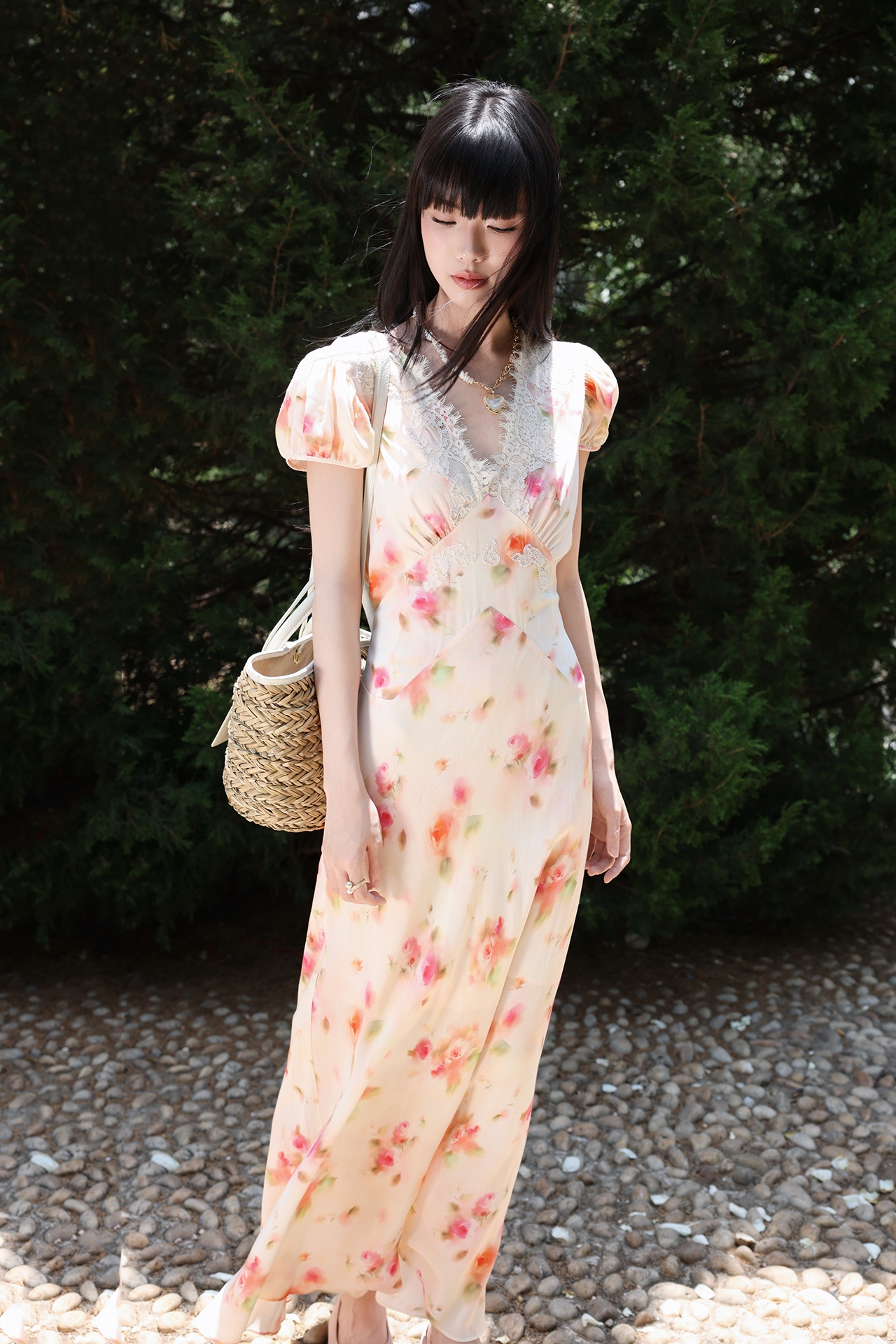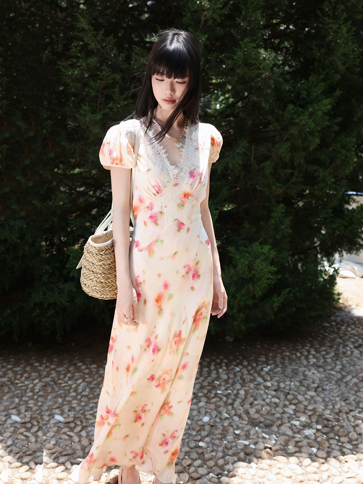 P.Tree “Manhattan Fireworks” Oil Painting-Style Lace V-Neck 100% Rayon Viscose Dress