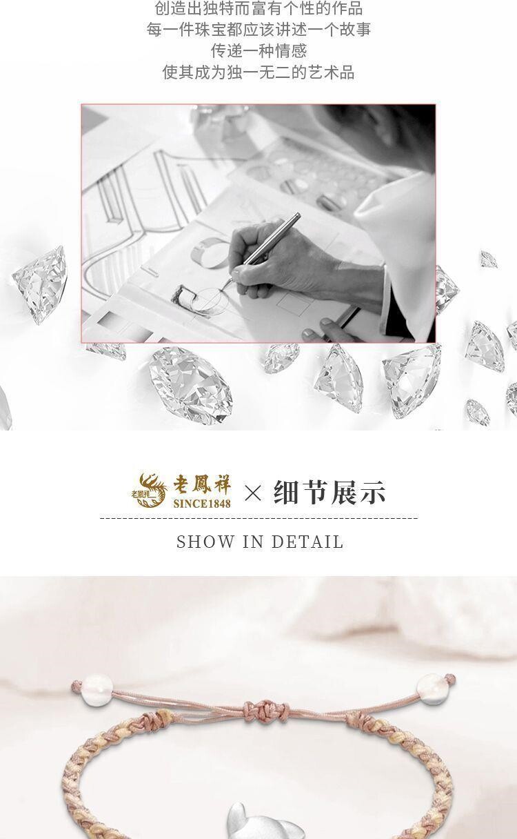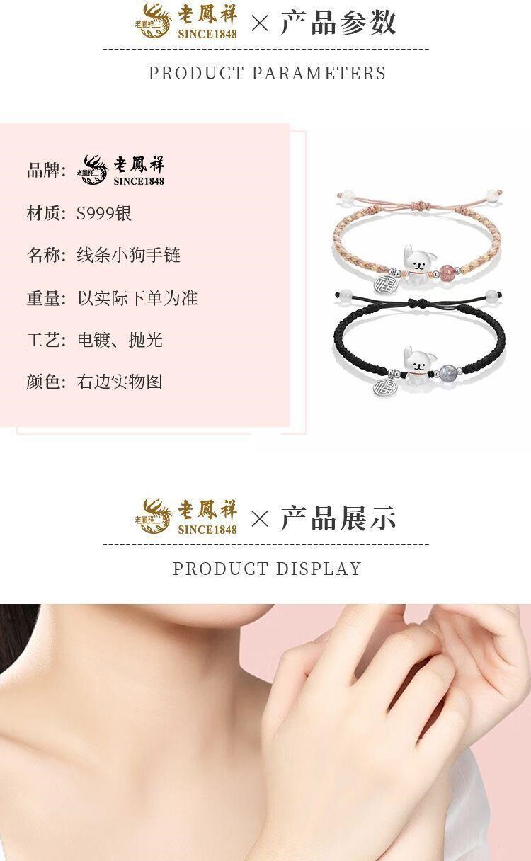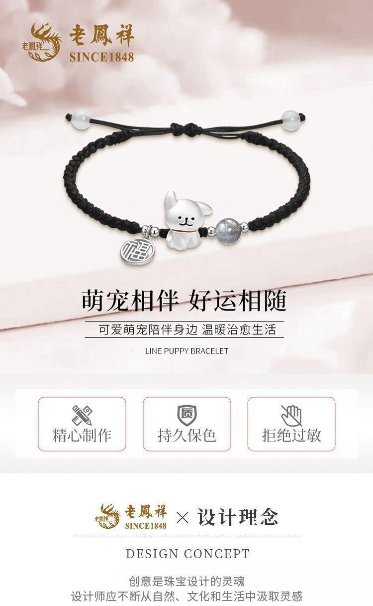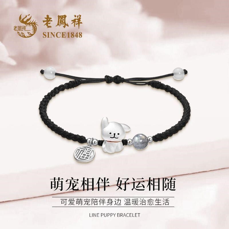 Lao Fengxiang 999 Pure Silver Cute Line-Drawing Puppy Bracelet Sweet Woven Bracelet Qixi Gift Box for Girlfriend or Wife