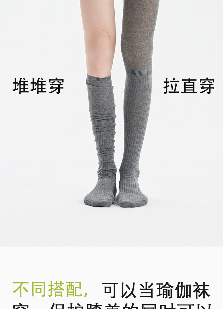 Cubooboo Women's Socks for Spring and Autumn, Gray Slouchy Calf Socks, Over-The-Knee Loose High Tube Socks, Slimming Vertical Stripe Cotton Socks for Women