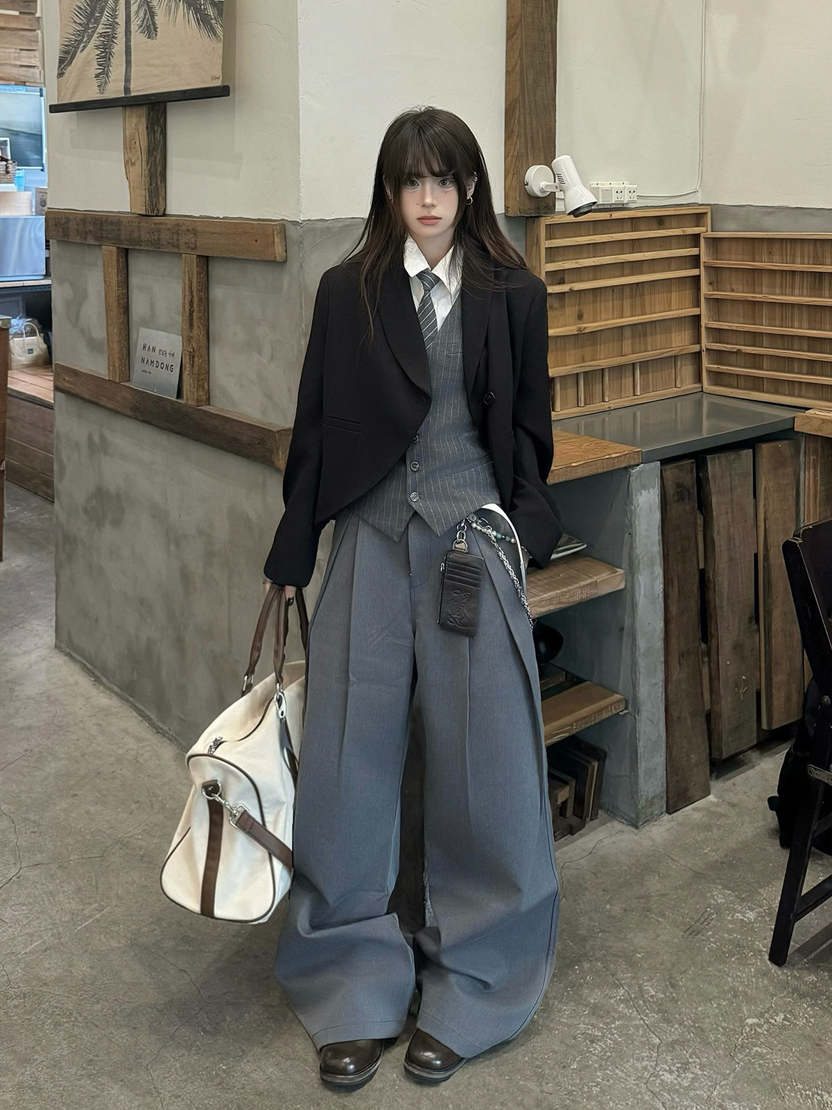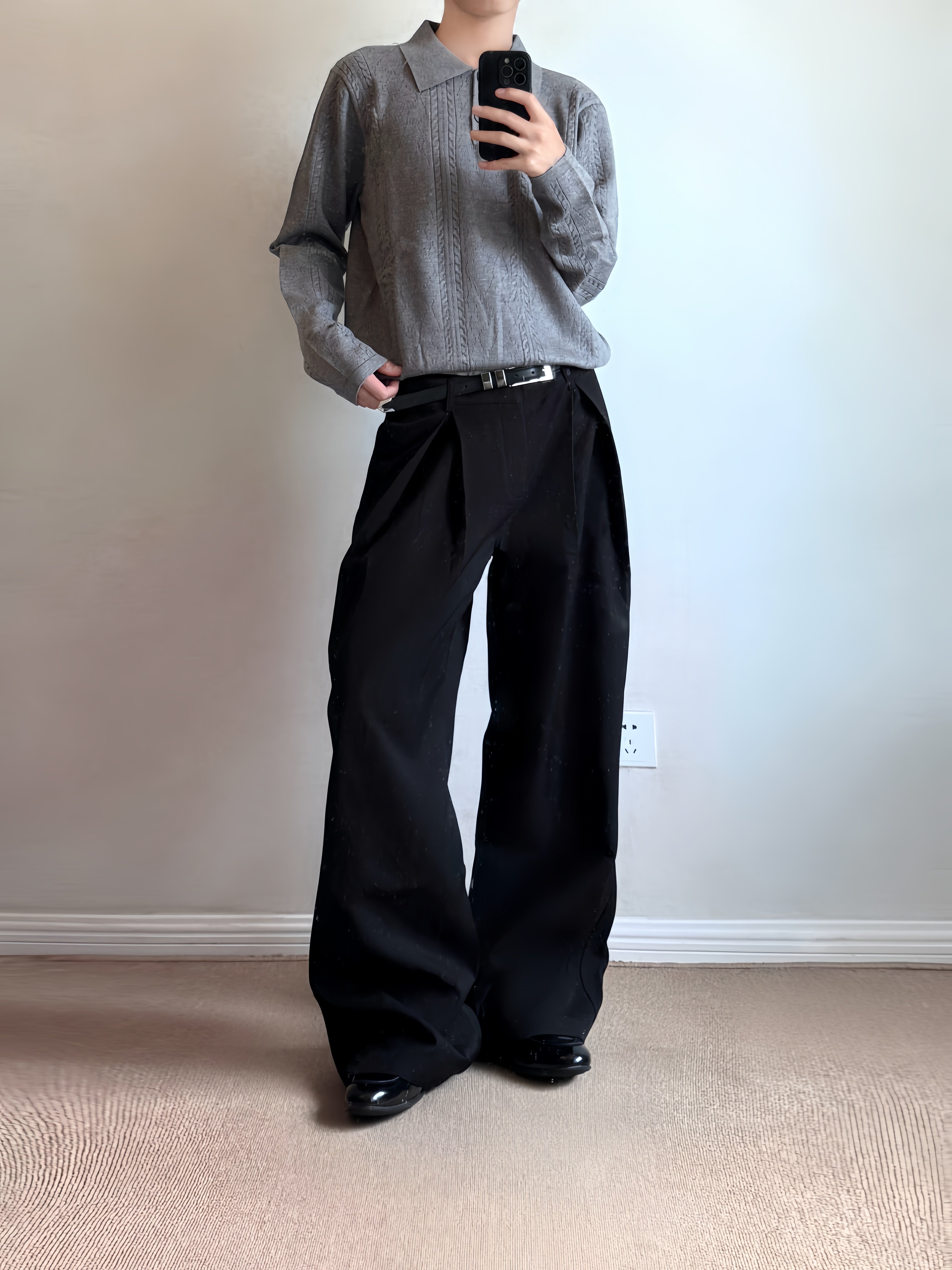 Amateurfit Old Money Style Three-Dimensional Pleated A-Line Silhouette Drapey Scimitar Tr Dress Pants for Commuting and Casual Wear