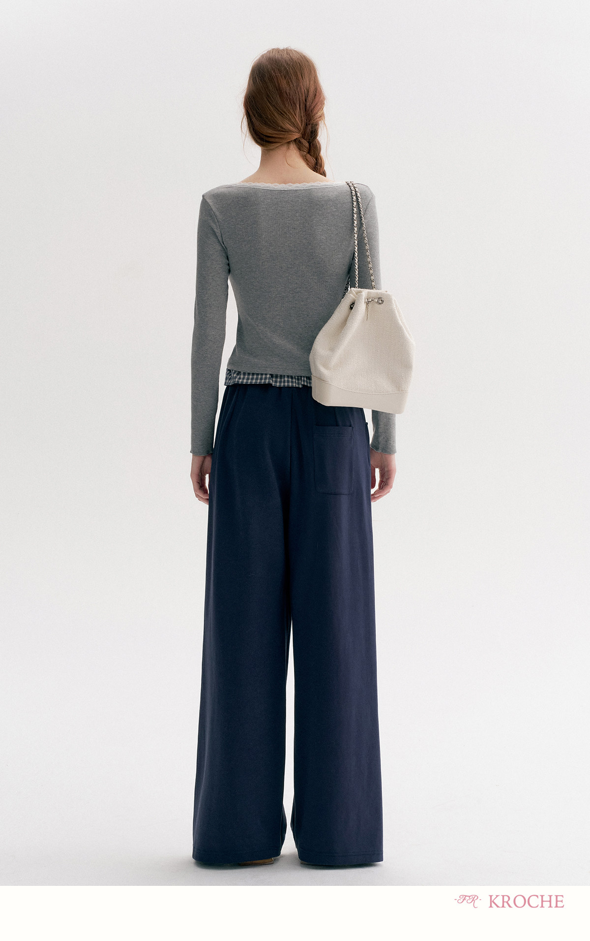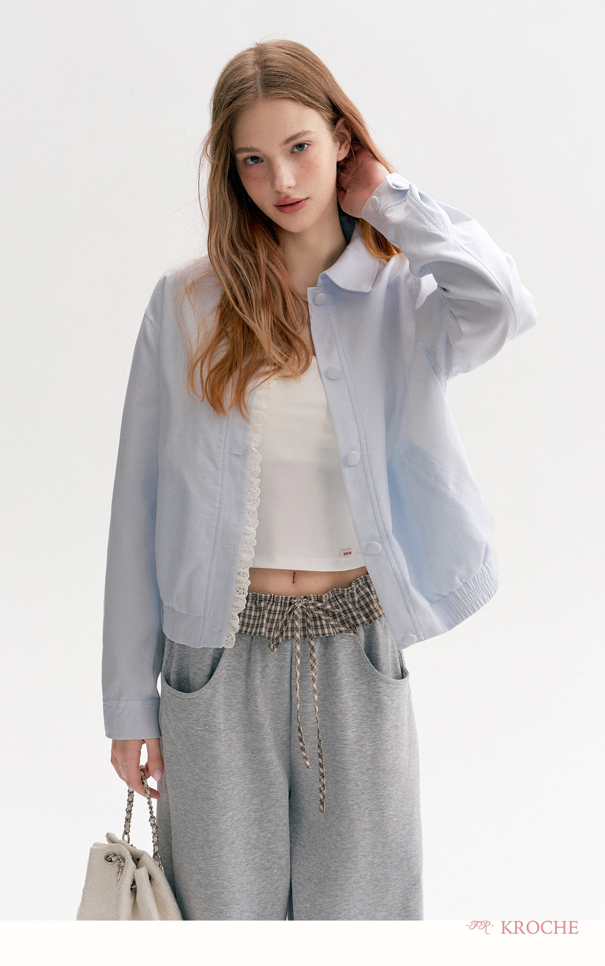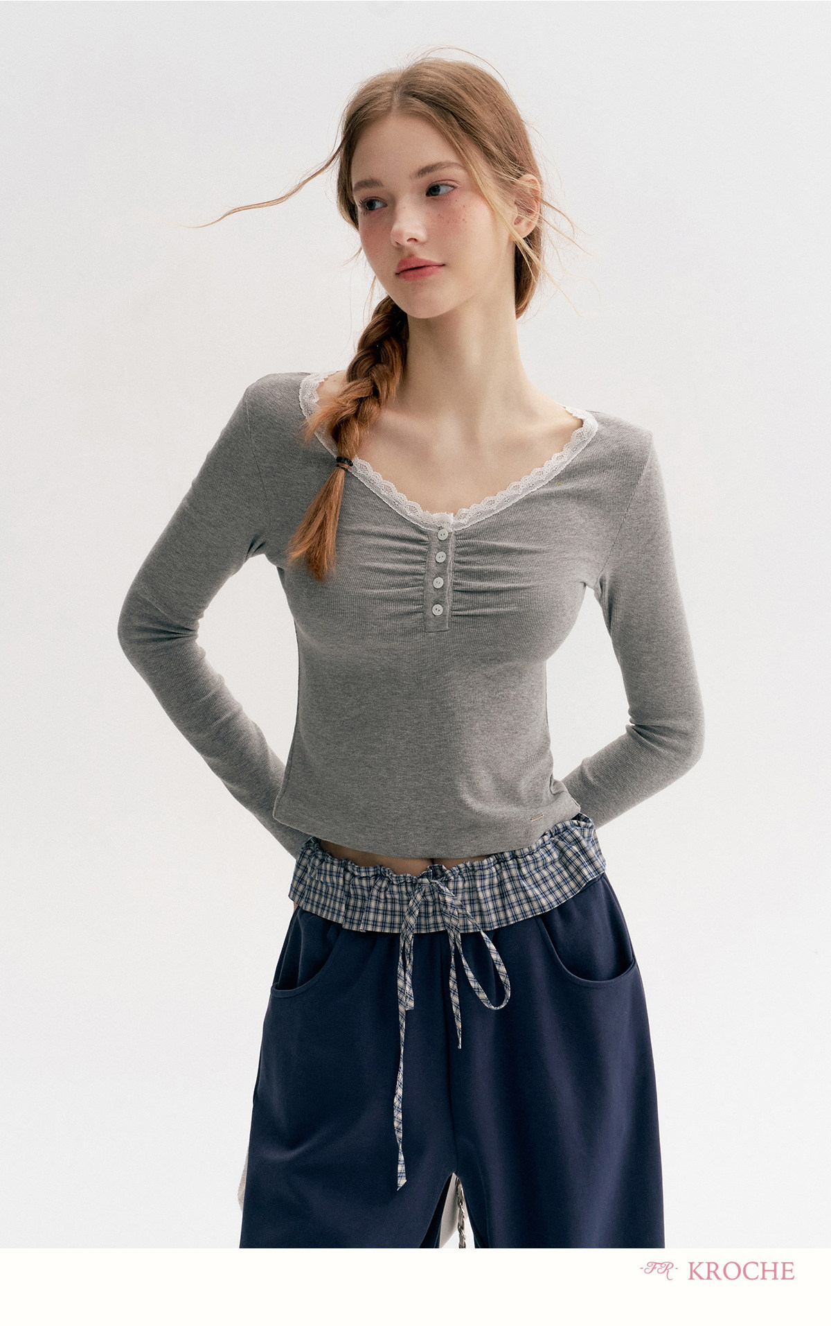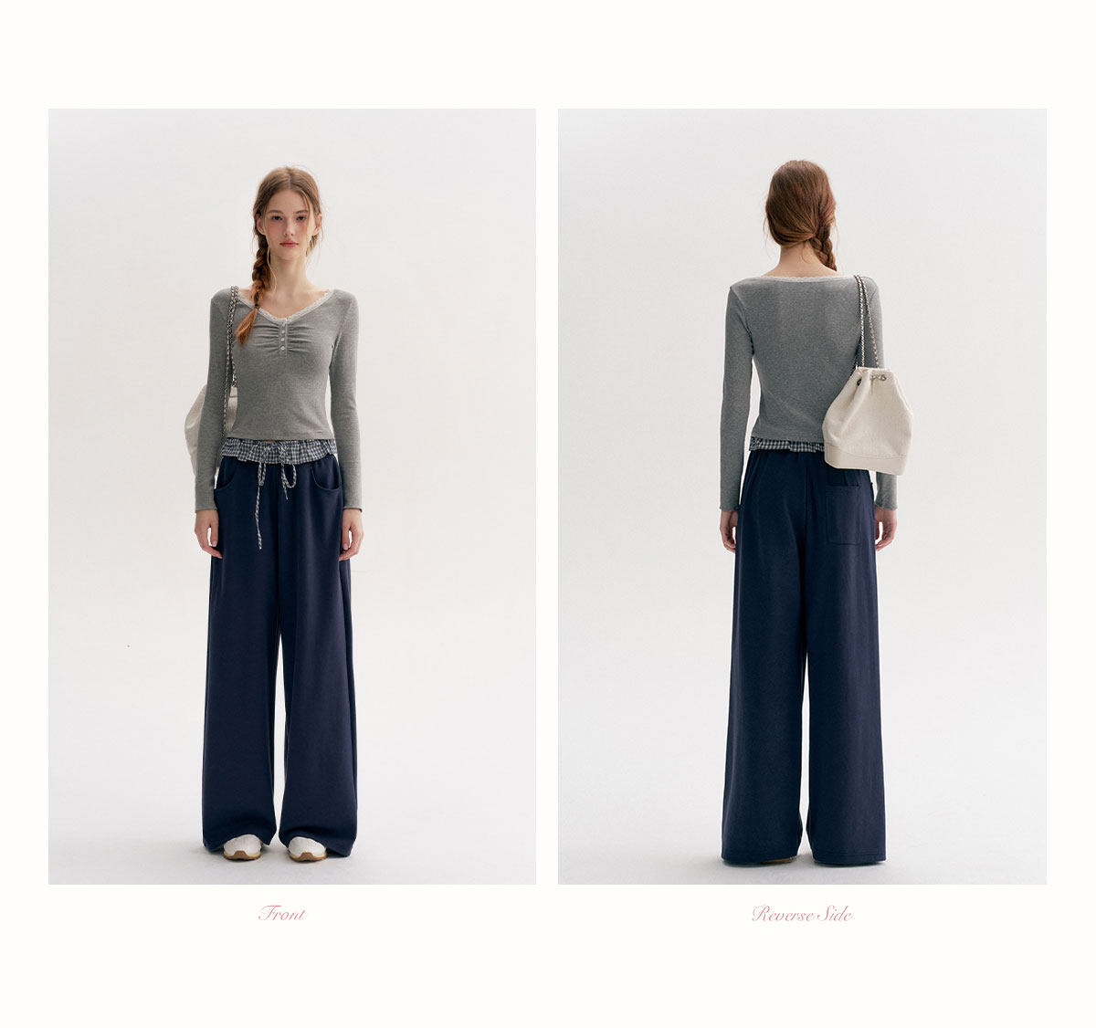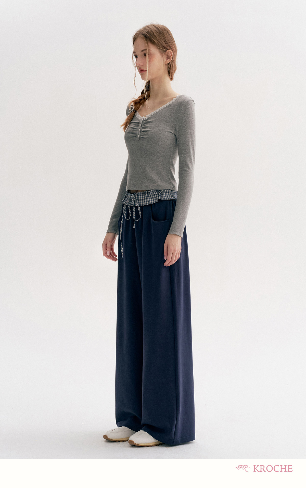 Amy's Same Style Kroche Color-Blocked Plaid Lace Patchwork Elastic Waist Drawstring Wide-Leg Casual Sweatpants