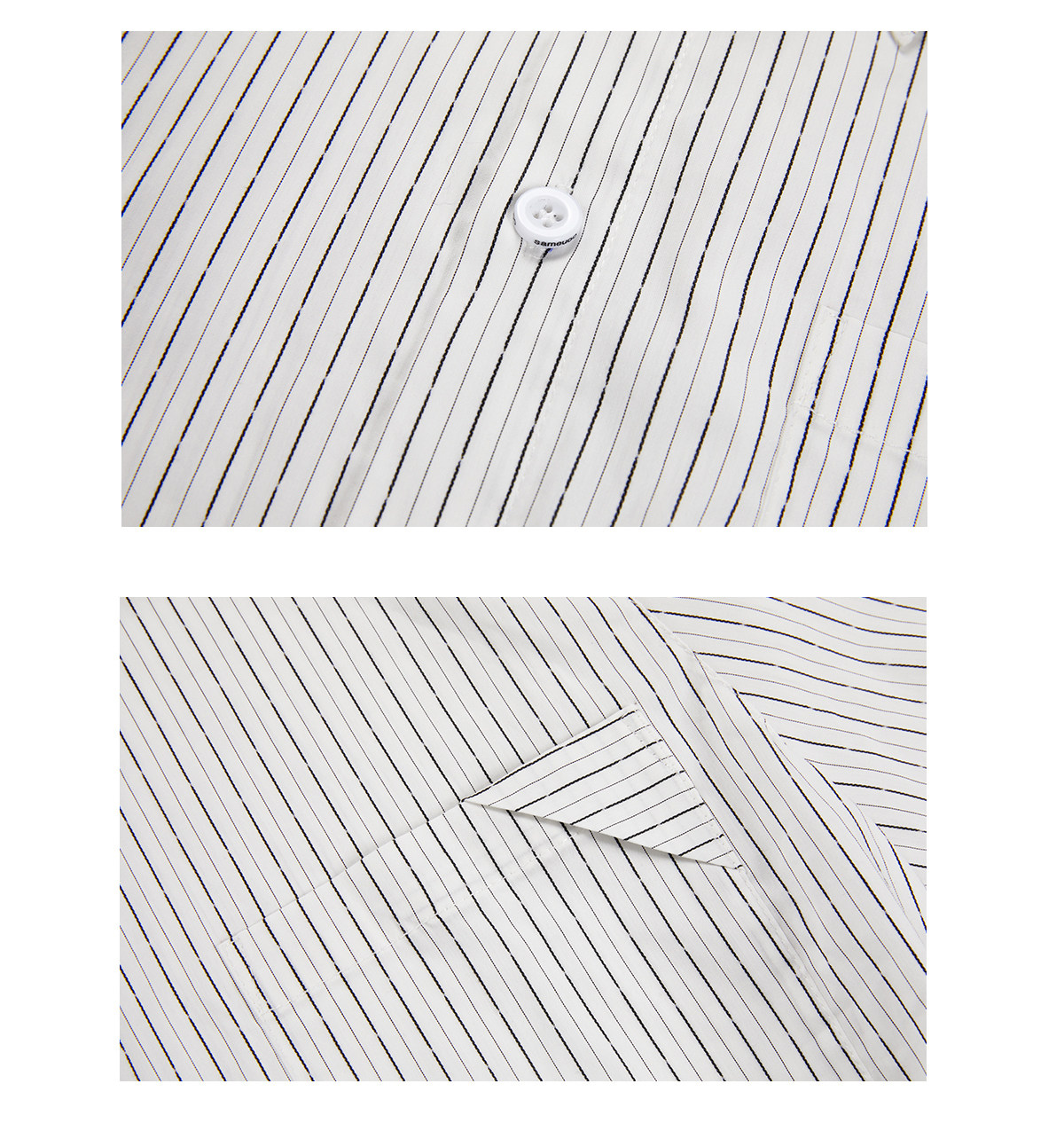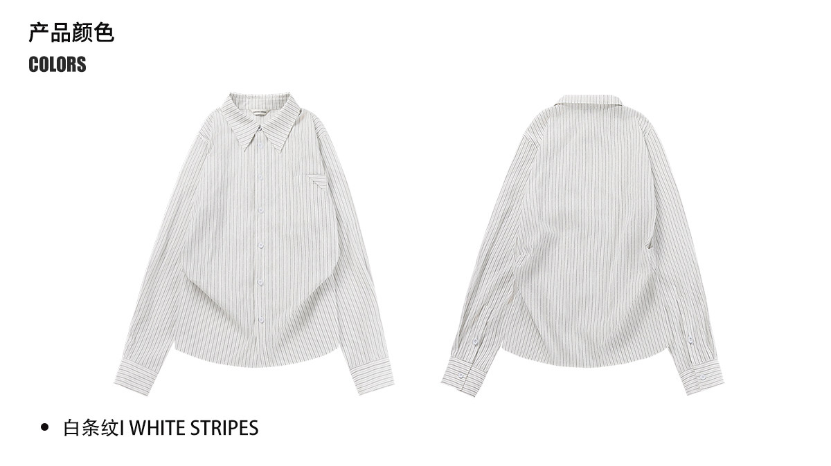 Sameuoo Free-Range Culture "Yinying" Waist-Cinching Modern Unisex White Striped Long-Sleeve Shirt