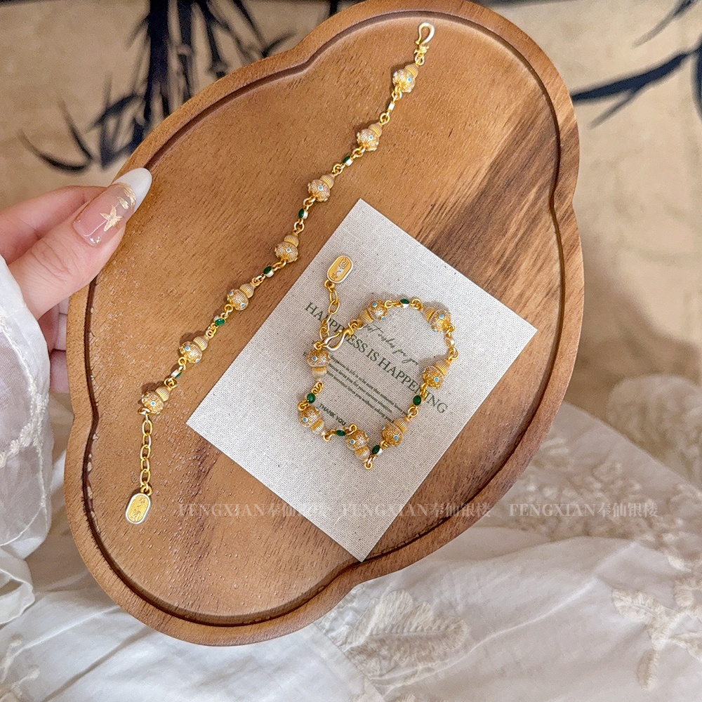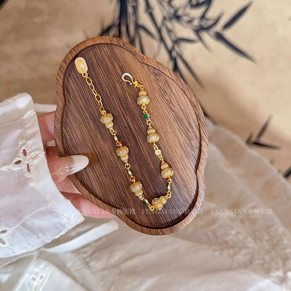 Cloud Gourd 999.9 Pure Silver Peace and Joy Sterling Silver Bracelet for Women with Gold Enamel New Chinese Style