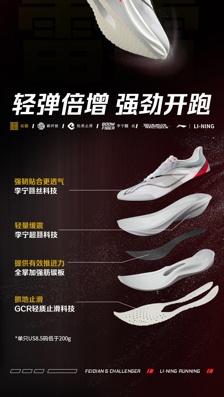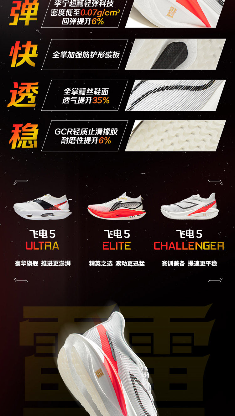 Li-Ning Feidian 5 Challenger丨 Ultra Carbon Plate Running Shoes Men's Professional Racing Sports Shoes