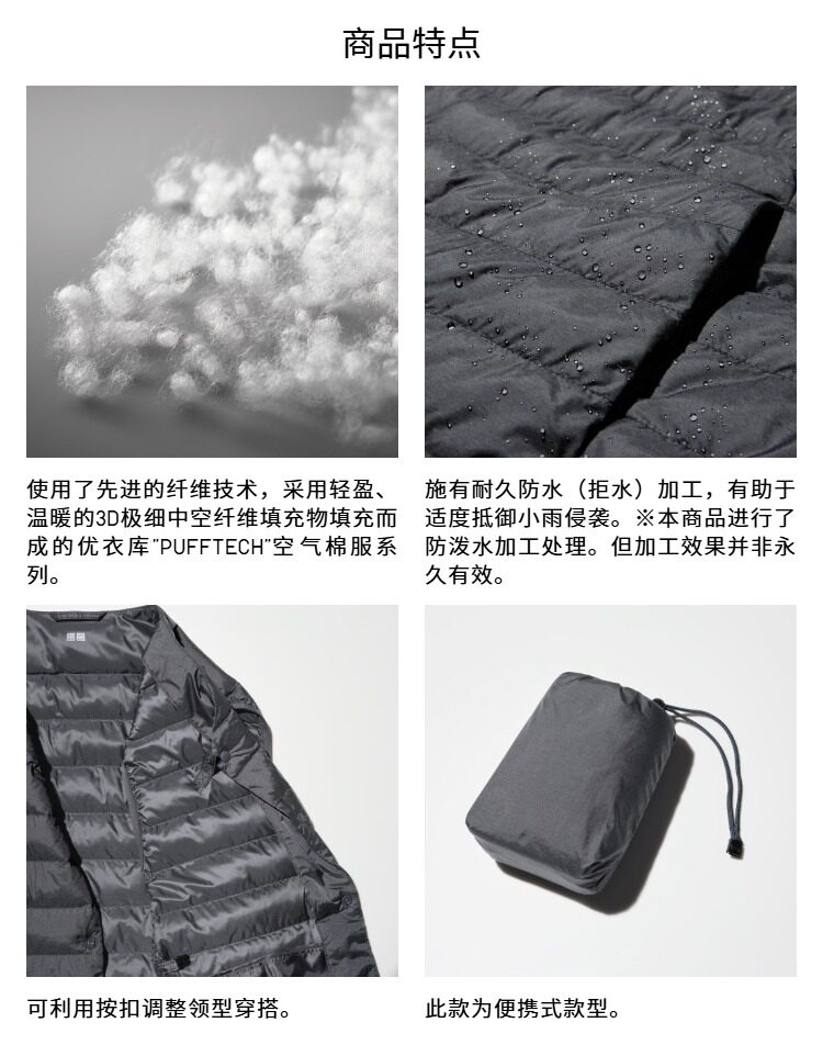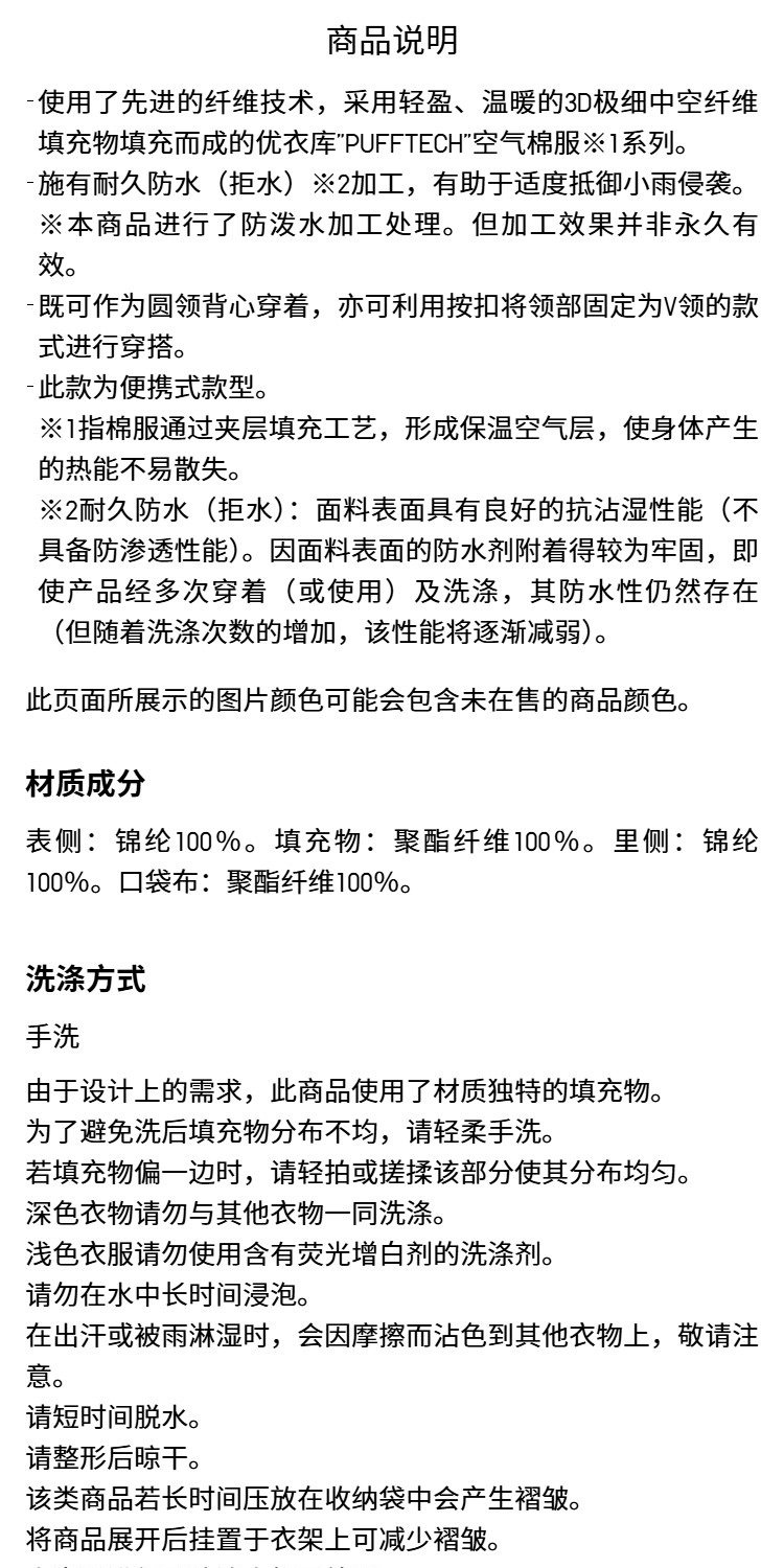 Uniqlo Men's and Women's Pufftech Air Cotton Jacket Portable Vest Ribbed Vest 478272