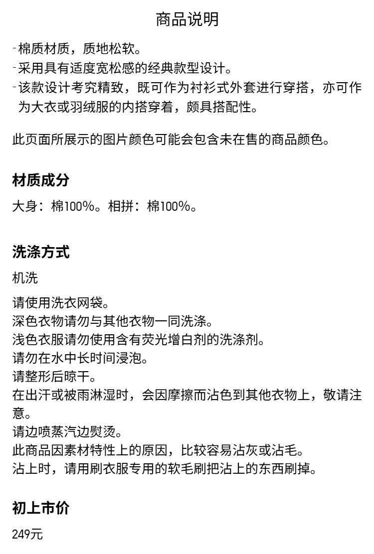 Uniqlo Men's and Women's Corduroy Work Shirt Long-Sleeved Shirt Casual Retro 480295