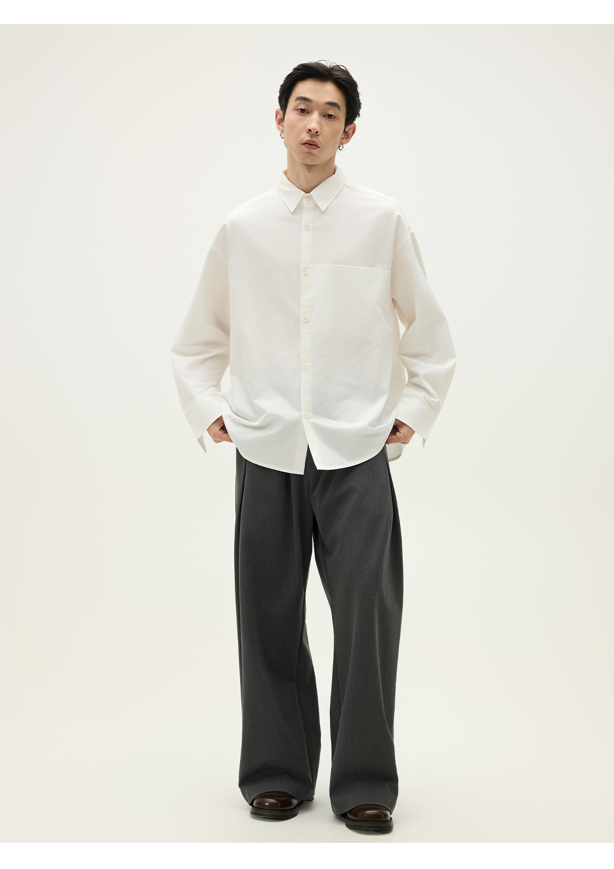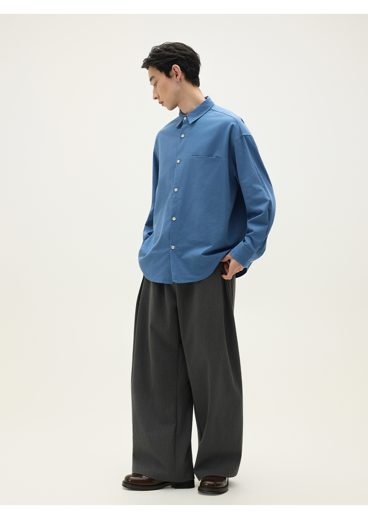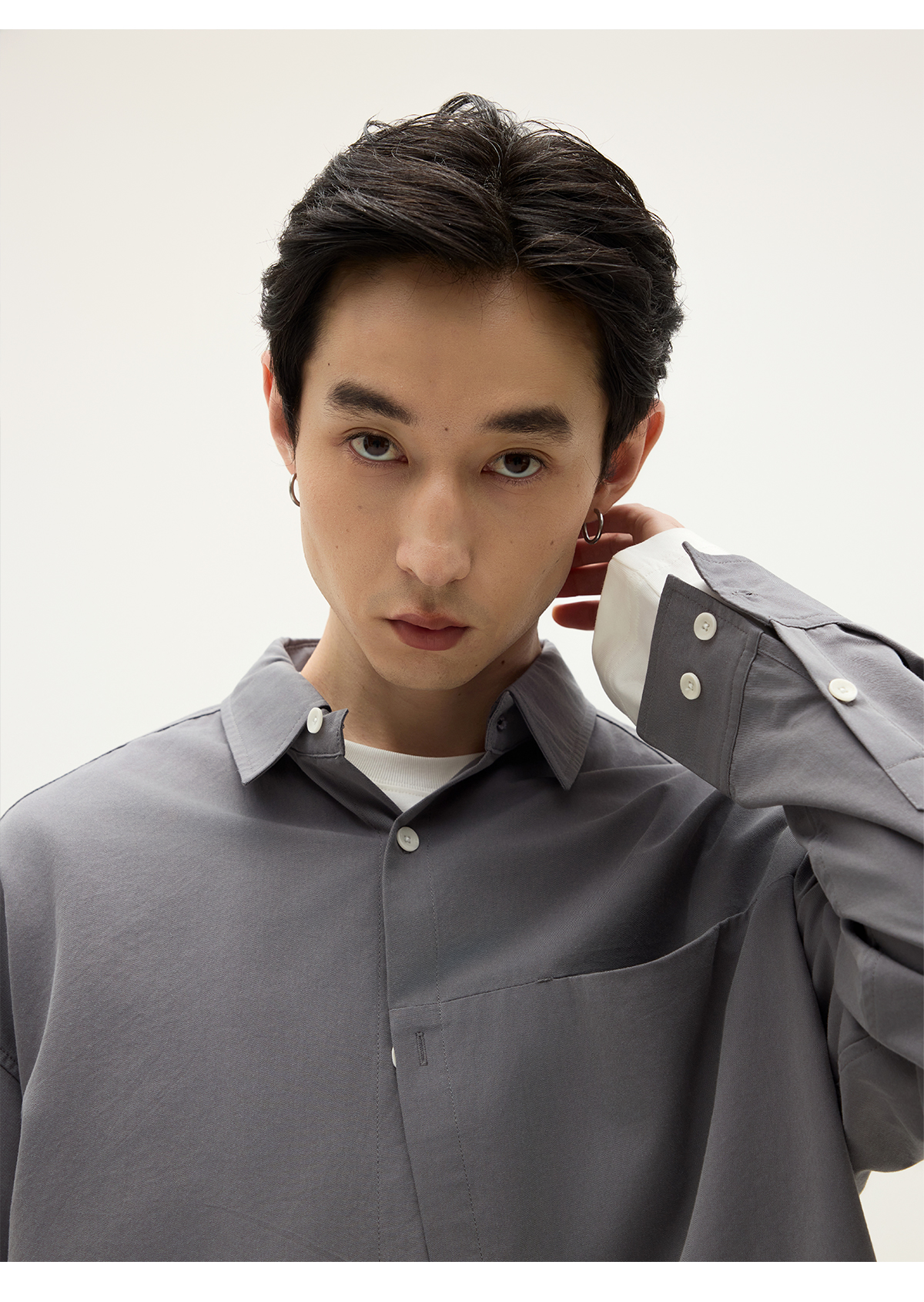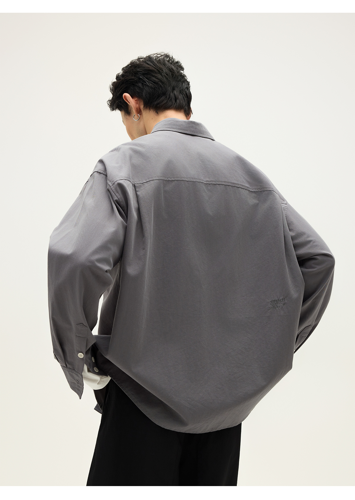 Somenum Forest 25Aw'Lyocell Cotton Blend' Embroidered Unisex Versatile Skin-Friendly Long Sleeve Shirt