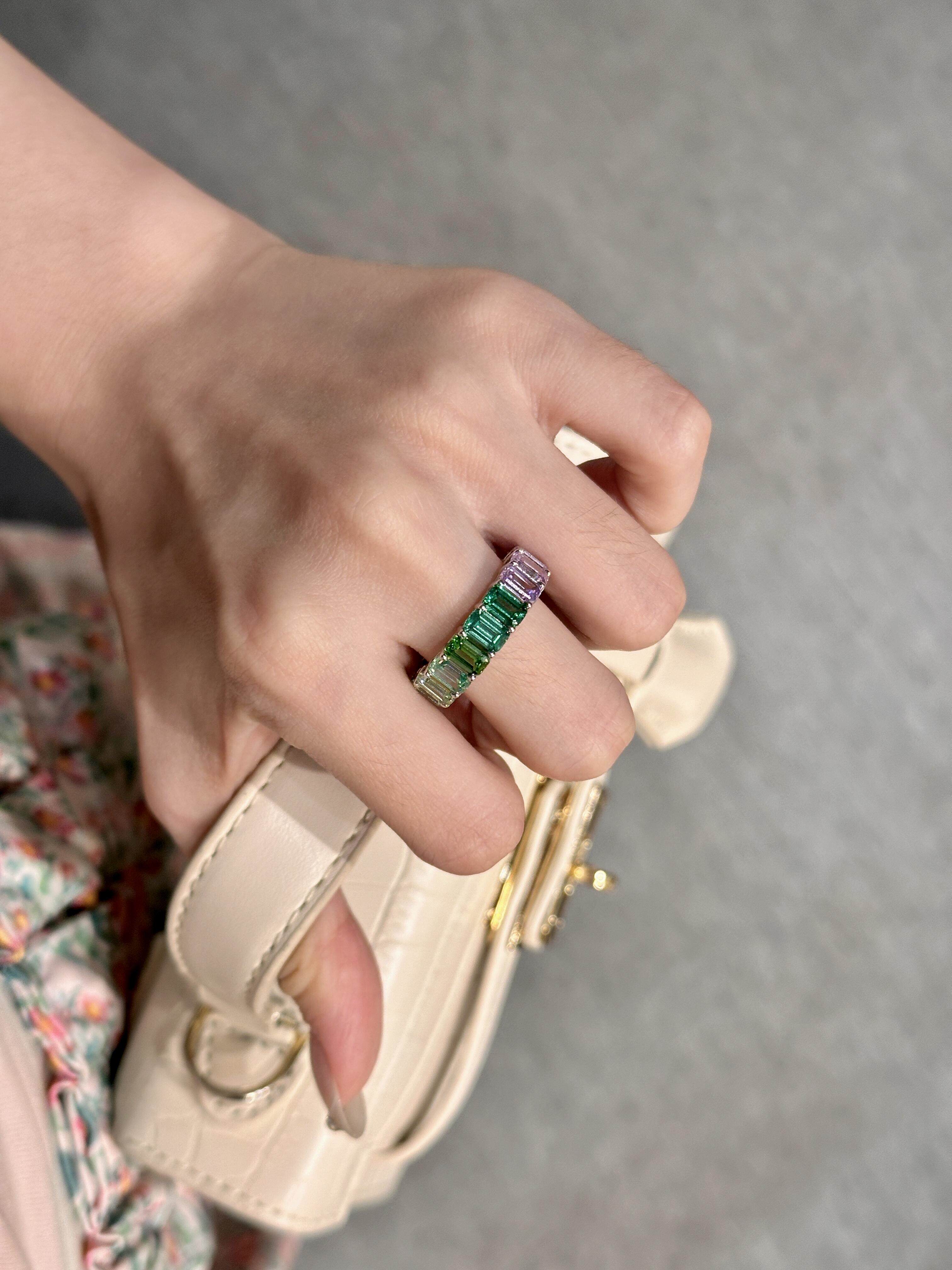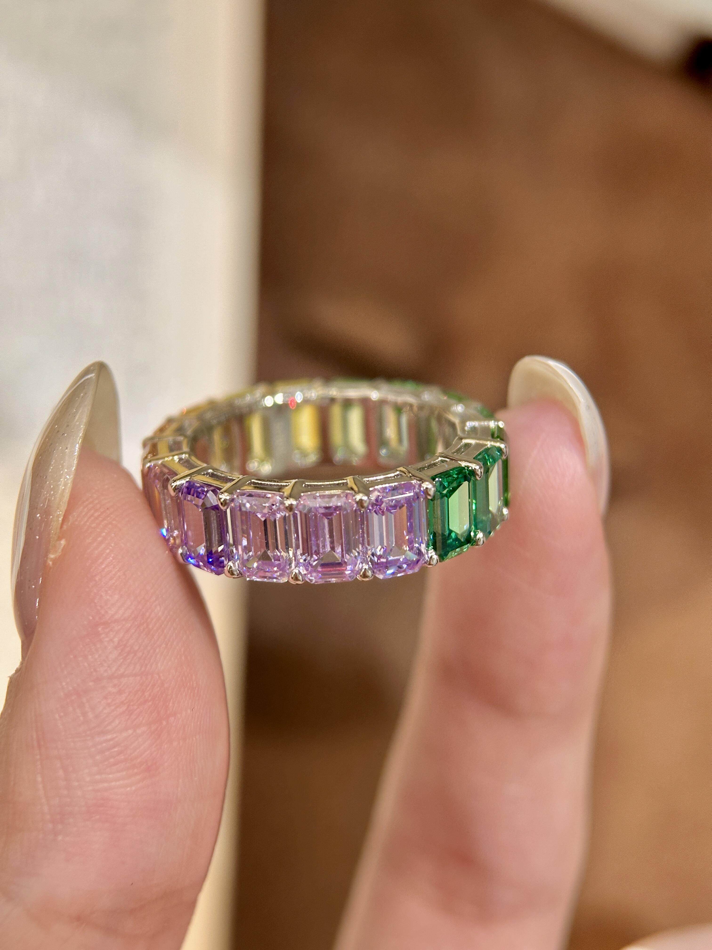 Ledi [Rainbow Gradient Ring] Emerald Cut | Stunning High-End Color Scheme | S925 Silver Ring with an Elegant Design