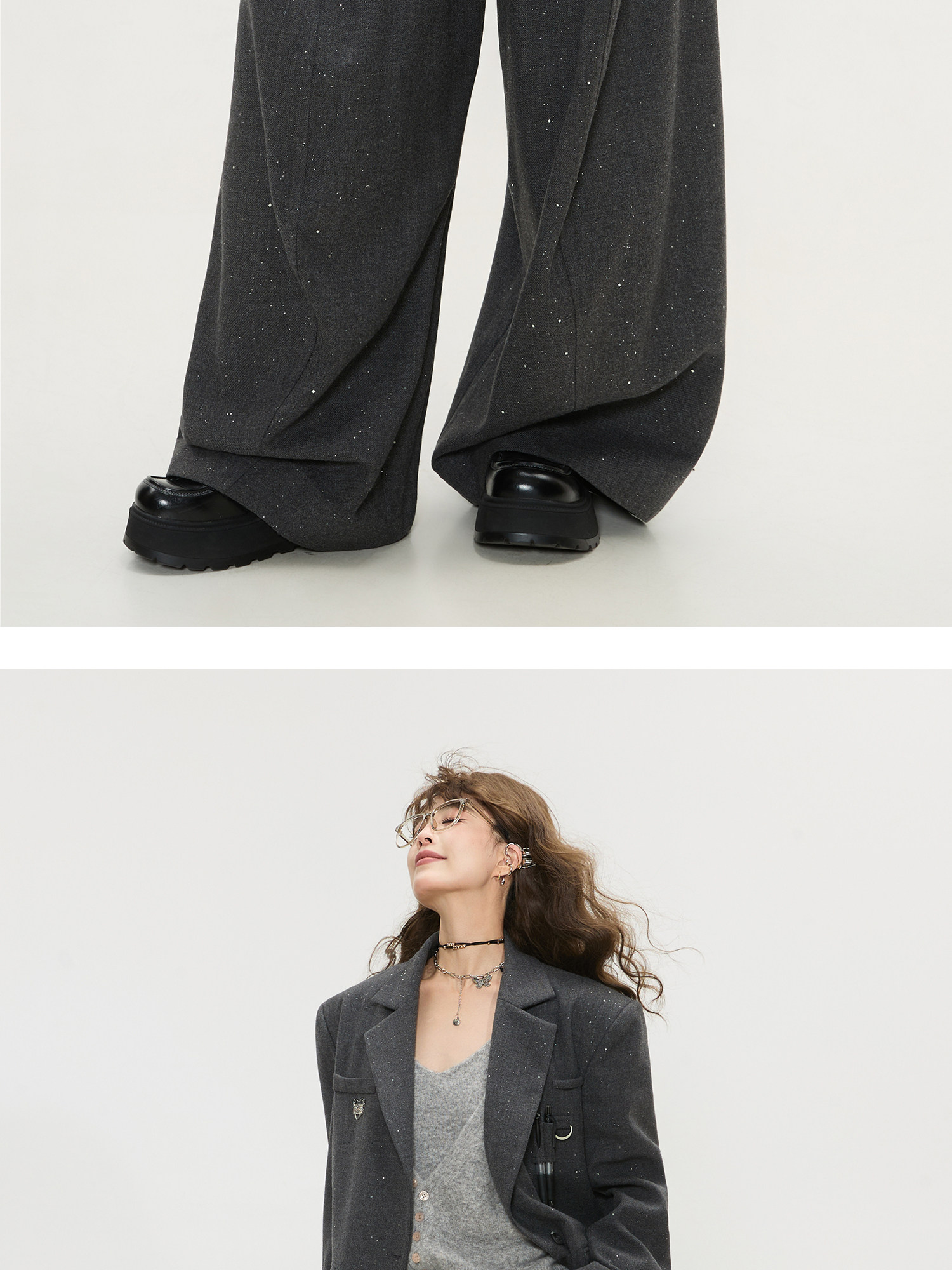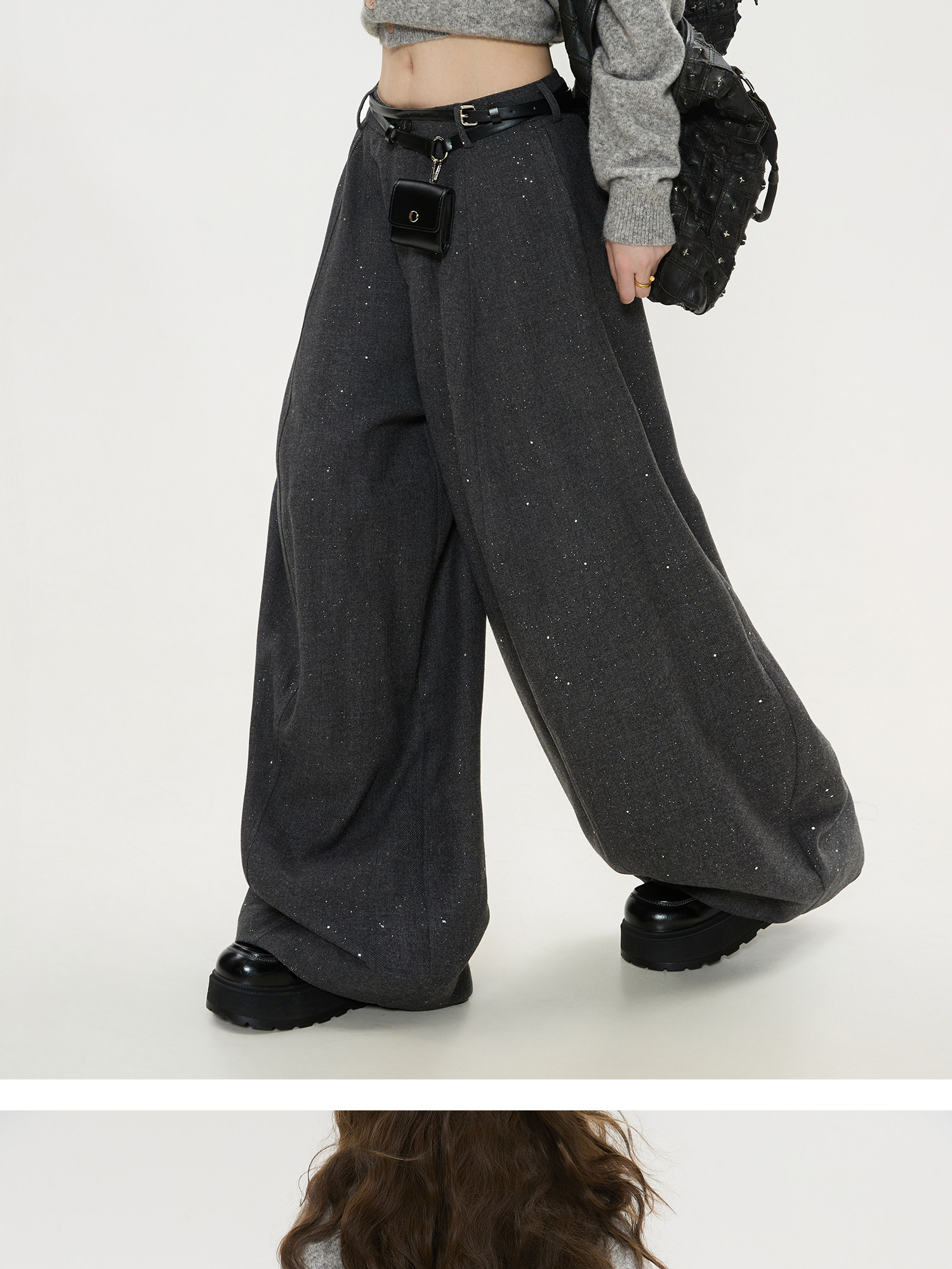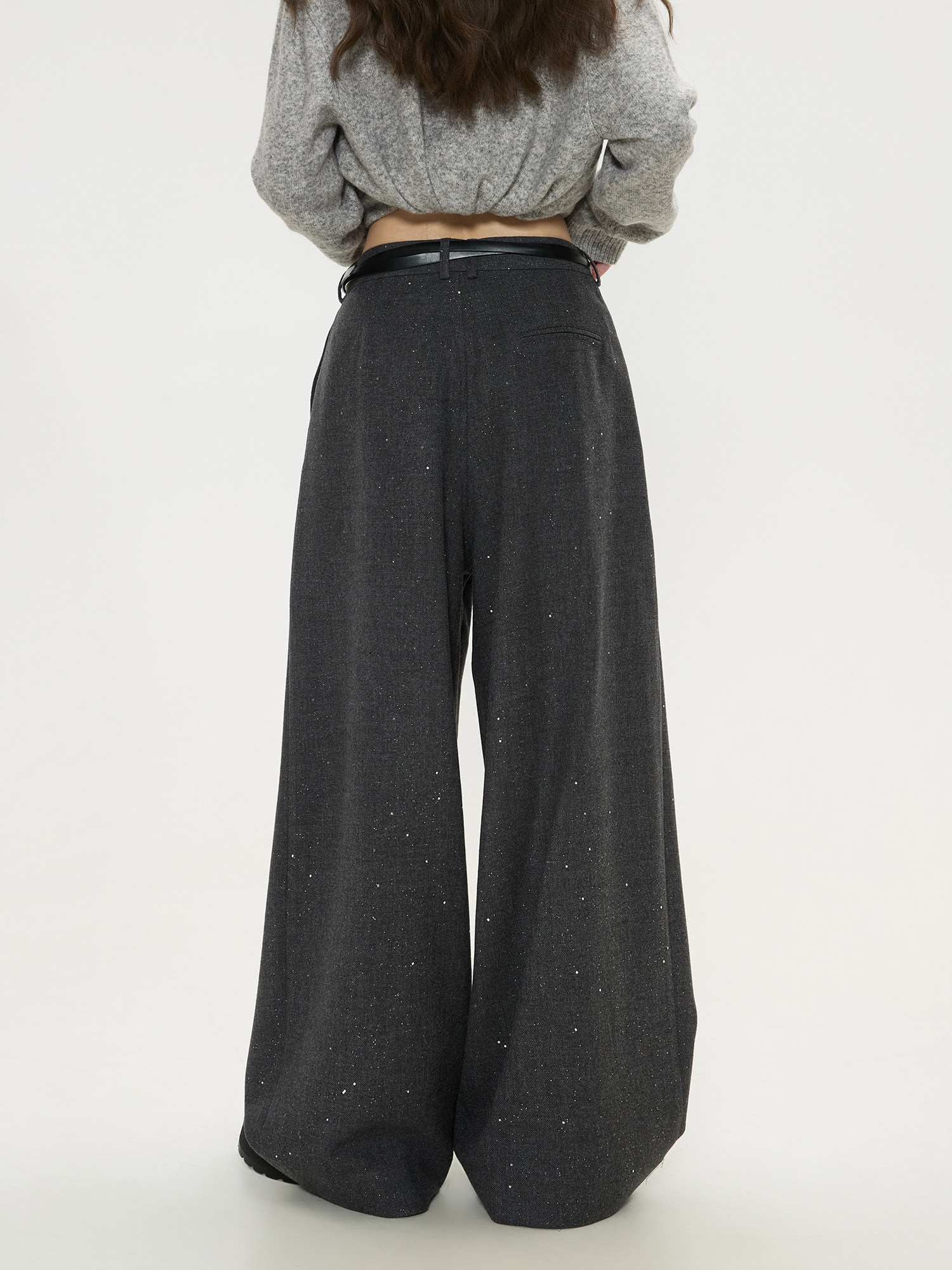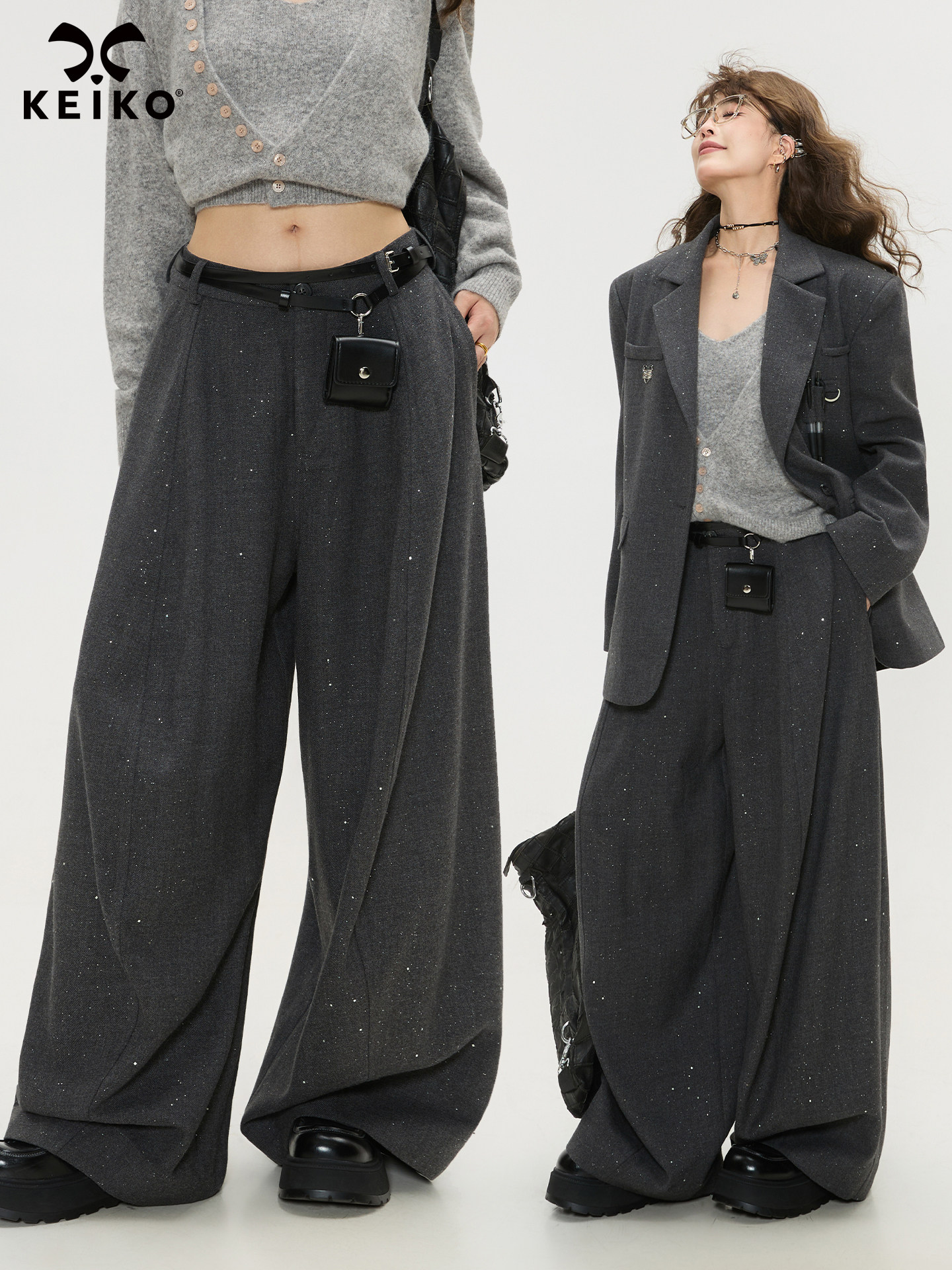 Keiko High-End Dark Gray High-Waisted Wide-Leg Suit Pants for Women, Spring 26, Cleanfit Loose Yamamoto Pants