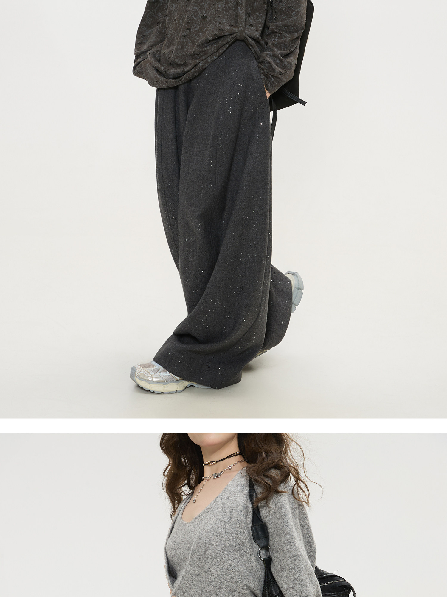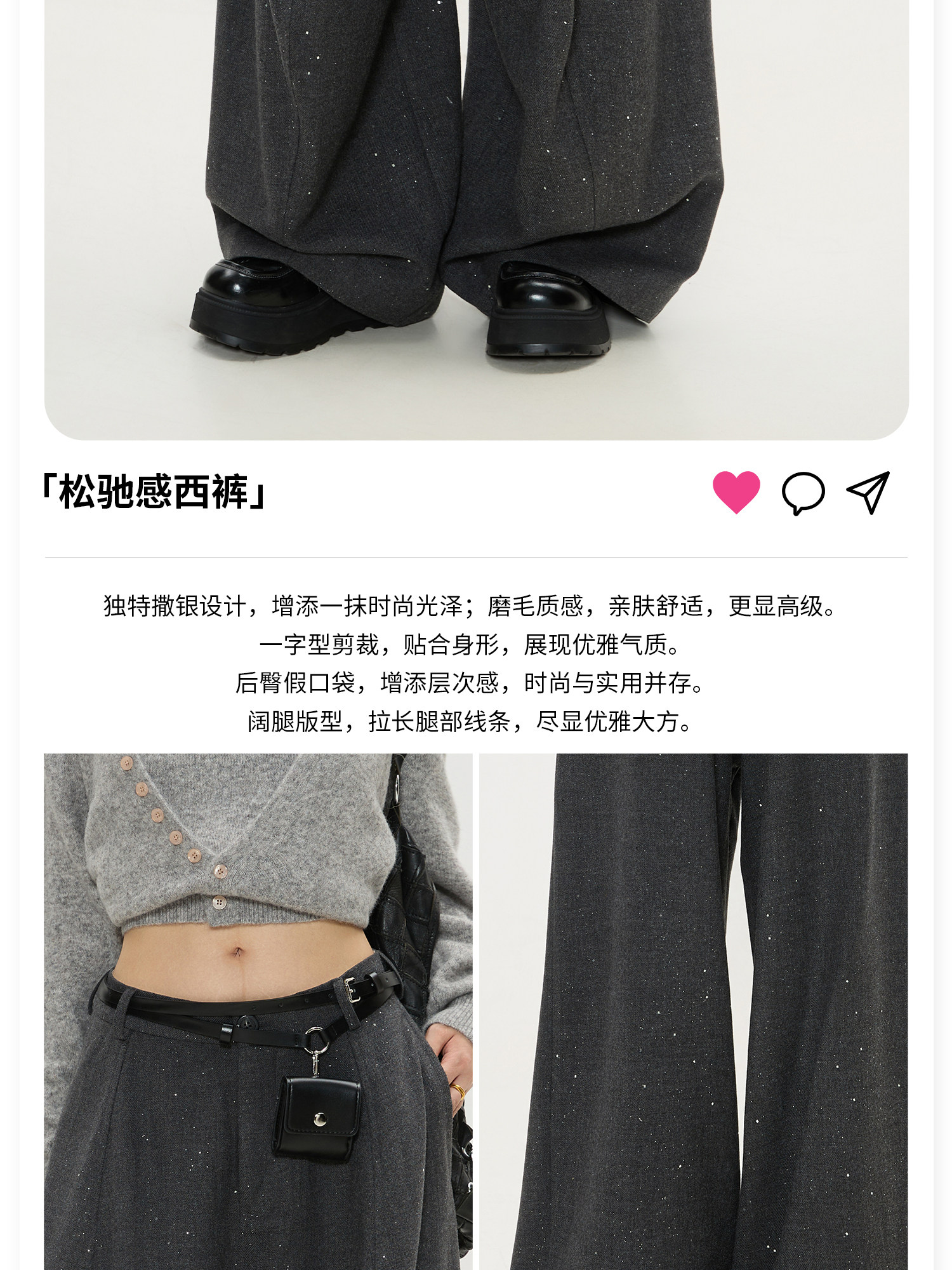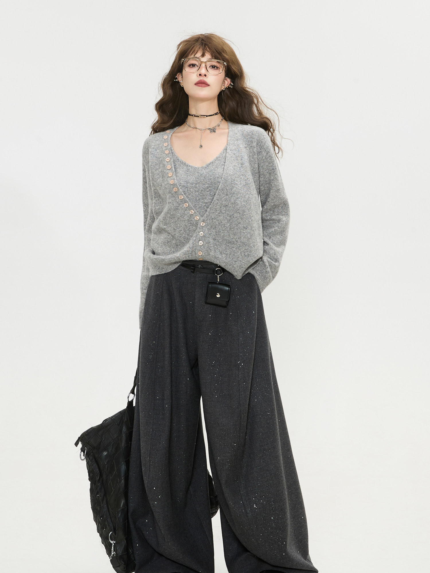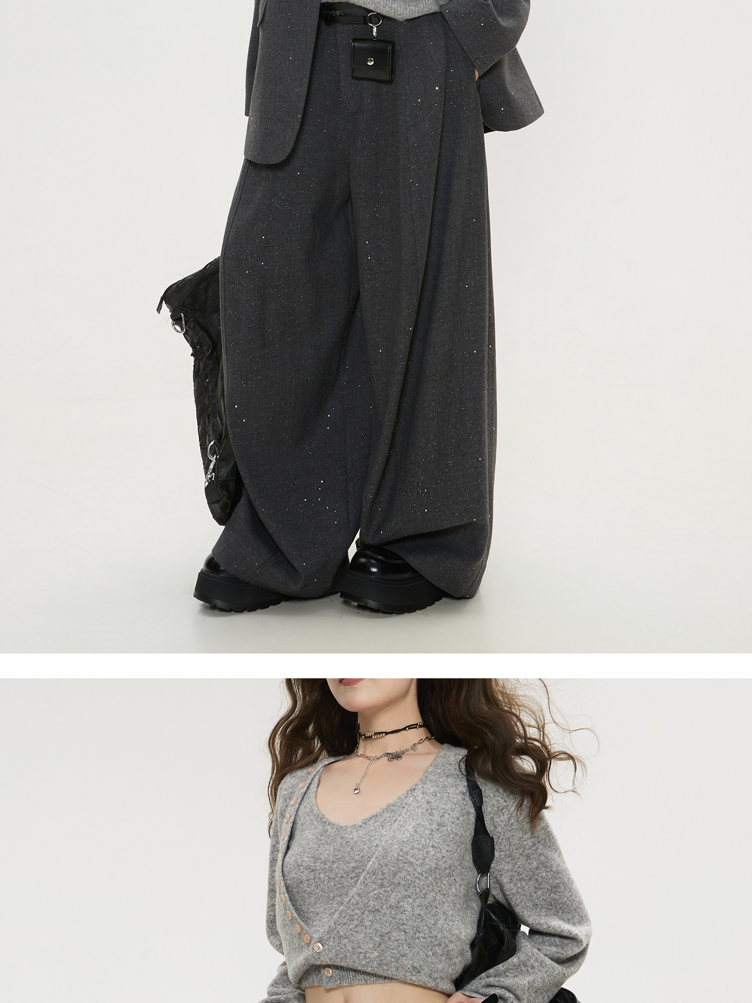 Keiko High-End Dark Gray High-Waisted Wide-Leg Suit Pants for Women, Spring 26, Cleanfit Loose Yamamoto Pants