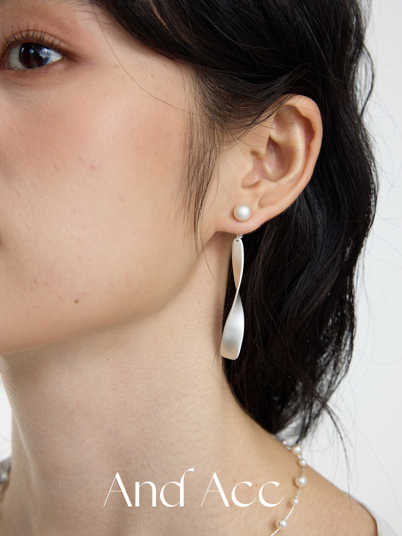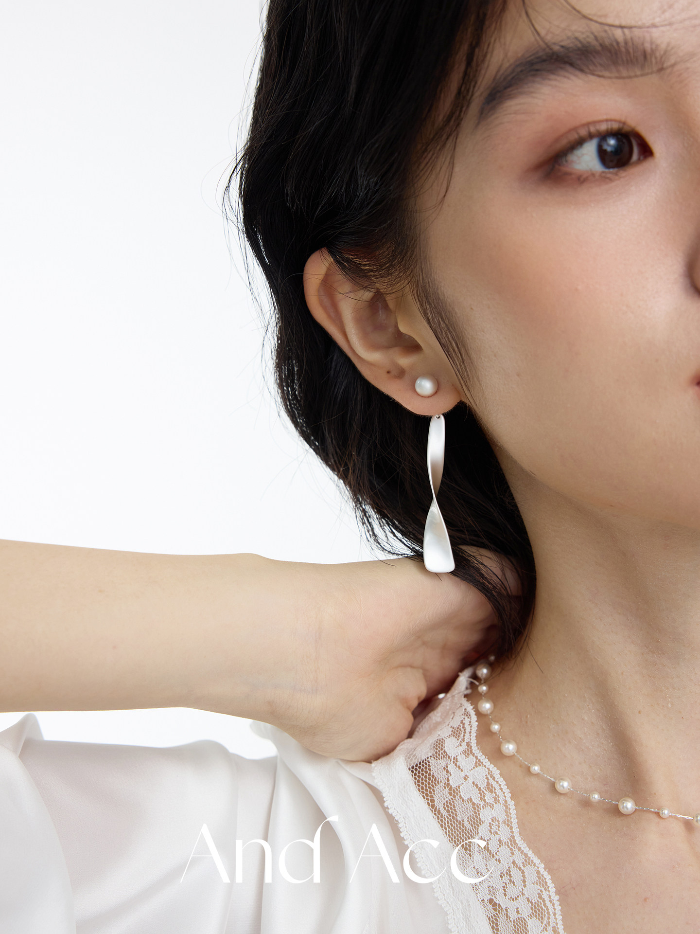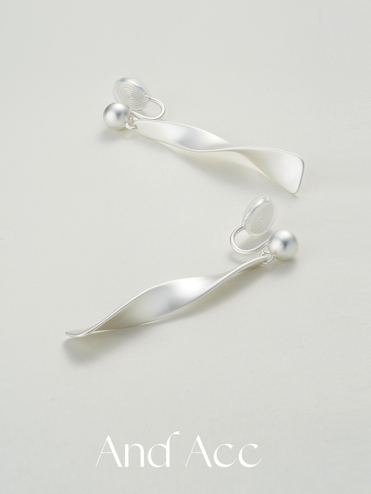 And Acc Satin Cold Silver Ribbon Long Earrings with a Cool and Ethereal Twist, ins Style Ear Studs and Ear Clips for Women