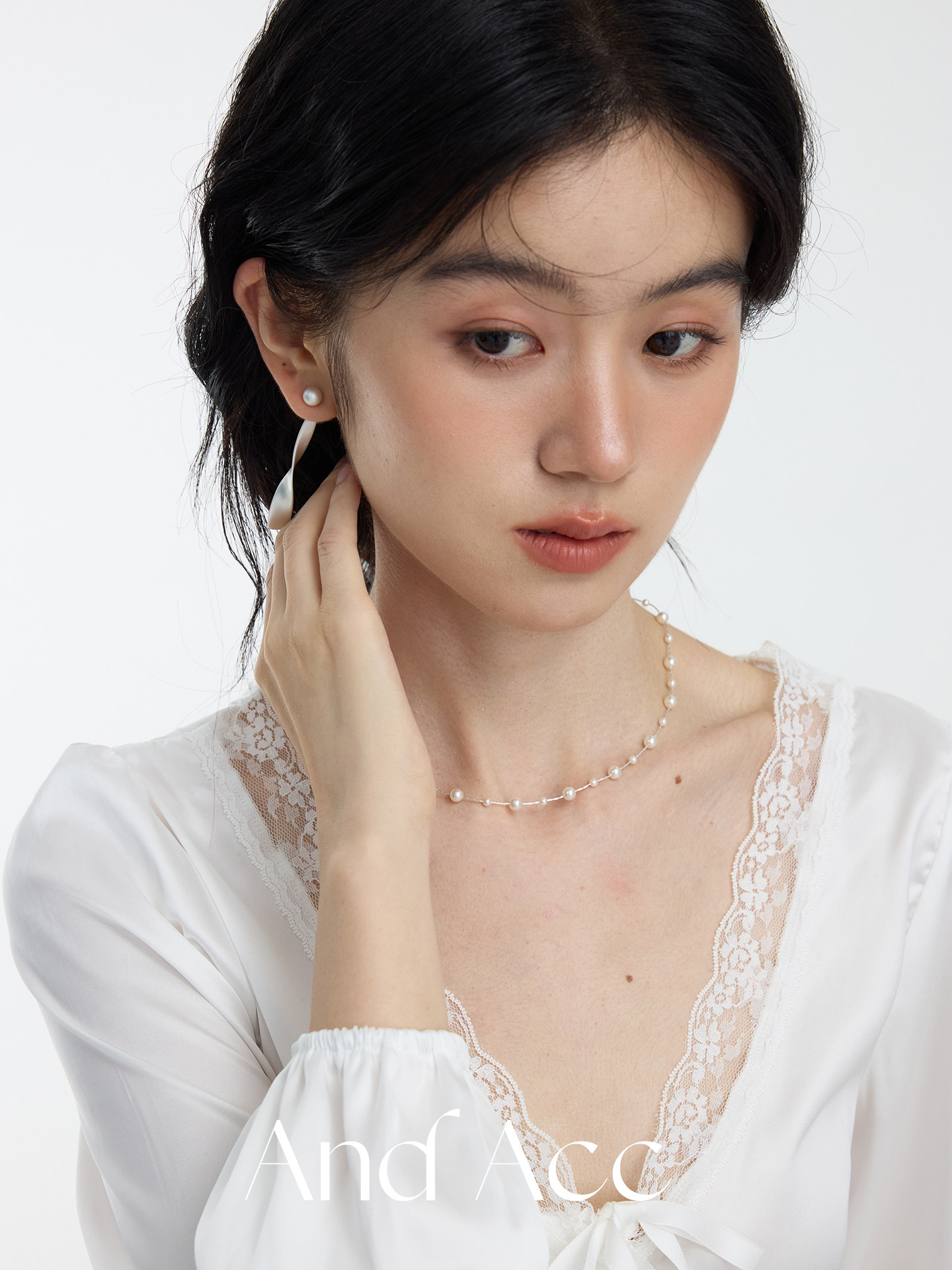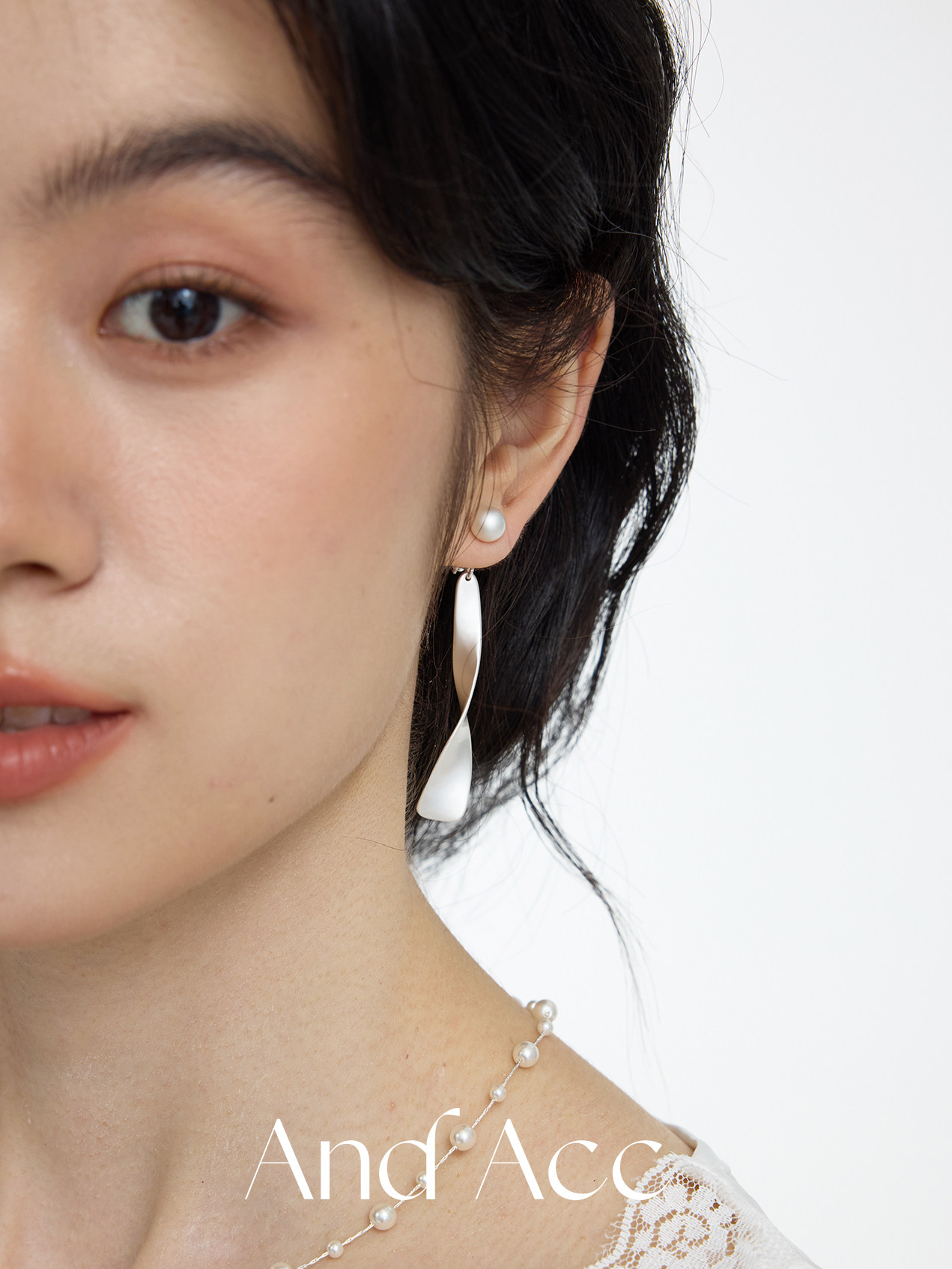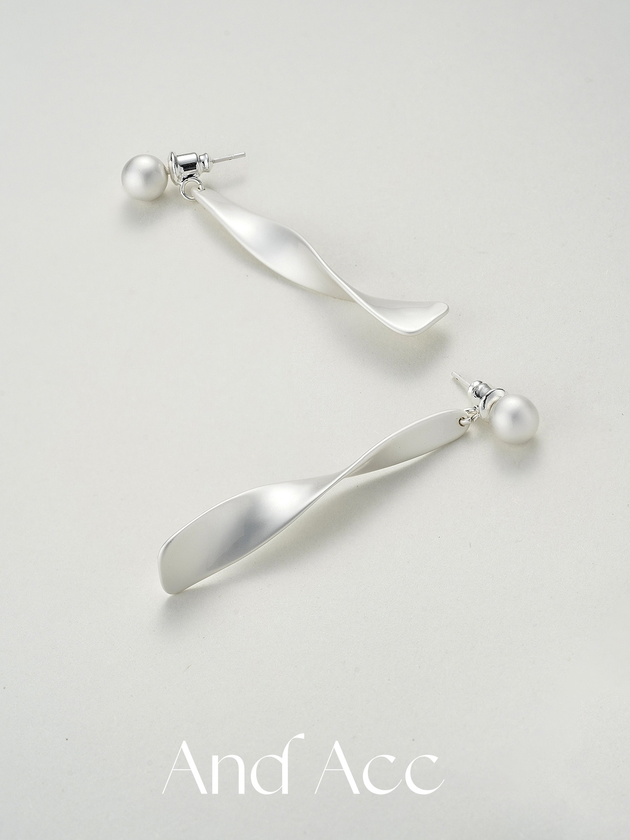 And Acc Satin Cold Silver Ribbon Long Earrings with a Cool and Ethereal Twist, ins Style Ear Studs and Ear Clips for Women