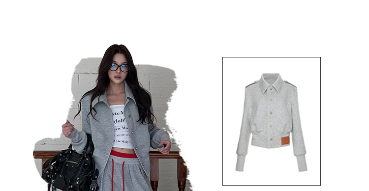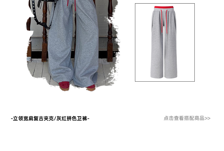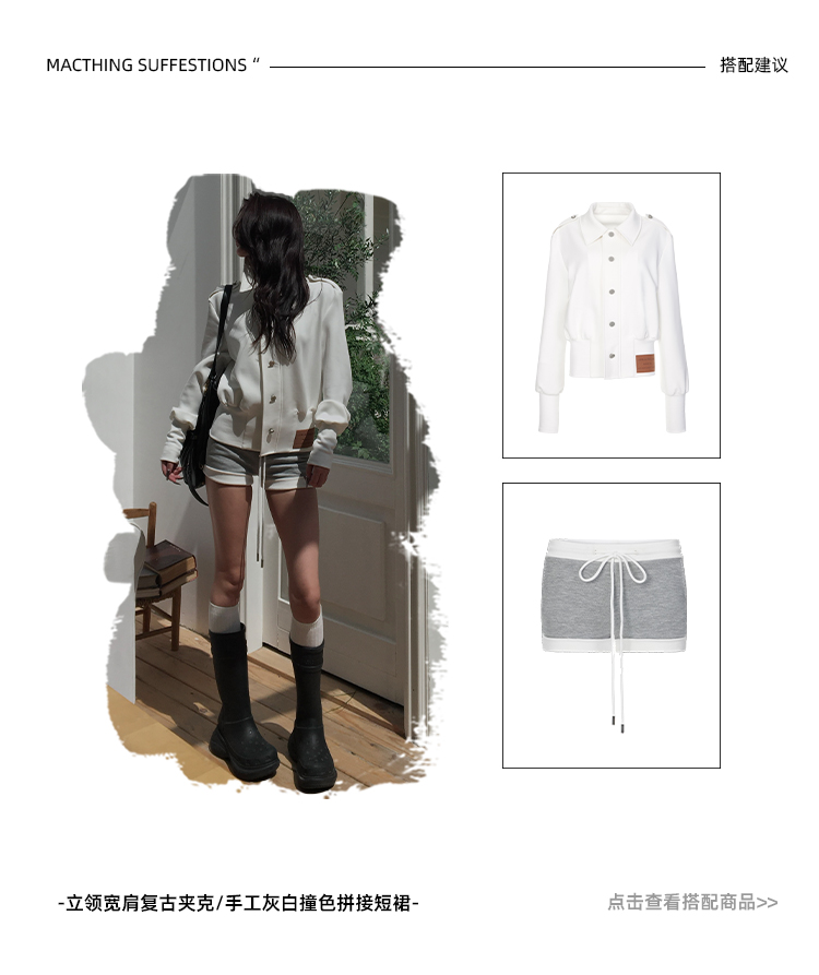 Hytemoly Wide-Shoulder Stand-Up Collar Ribbed Waist-Cinching Hem Vintage Loose Jacket Slimming Casual Versatile Coat Top
