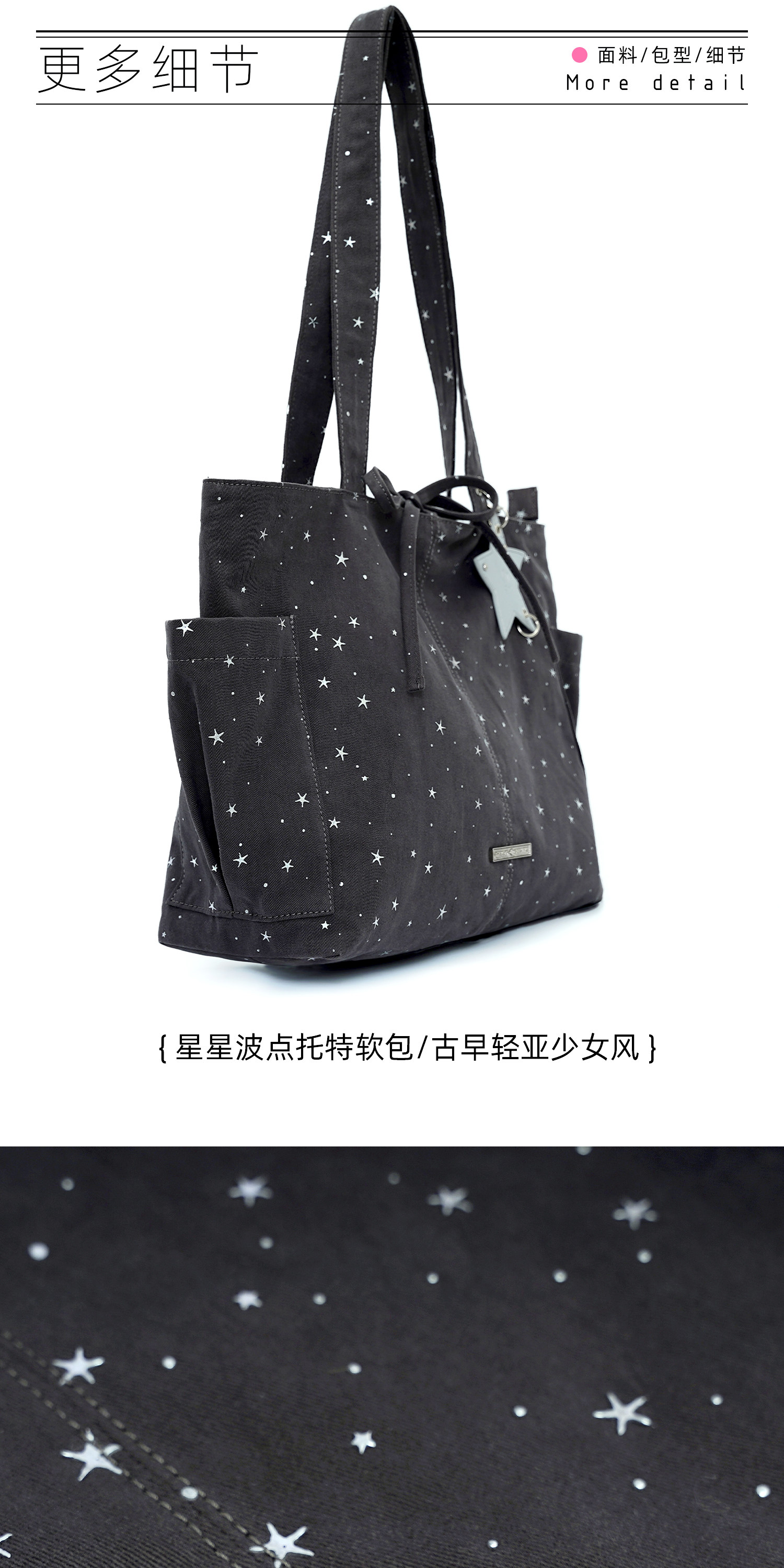 Girly Heart Ball Star Polka Dot Canvas Denim Tote Autumn Light Niche Design Single Shoulder Tote Large Capacity Bag