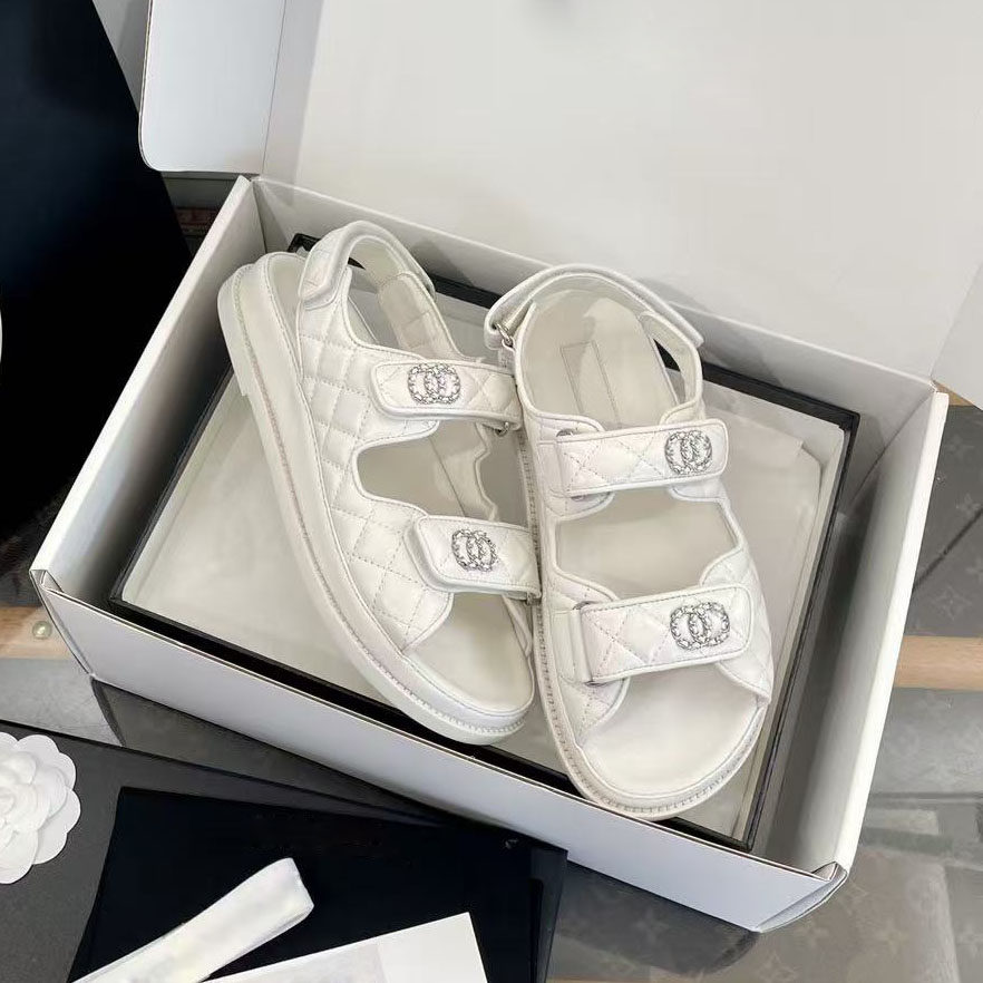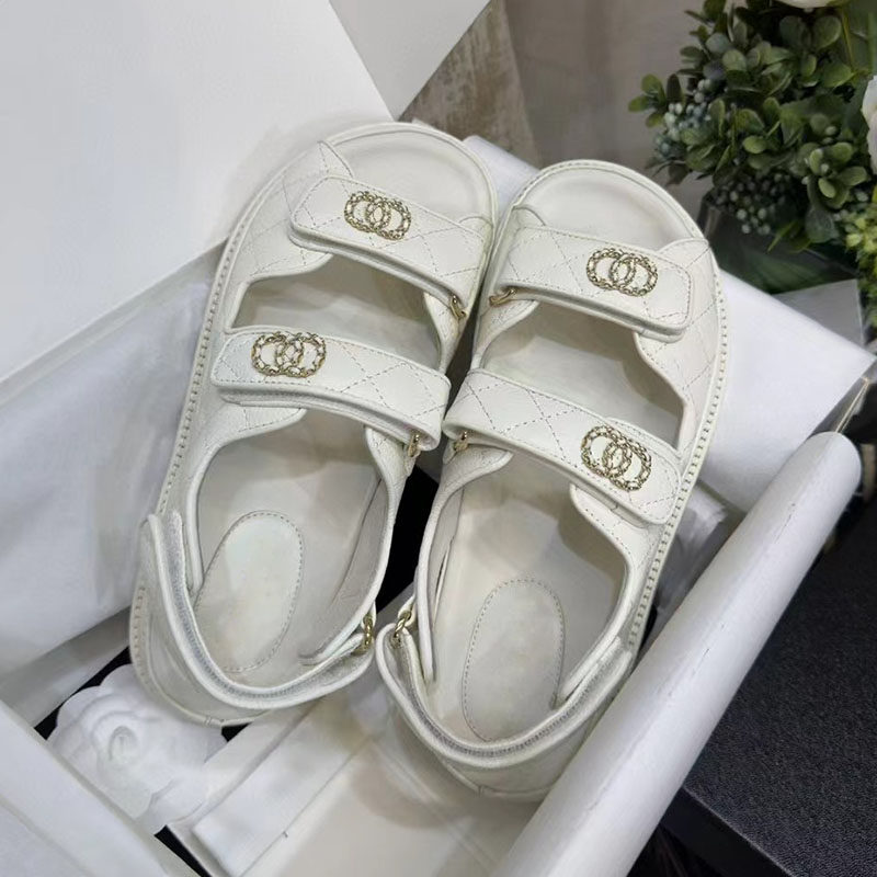 Chanel-Style Velcro Beach Sandals for Women, Size 26, New Summer Genuine Leather Flat Roman Shoes, Thick-Soled Casual Shoes for Outdoor Wear