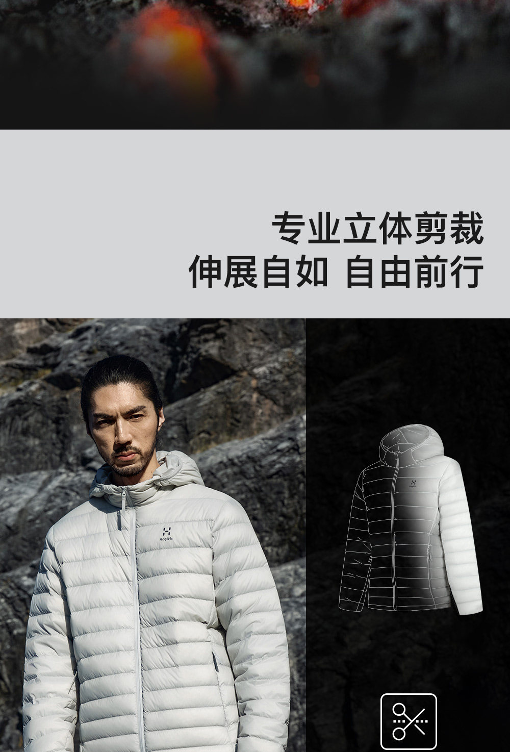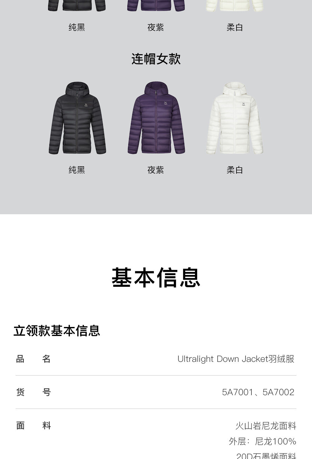 Haglöfs Matchstick Ultralight down 700 Fill Power Stand Collar Hooded Water-Repellent Goose down Ribbed down Jacket