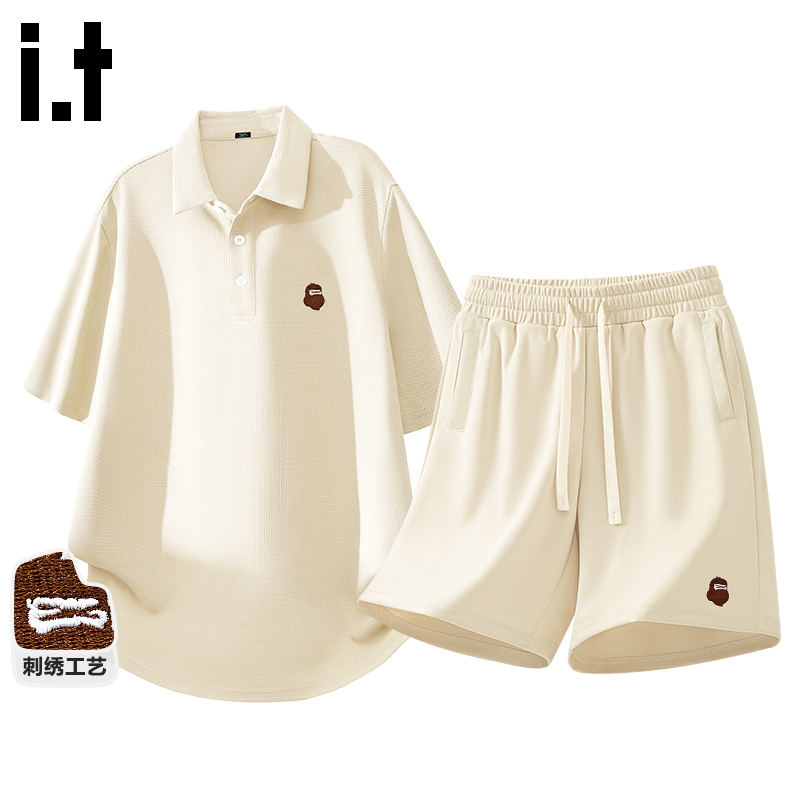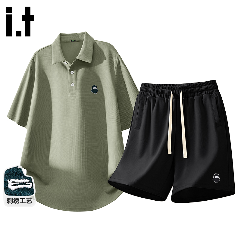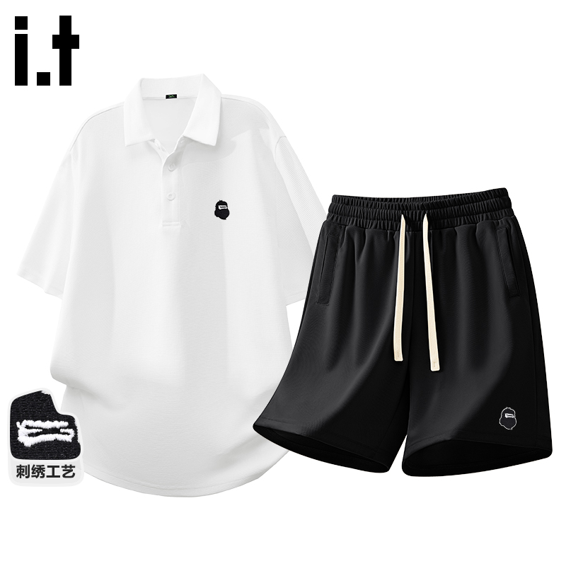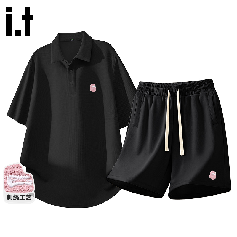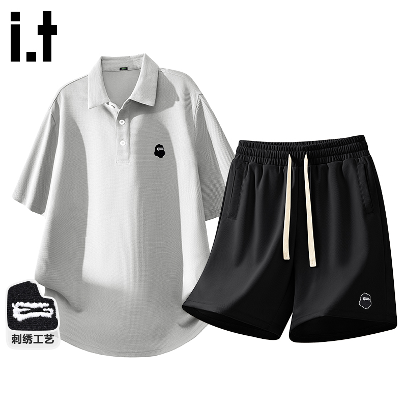 It Fingercroxx Solid Color Embroidered Suit Men's Summer Short-Sleeved Polo Shirt American Trendy Sports Shorts Y