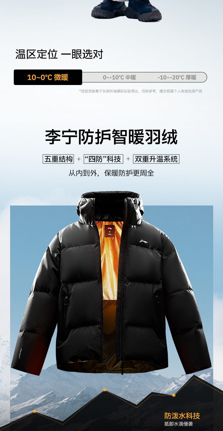Li-Ning Hot Pot down Jacket | Men's New Winter Warm Clothing Hooded Short Top Duck down Sports Jacket