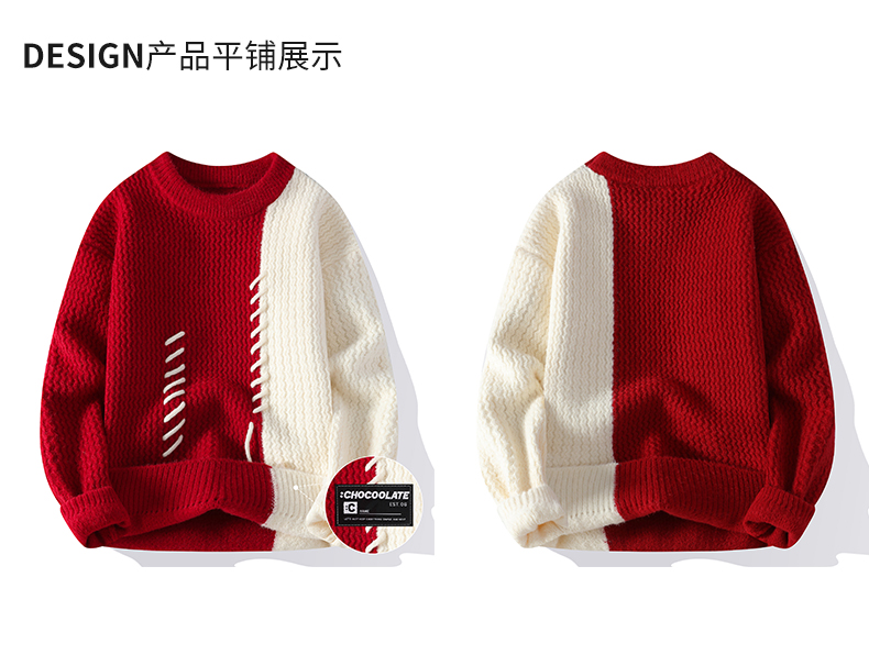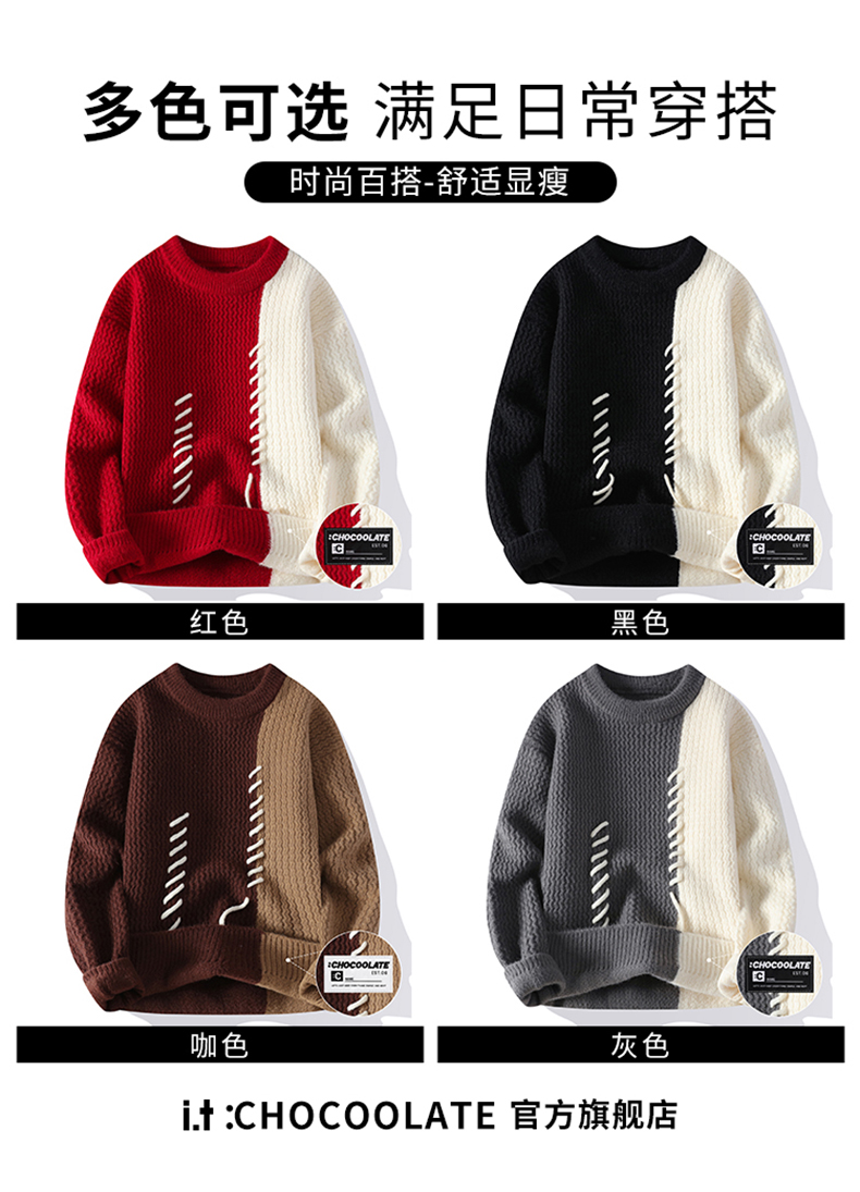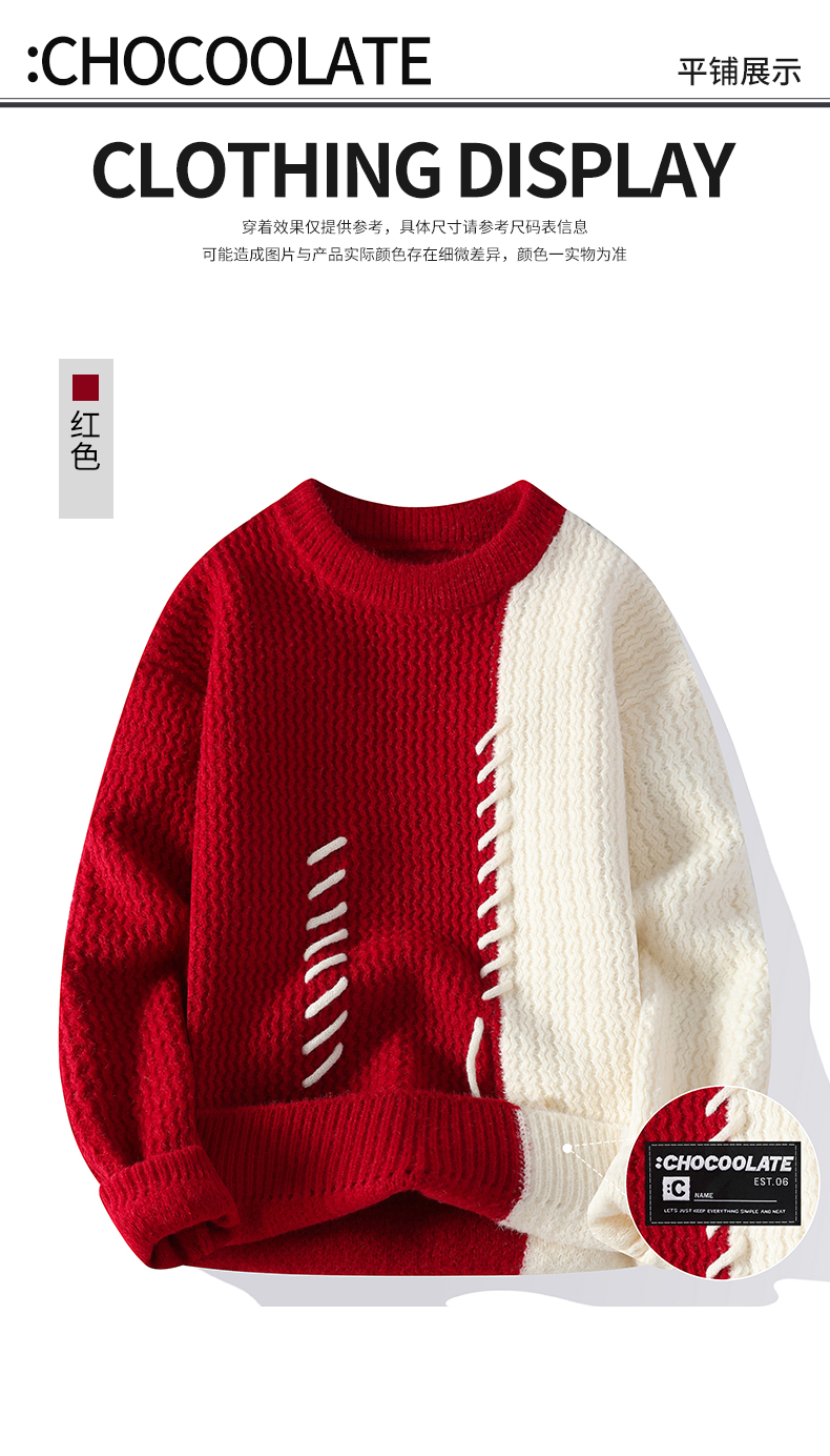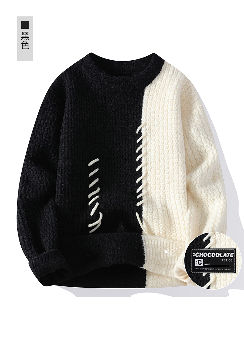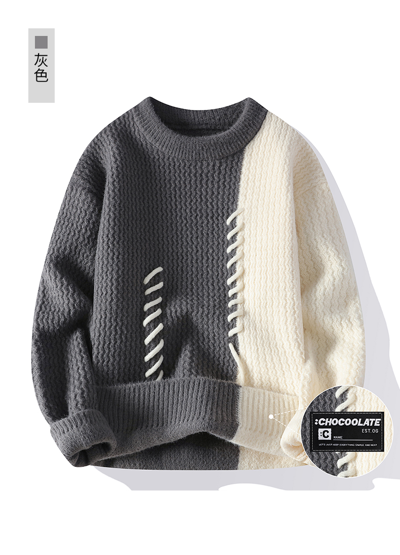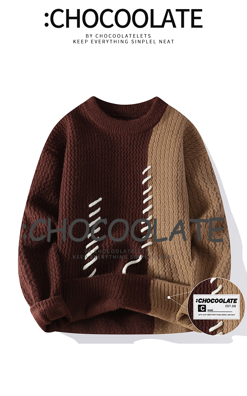 It: Chocoolate Trendy Patchwork Knit Sweater for Men, Autumn Design, Loose and Comfortable Couple Sweater Jacket