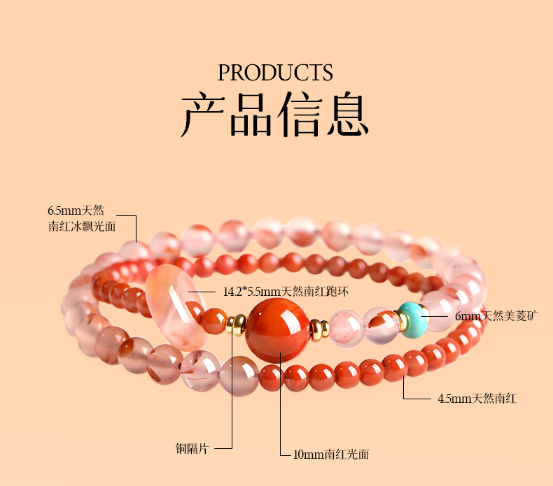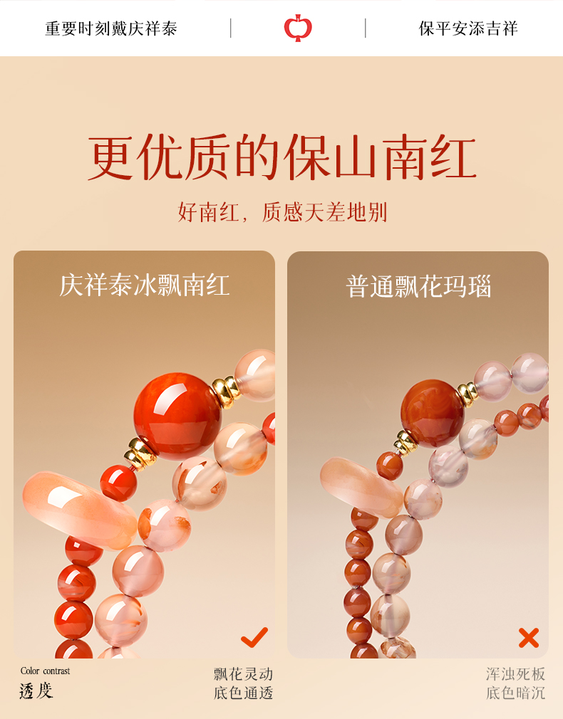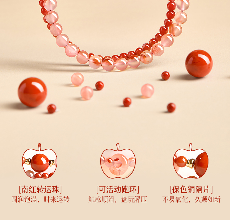 Qingxiangtai Baoshan Nanhong Bracelet Official Flagship Store Natural Ice Red Agate Bracelet Birthday Gift for Girlfriend
