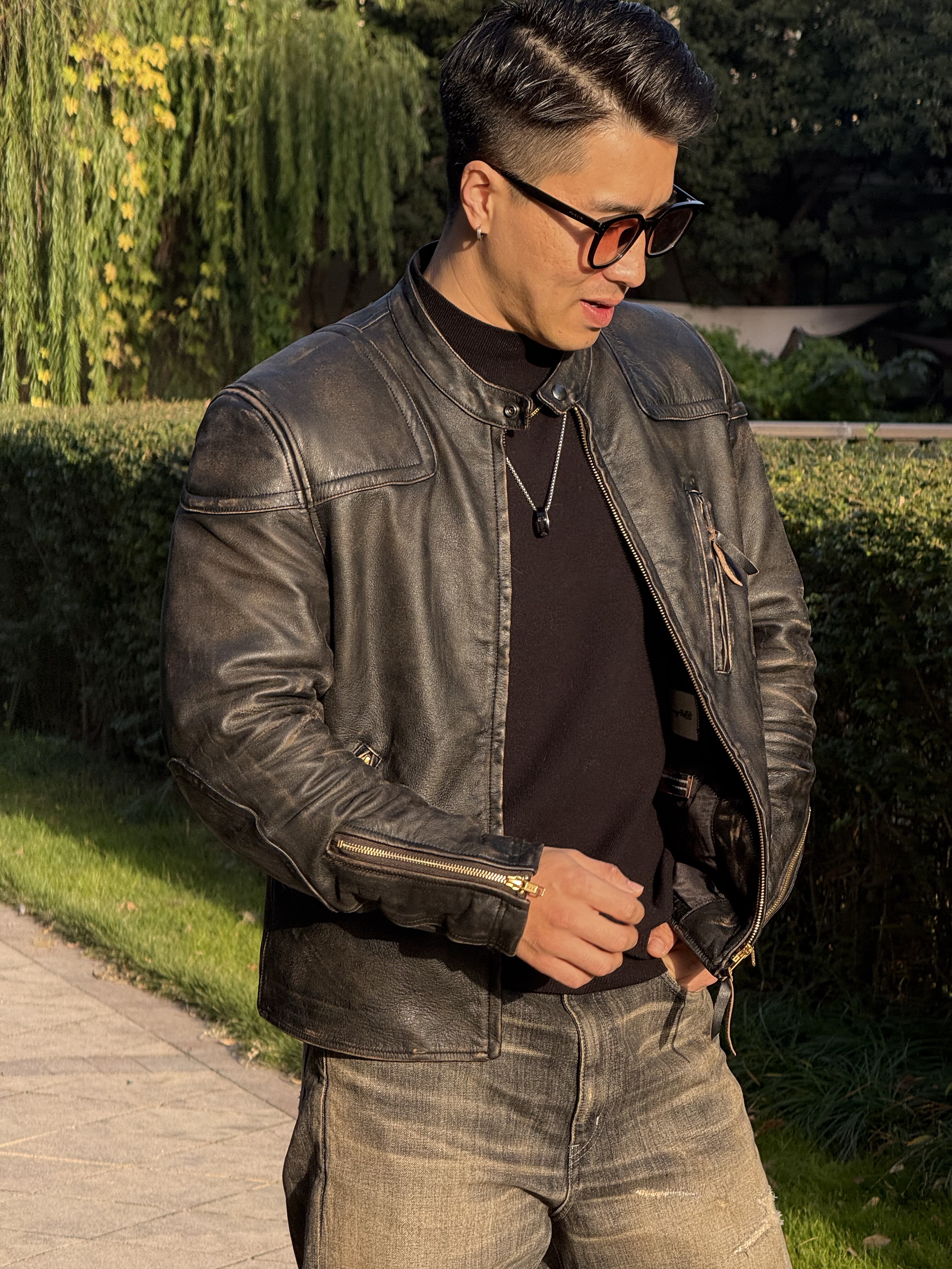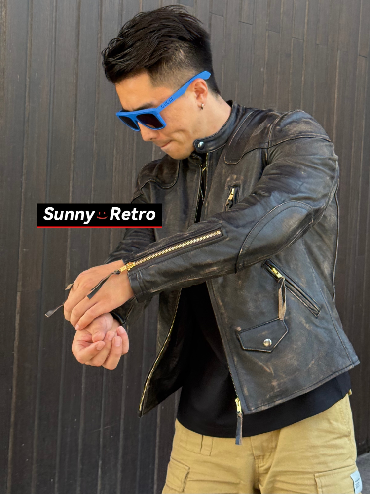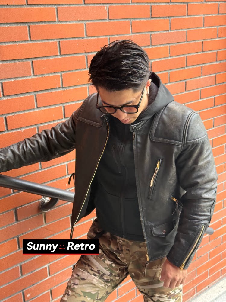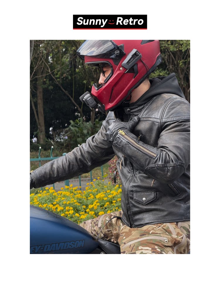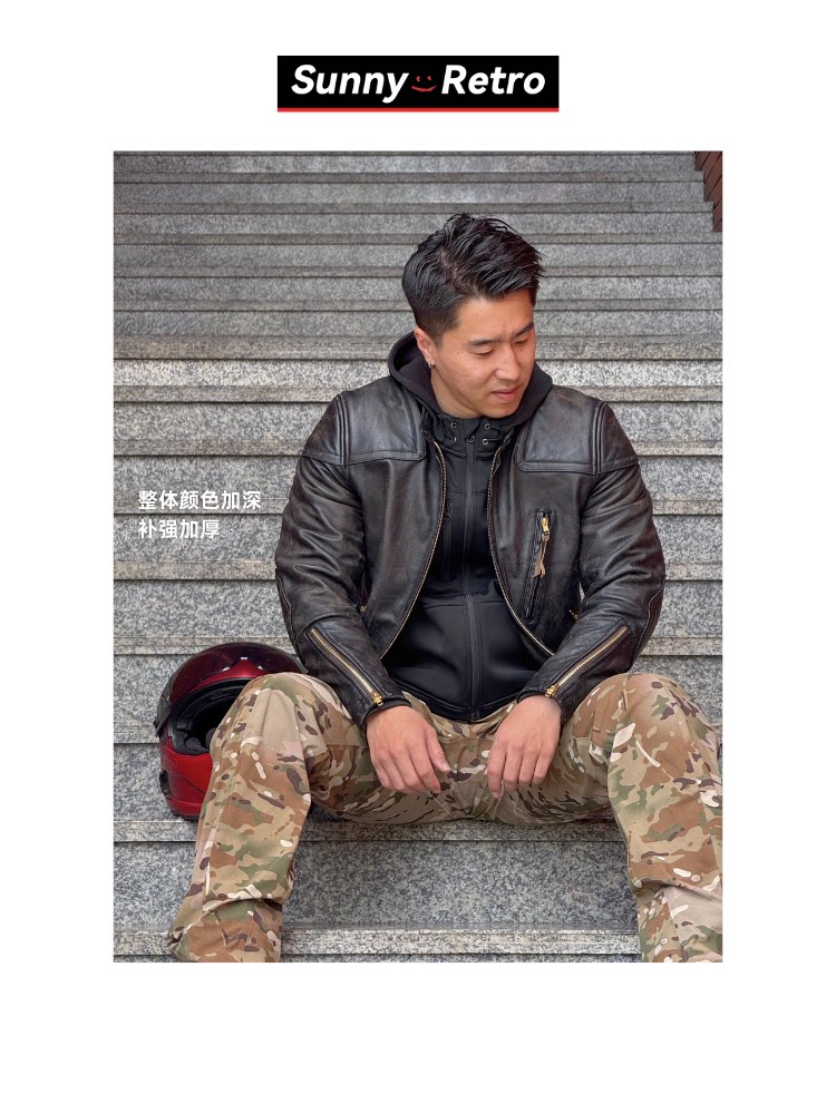 Sunnyretro【Venom】Rrl Venom Leather Jacket 3Rd Generation Reproduction Distressed Motorcycle Color-Washed Leather Jacket Trendy Men's Clothing