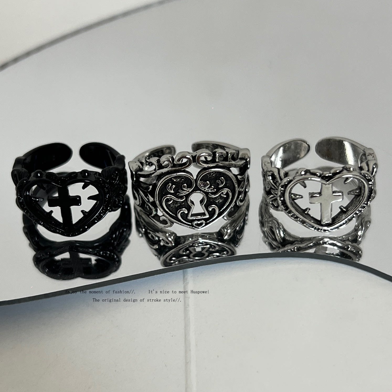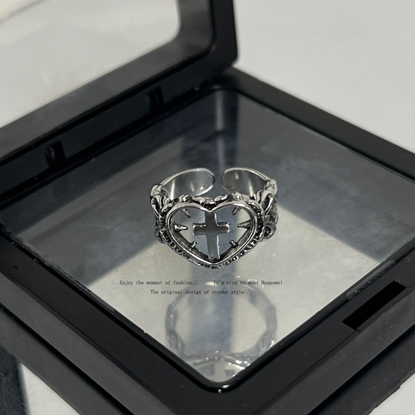 Original Little Devil Heart Cross Ring, Vintage Distressed Hollow Open Ring, Trendy Niche Ring for Men and Women
