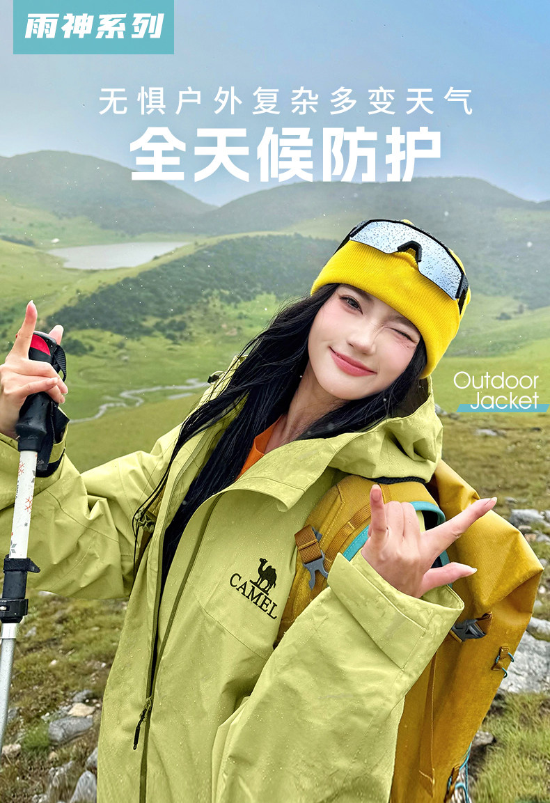 Camel Rain God Outdoor Jacket for Women 2026 Spring/Summer New Hardshell Single Layer Windproof Waterproof Mountaineering Jacket for Men