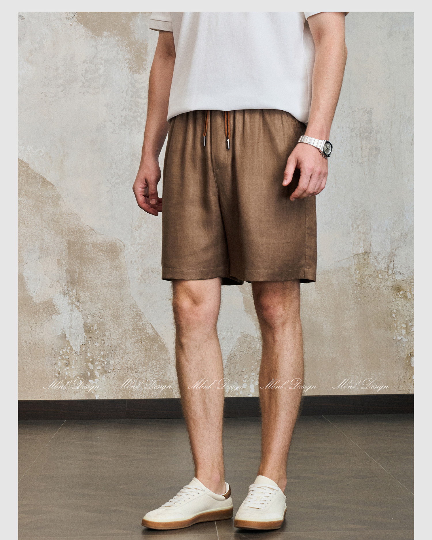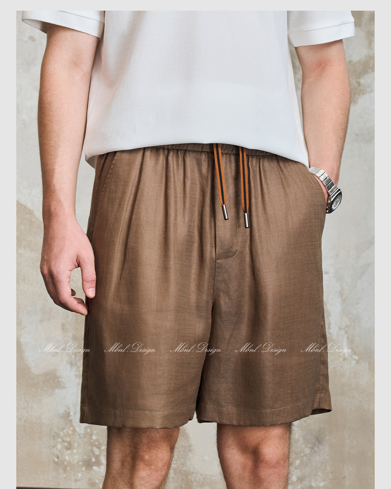 Mbnl-F'Rustic and Elegant' Qin Lei Men's Classic Ribbon Drawstring Washed Tencel Linen Shorts Ll-Skz2048