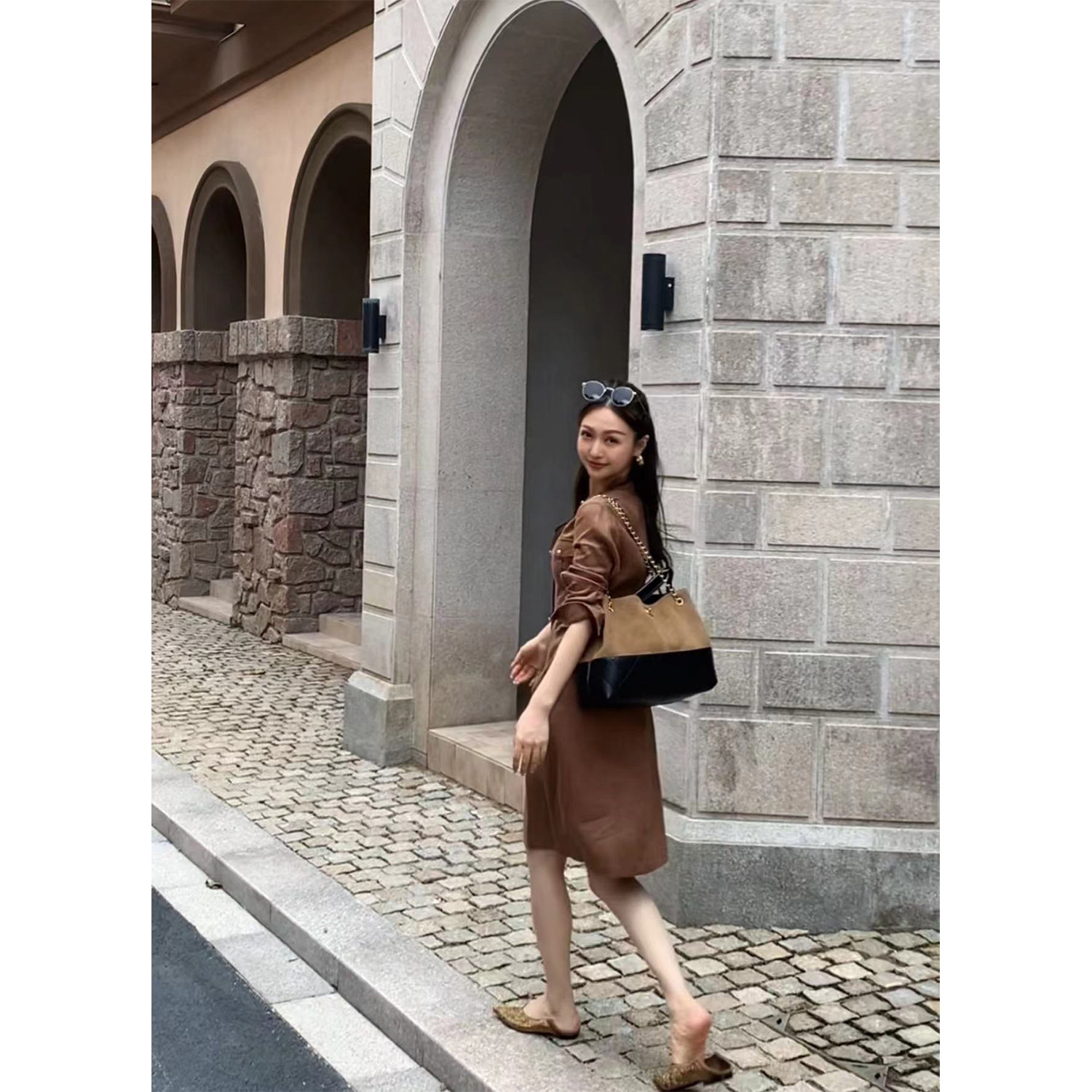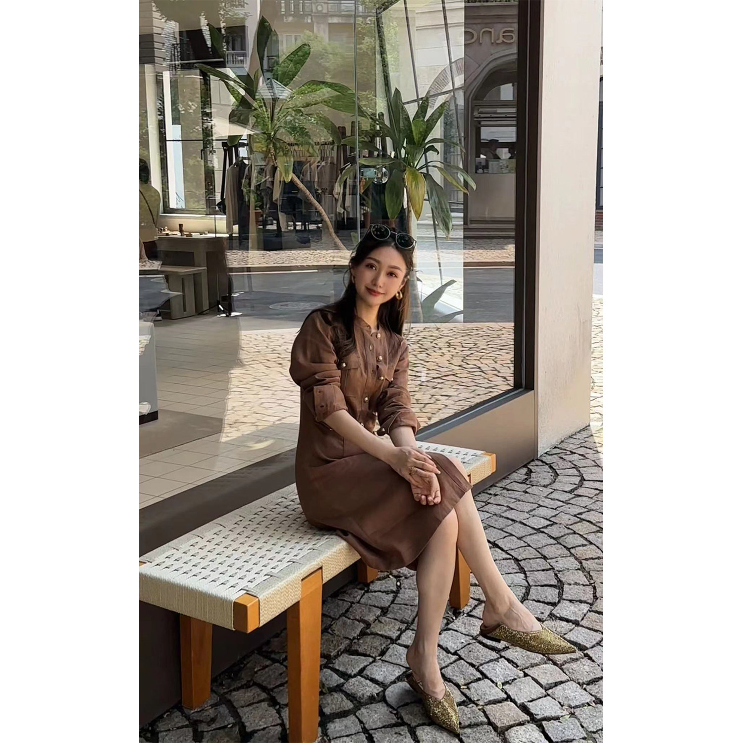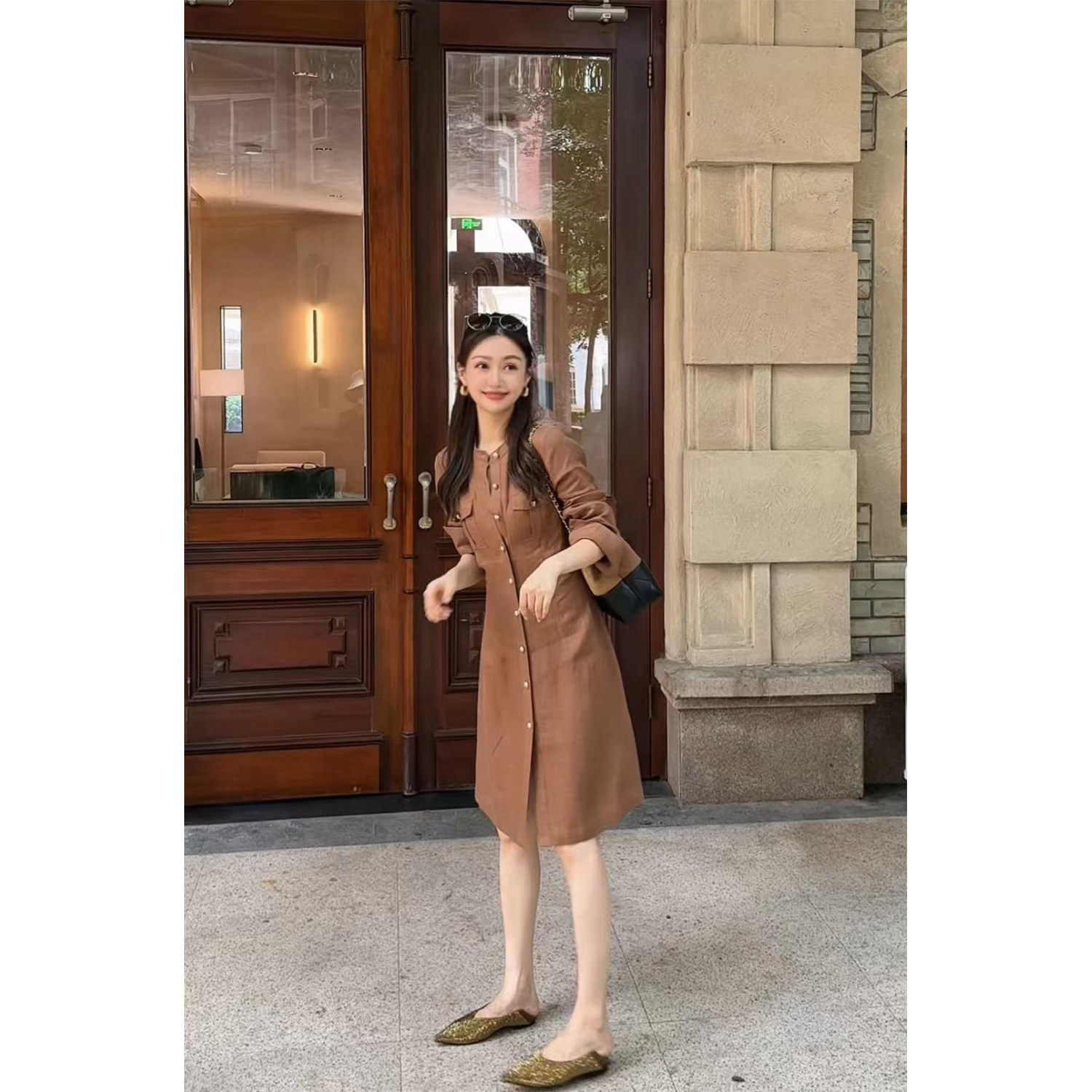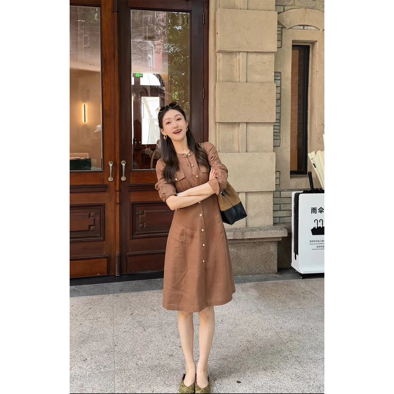 Wang Haha【Shallow Bay】25 Autumn New Commuting Style 100% Linen High-End Slimming Trench Coat Dress