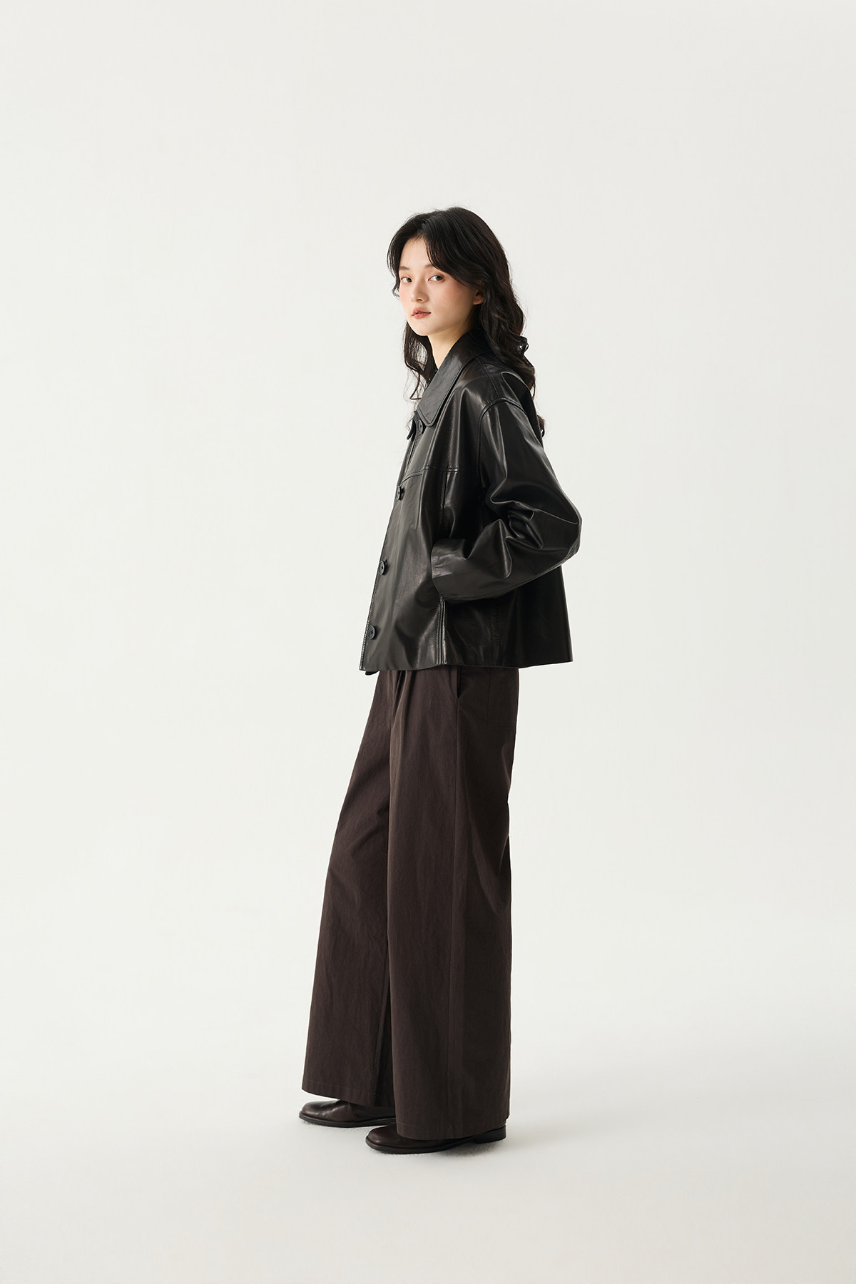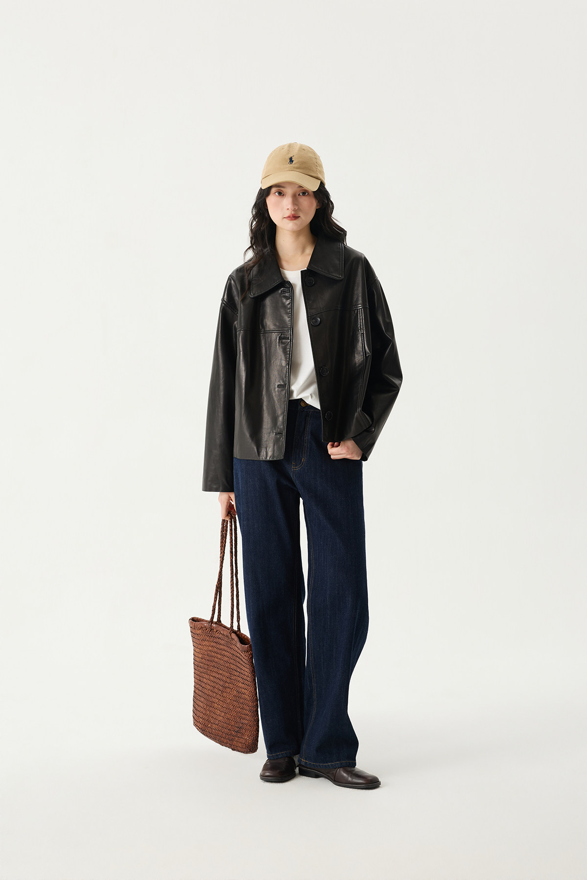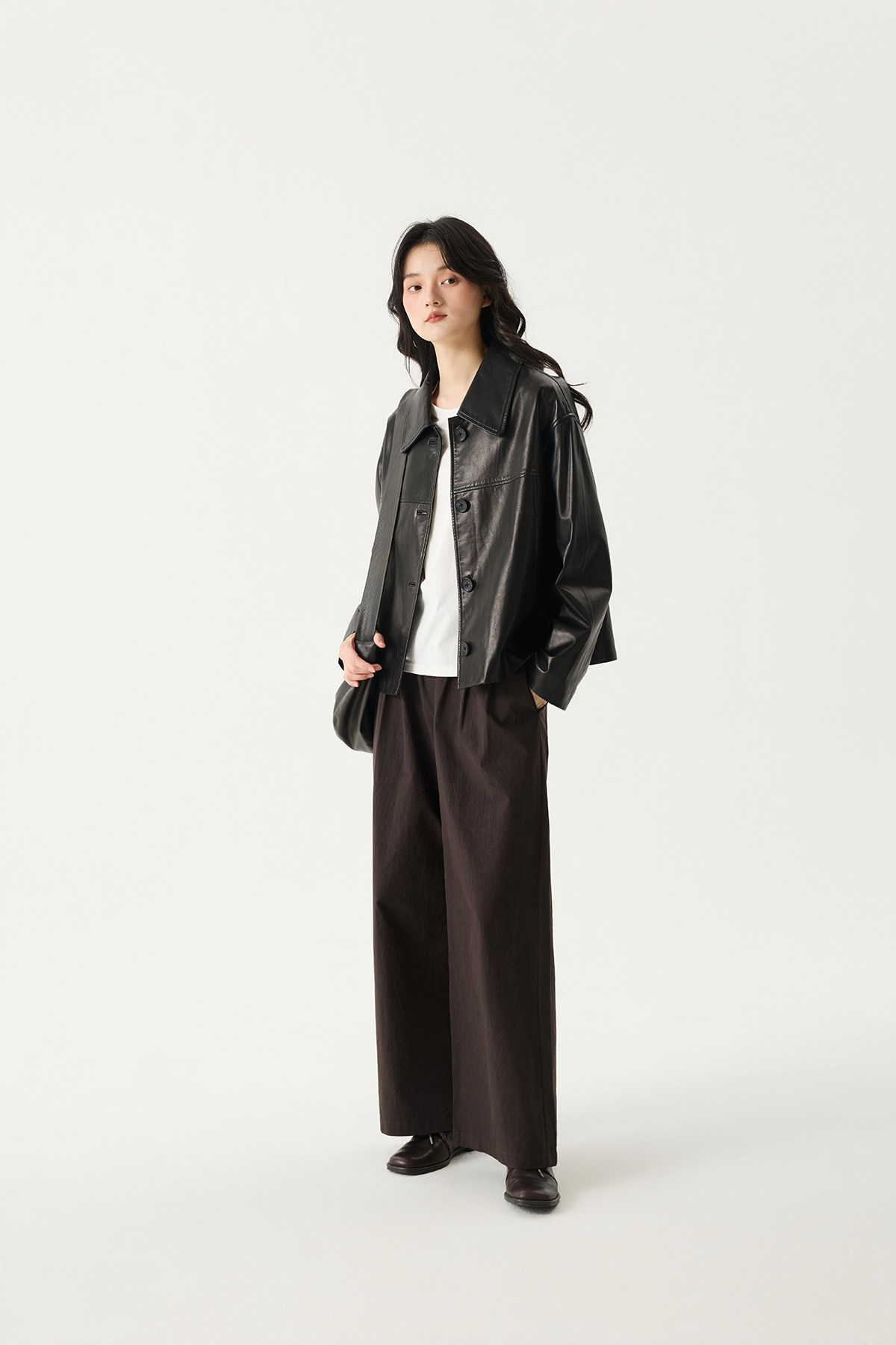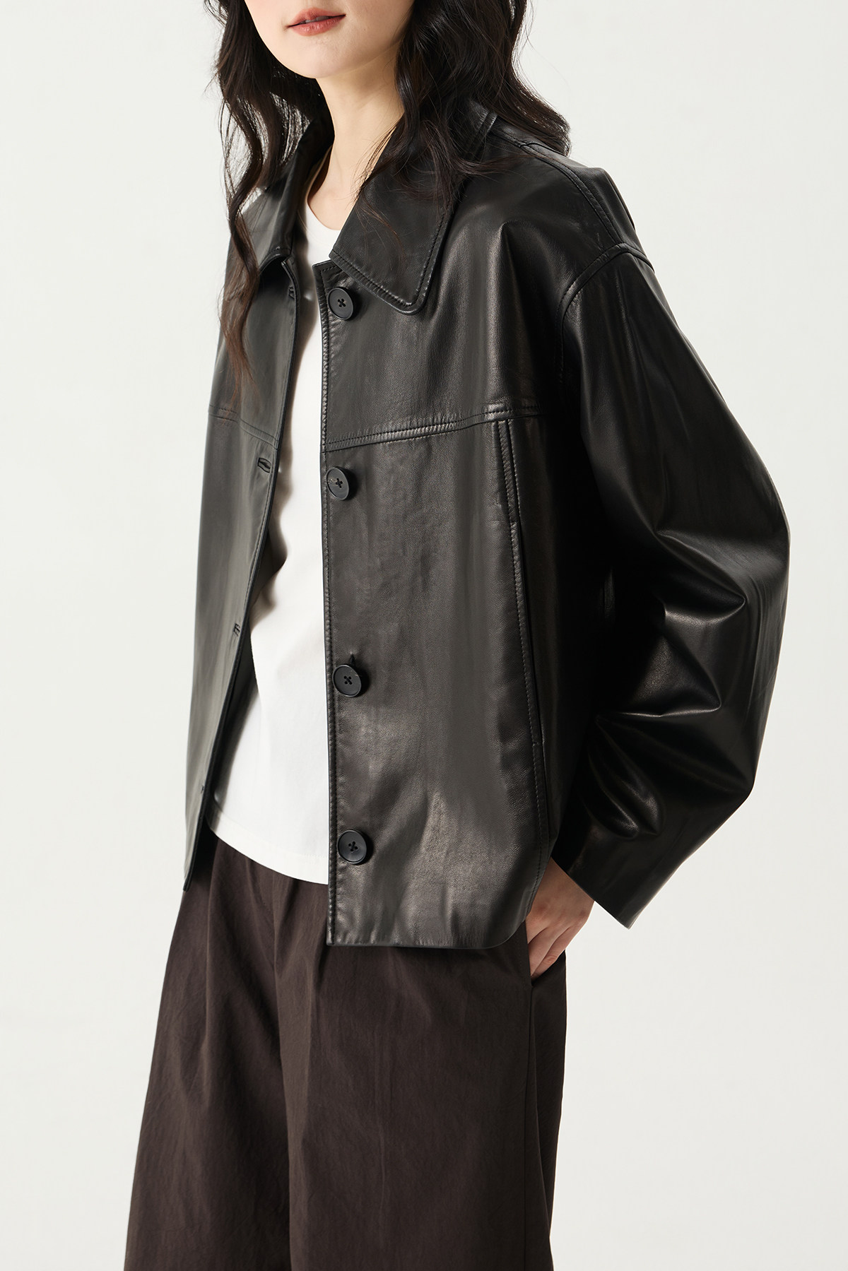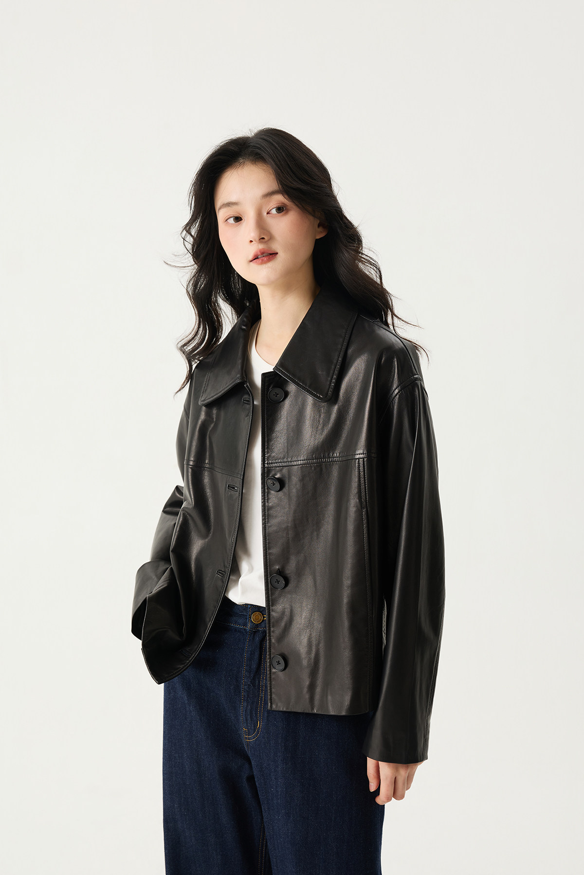 Prefree Floating Journal/ Classic High-Quality Short Genuine Leather Jacket with a Turn-Down Collar Made of High-Quality Goatskin Leather