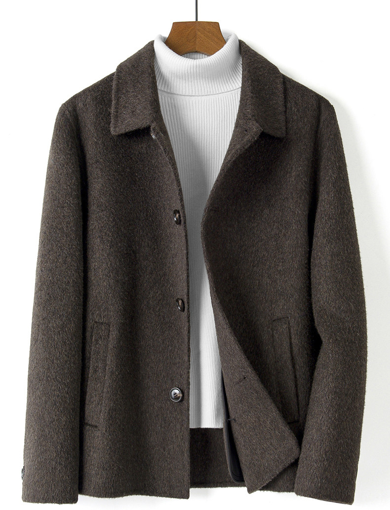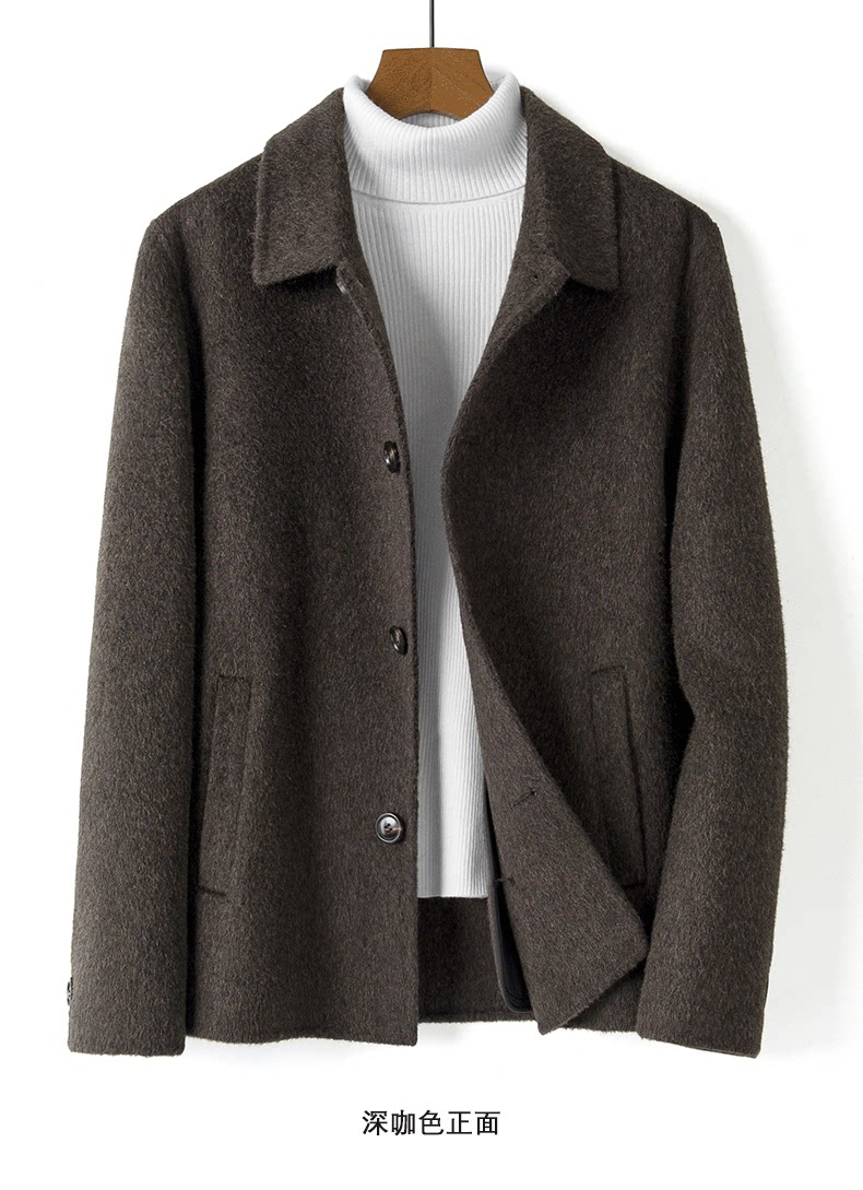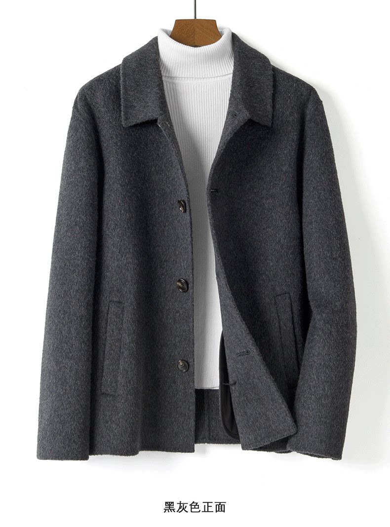 Men's 100% Wool Double-Sided Woolen Coat, Short Style with Lapel, Thickened Jacket for Autumn and Winter 2025, No Cashmere Woolen Outerwear, Trendy