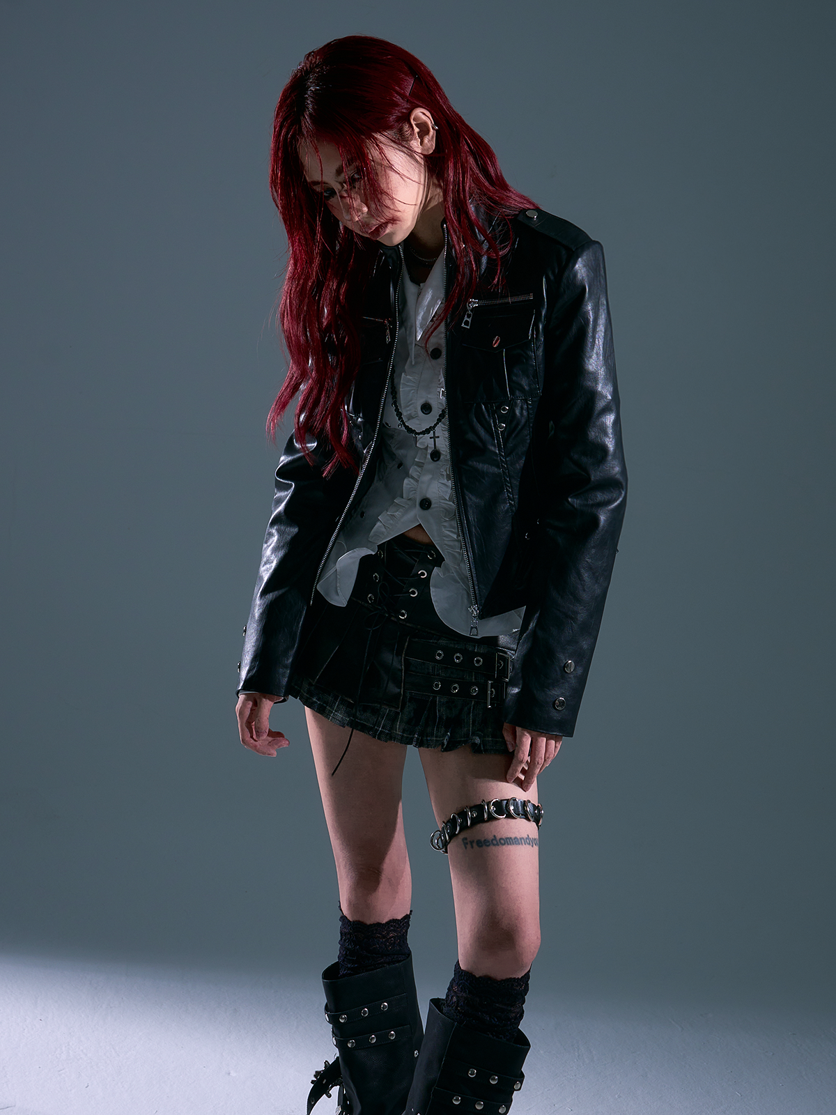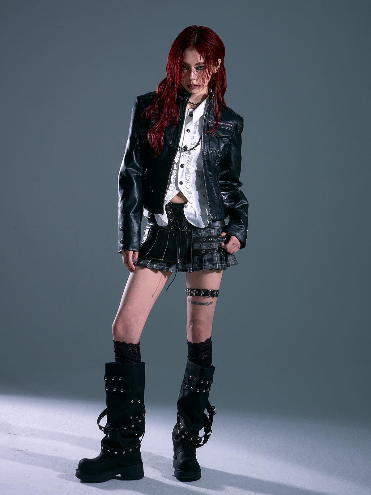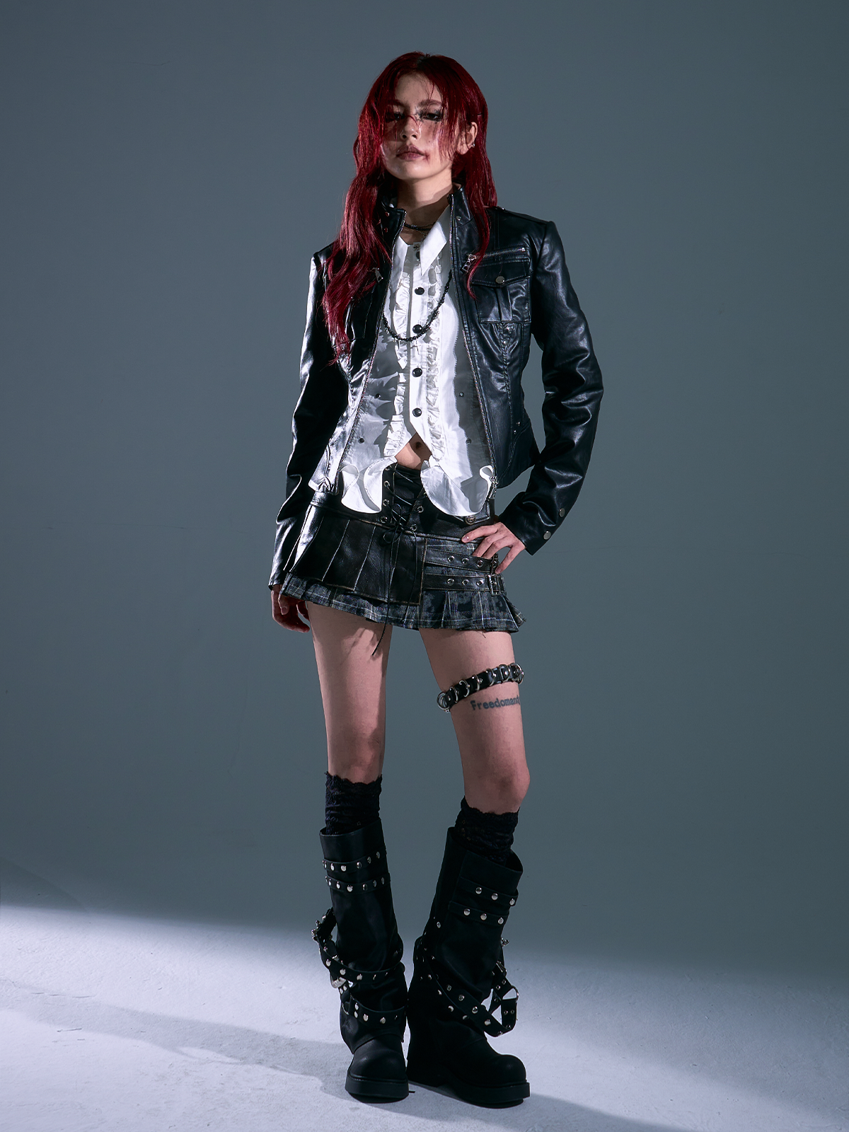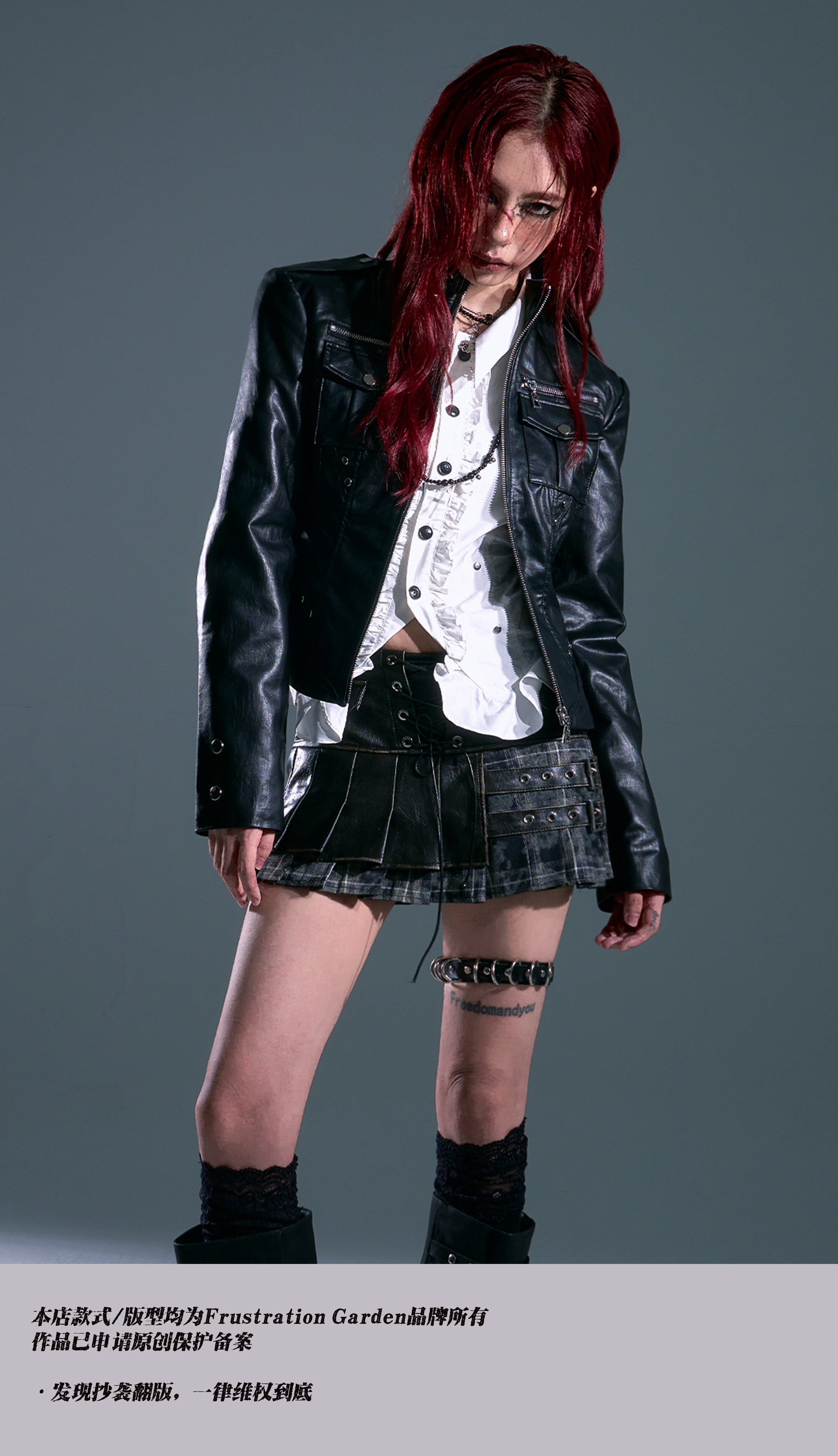 Lost after Garden Punk Rock Slim Fit Three-Dimensional Pocket Motorcycle Leather Jacket Women's Autumn Short Jacket Coat
