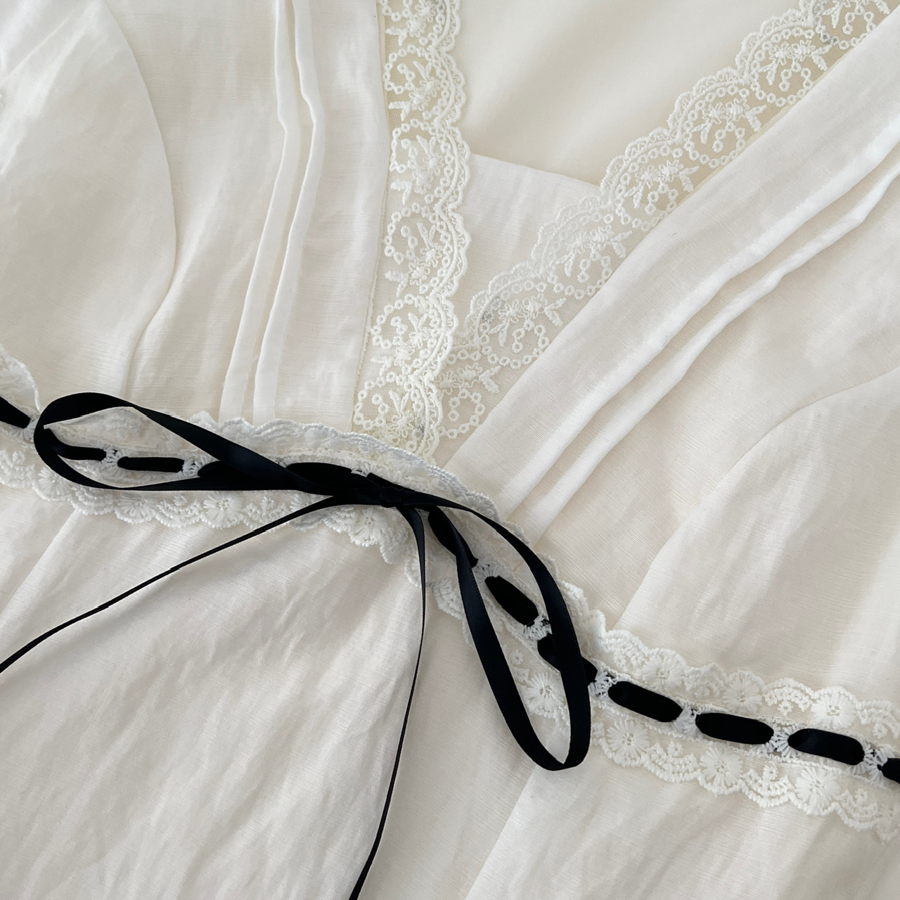 Peach LAOSHU Yingli Love Letter Vintage Style Lace Trim Design Bowknot Dress for Women