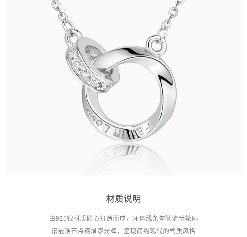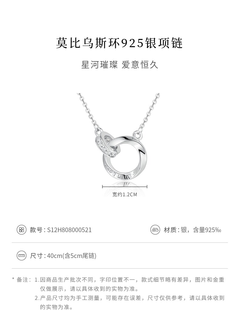 Lao Fengxiang Mobius Strip Ring Starry Sky 925 Silver Necklace Pendant for Women 520 Gift