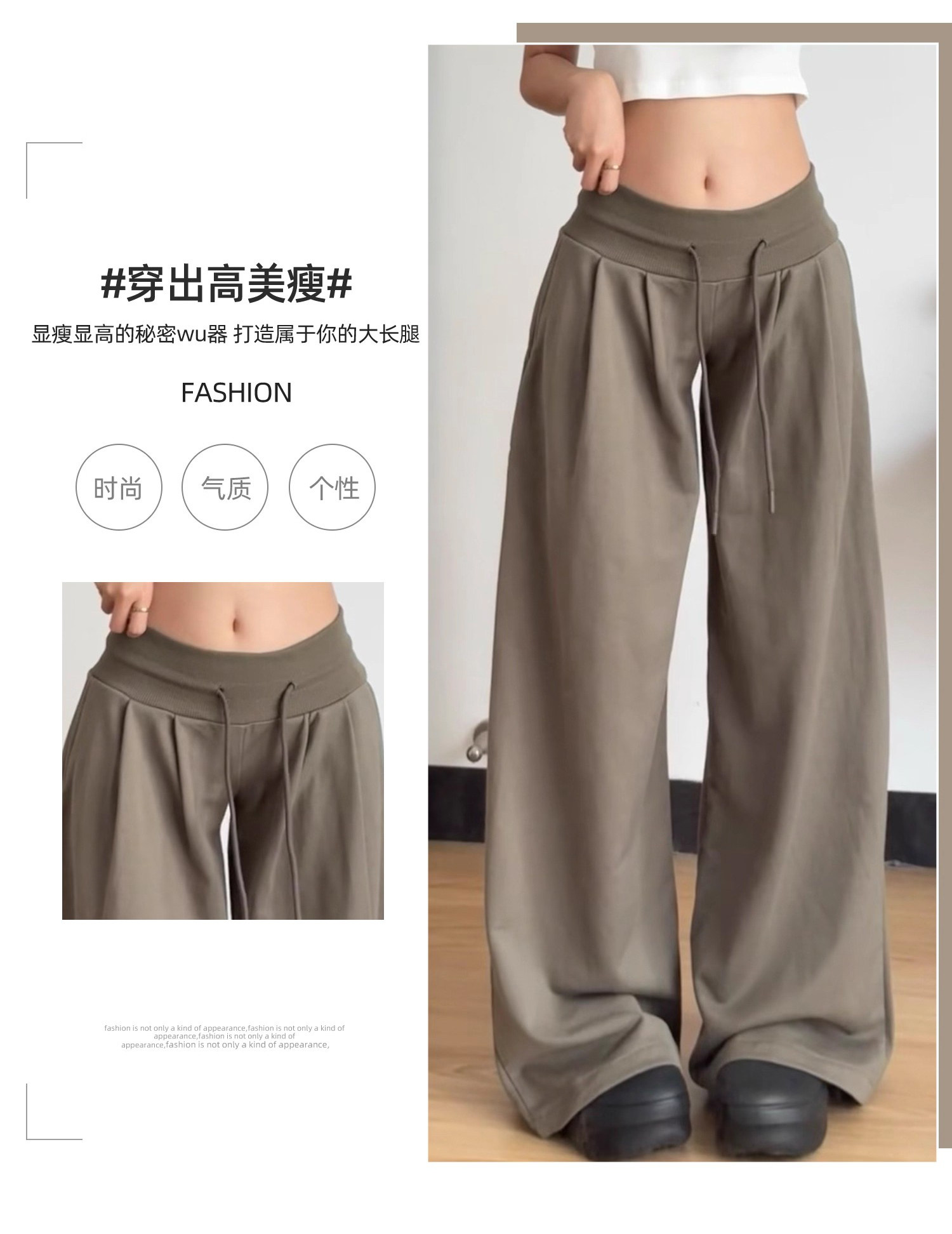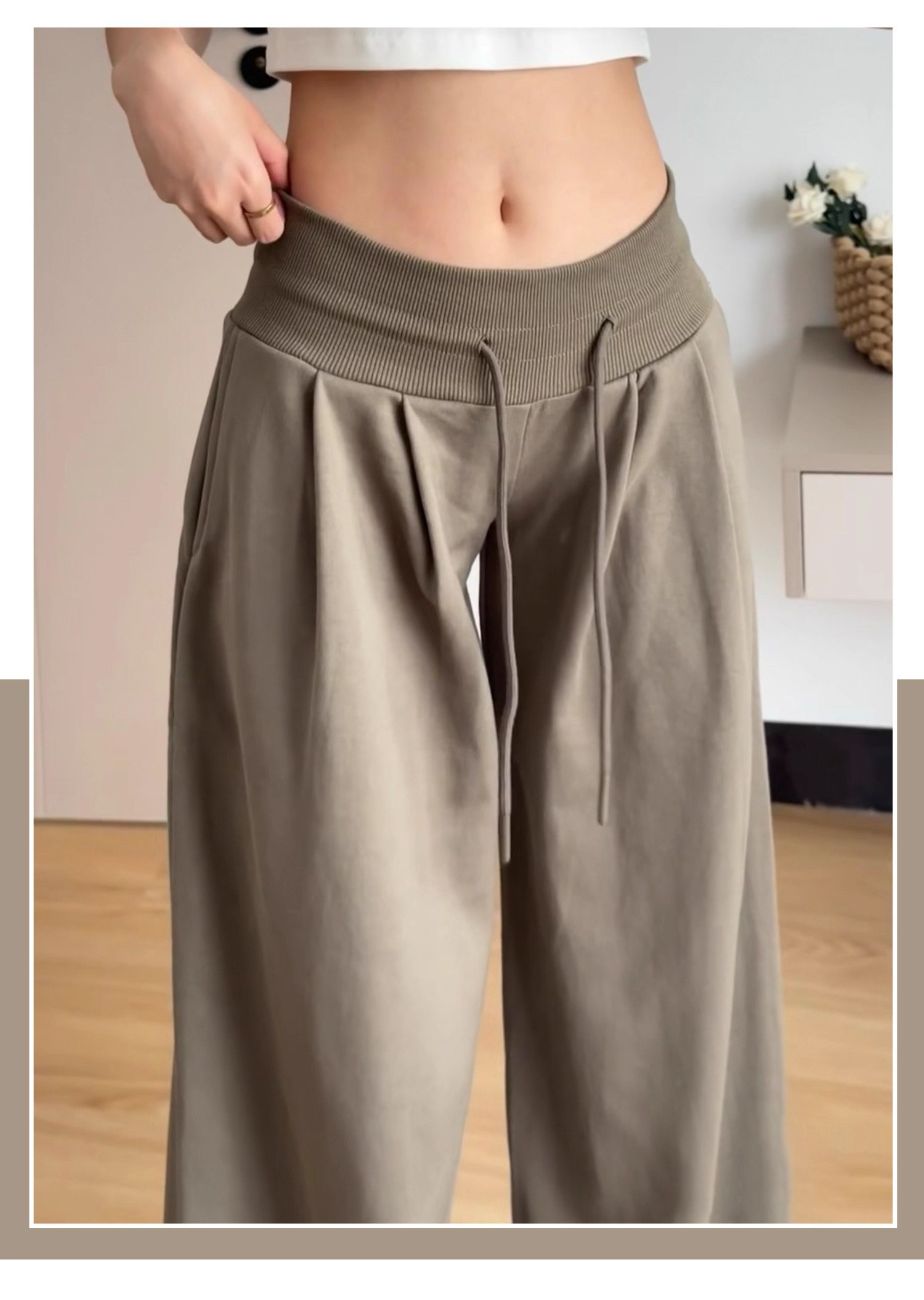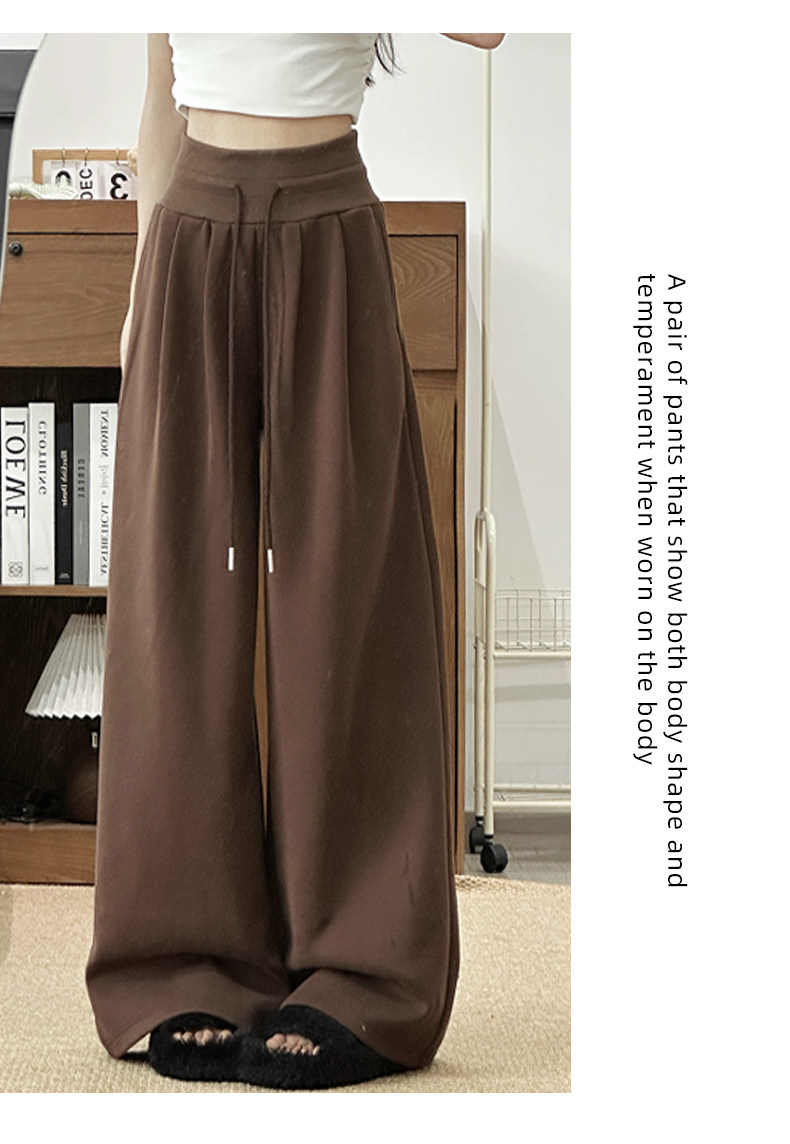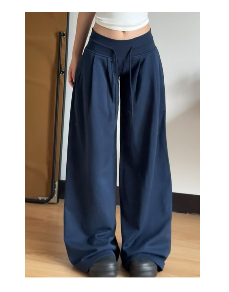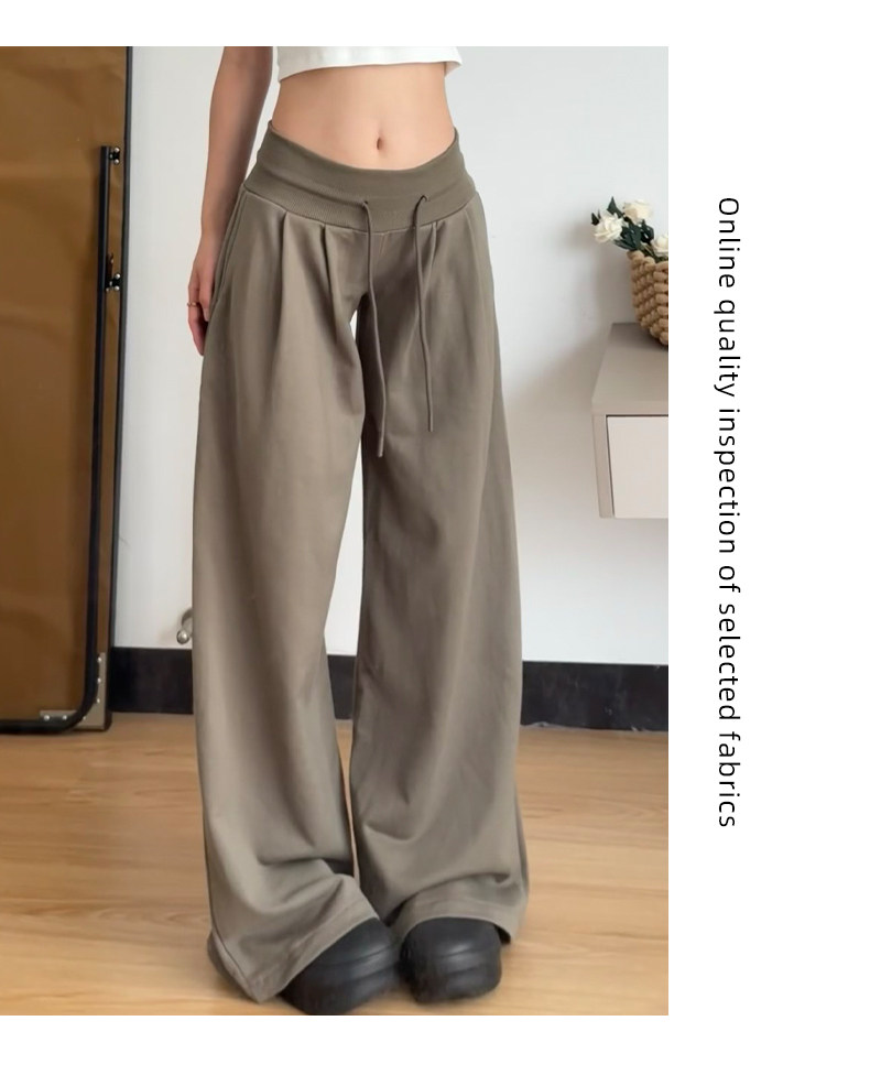 American Retro Style Women's Sweatpants Spring 2026 New Low-Waist Drawstring Loose Slimming Fleece-Lined Casual Wide-Leg Pants