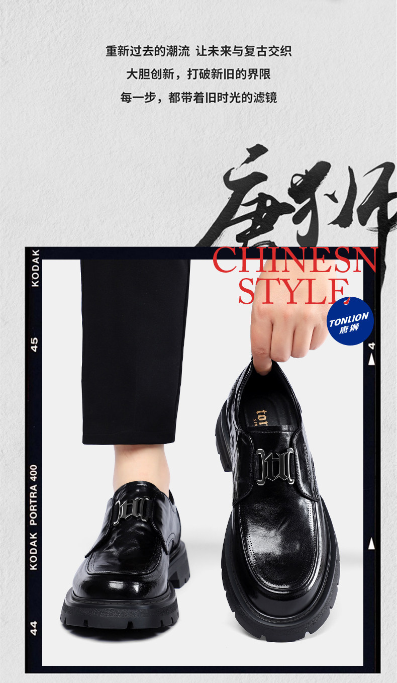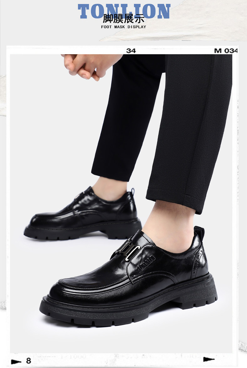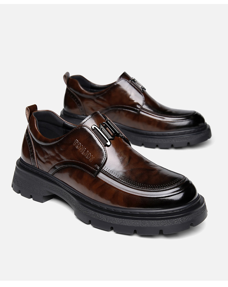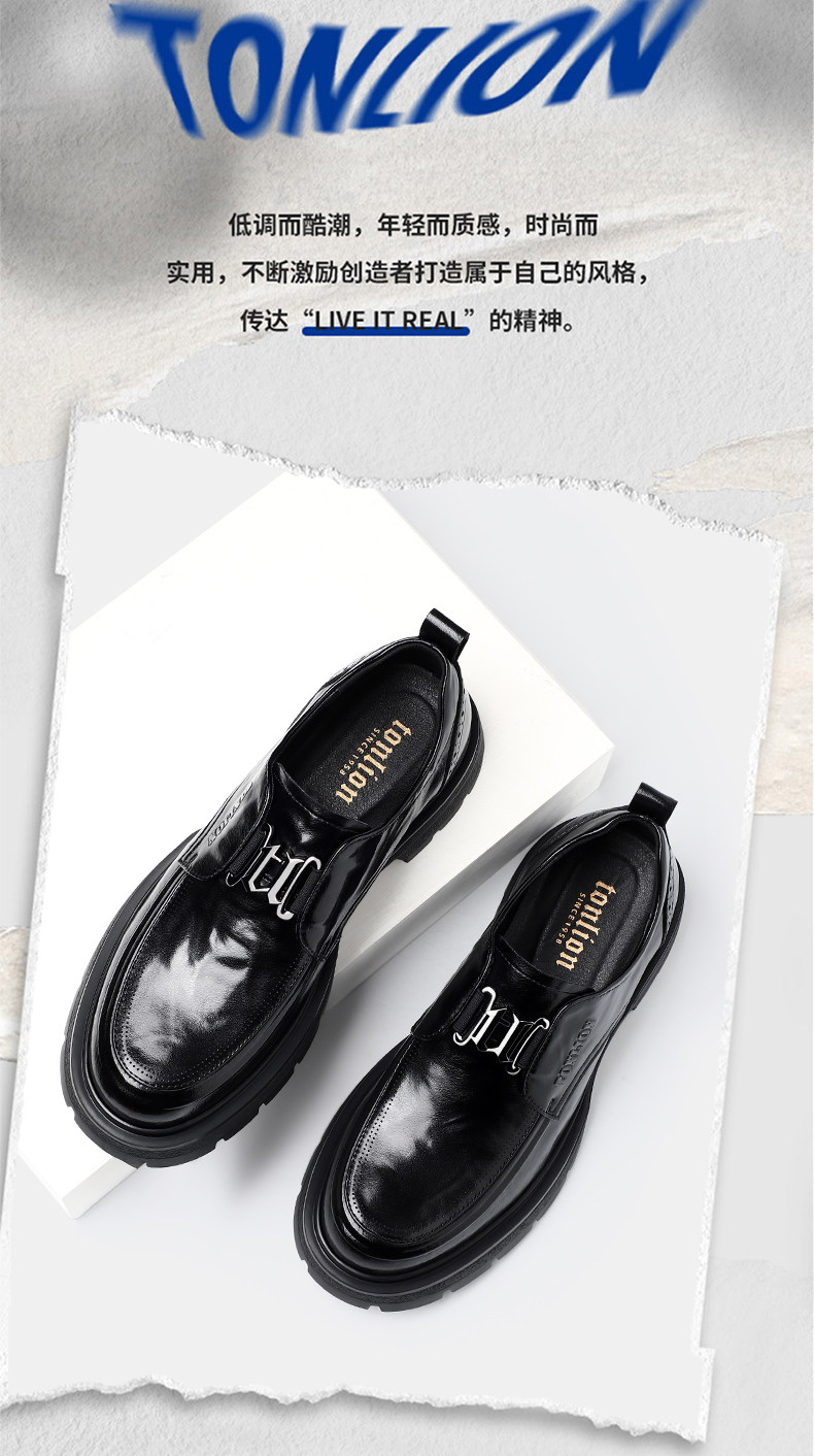 Tangshi Men's Shoes 2026 Spring New Genuine Leather Thick-Soled Slip-On Lazy Casual Business Formal Height-Increasing Leather Shoes