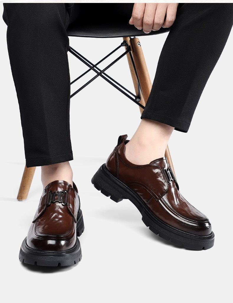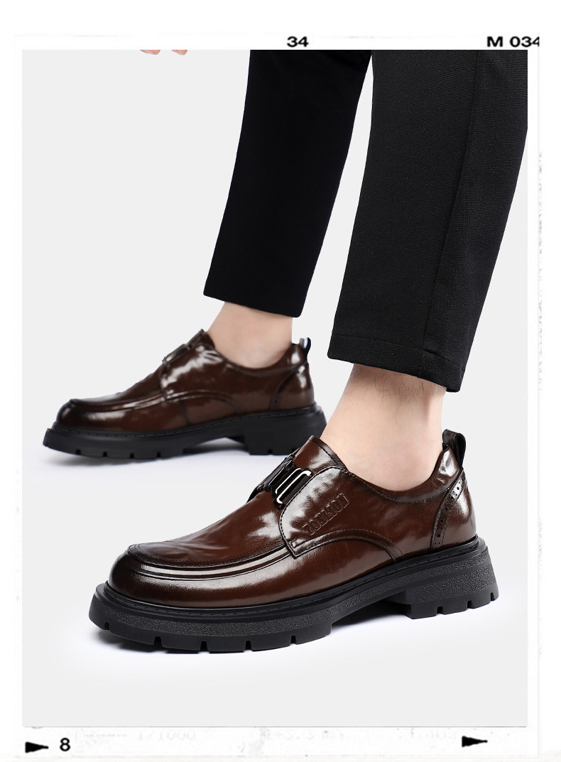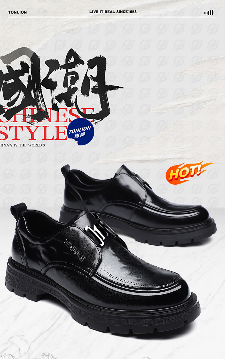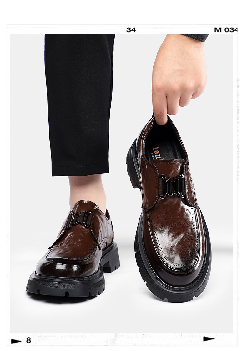 Tangshi Men's Shoes 2026 Spring New Genuine Leather Thick-Soled Slip-On Lazy Casual Business Formal Height-Increasing Leather Shoes