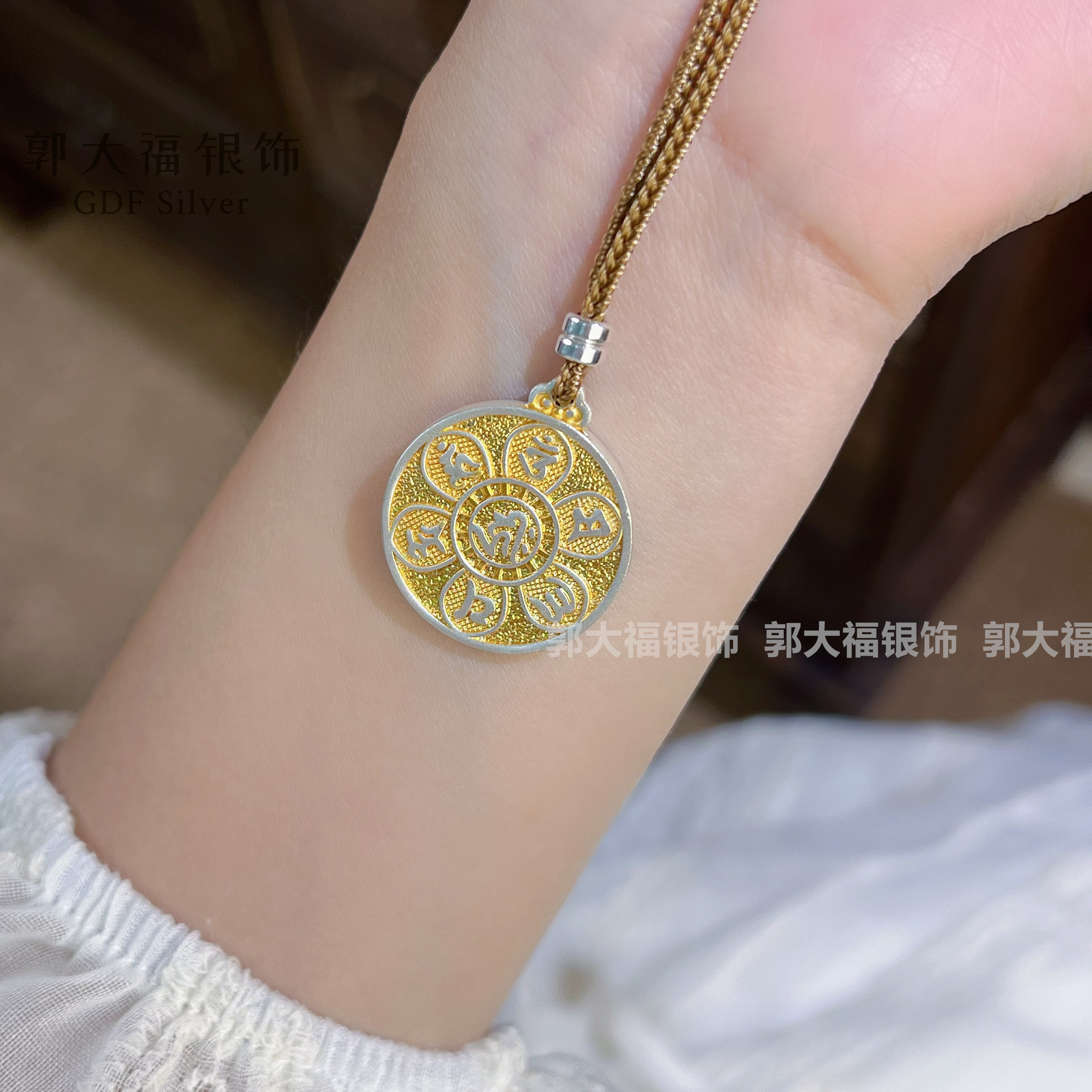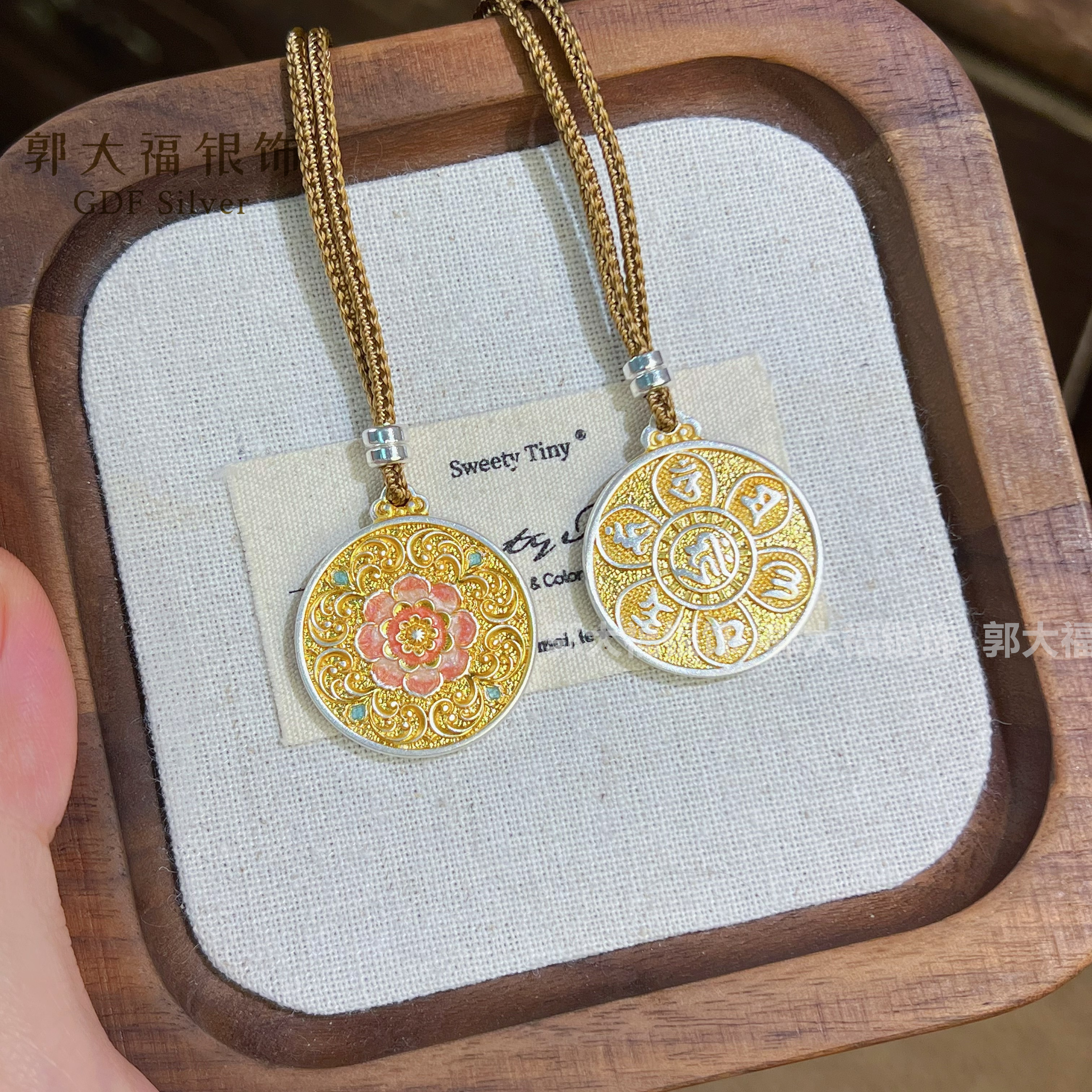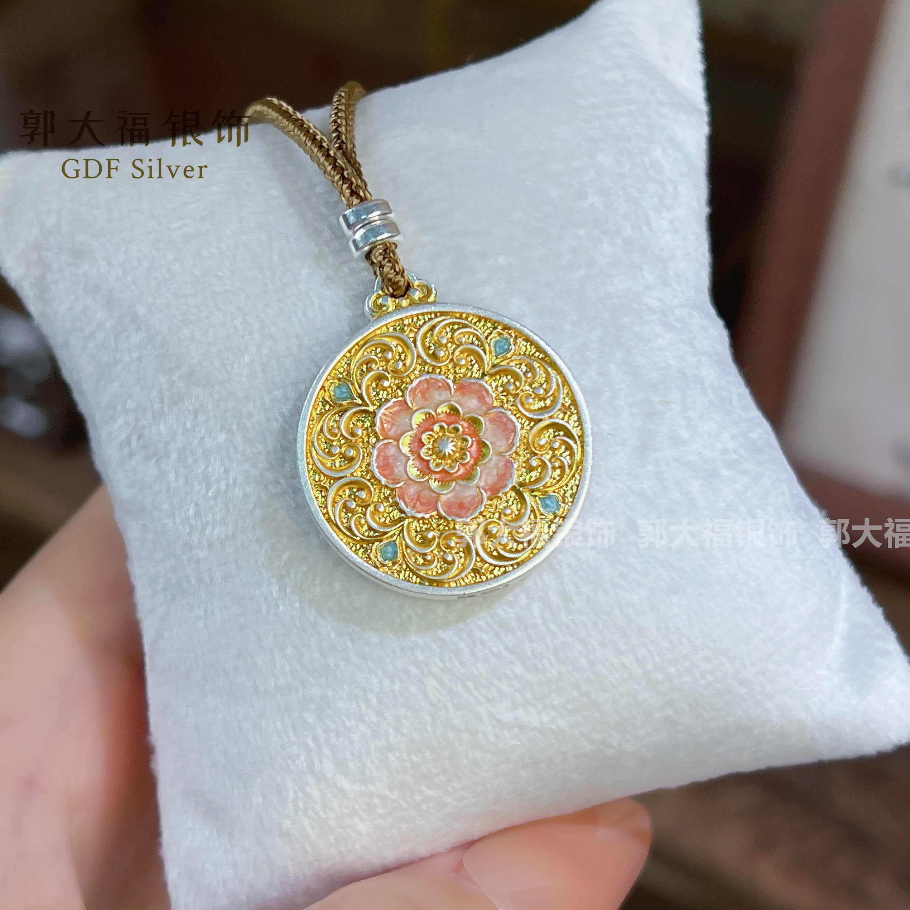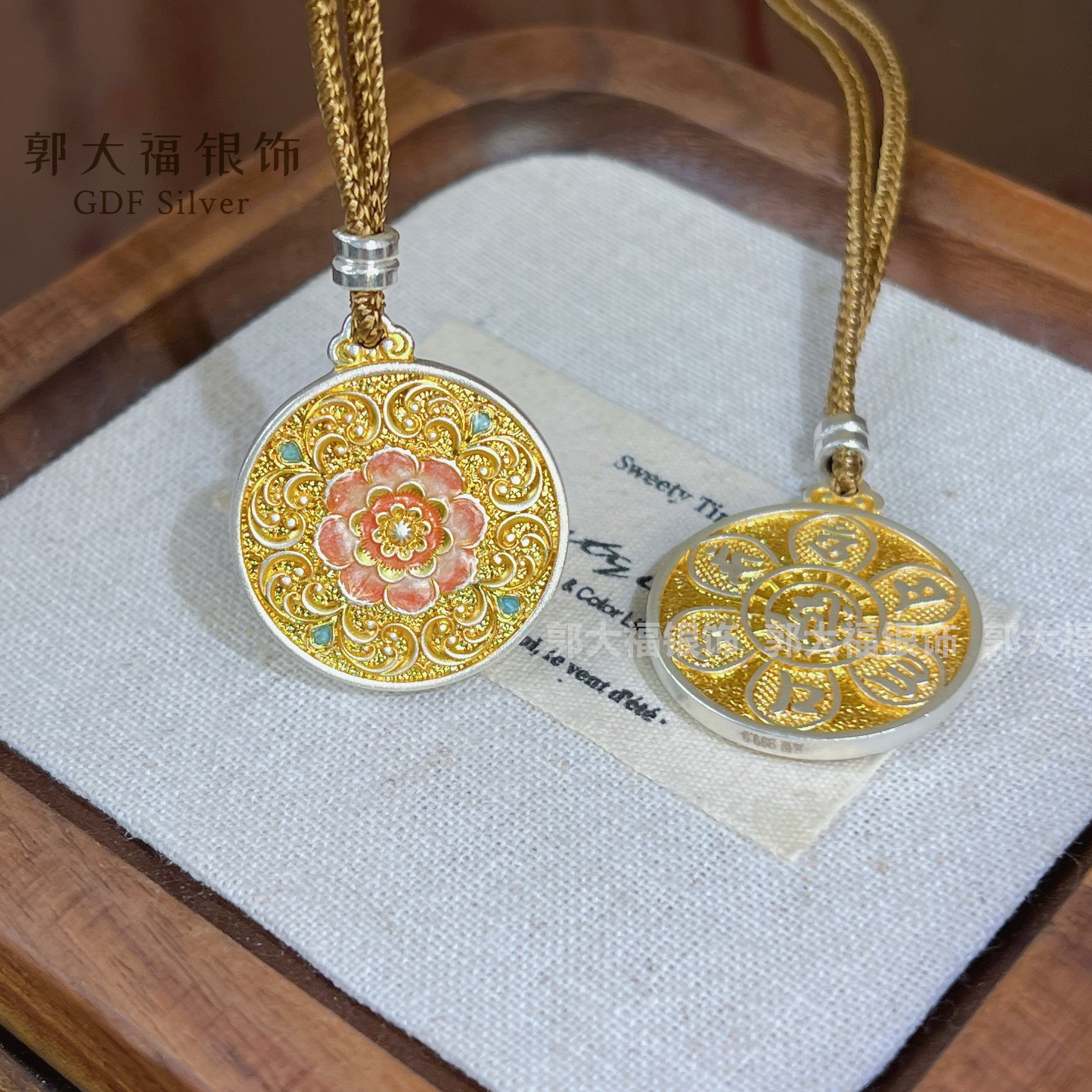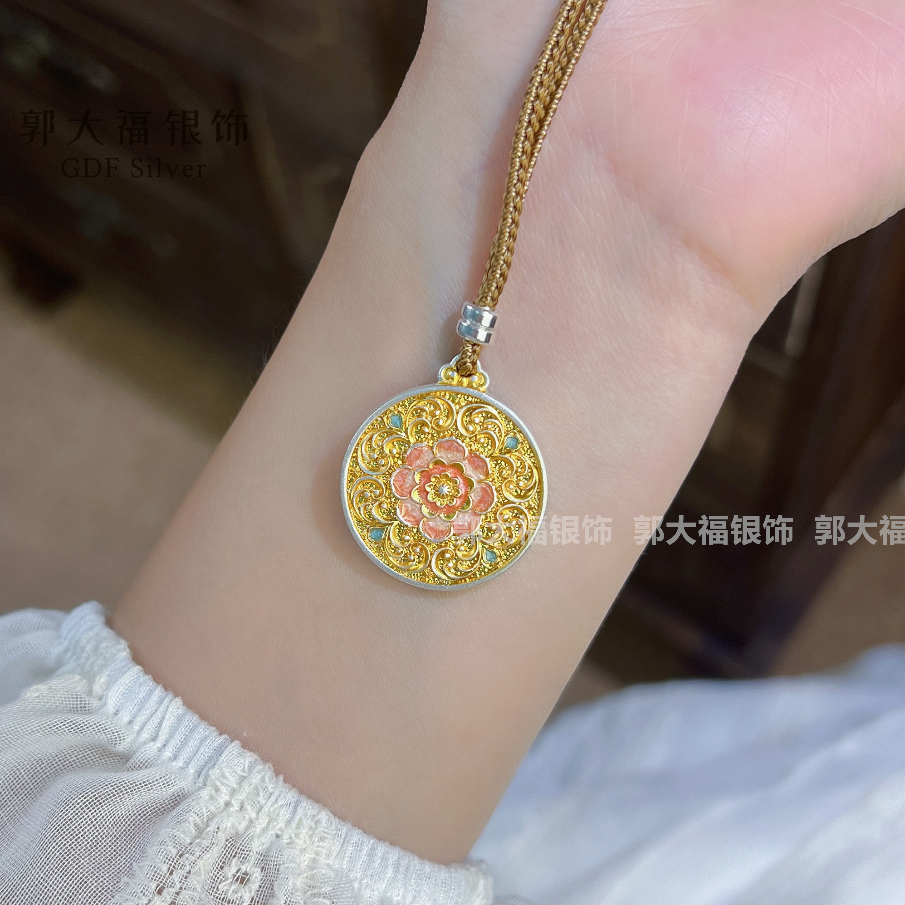 Fanghua 9999 Pure Silver New Chinese Style Gold-Plated Enamel Peony Flower Sterling Silver Pendant Necklace for Women Gift