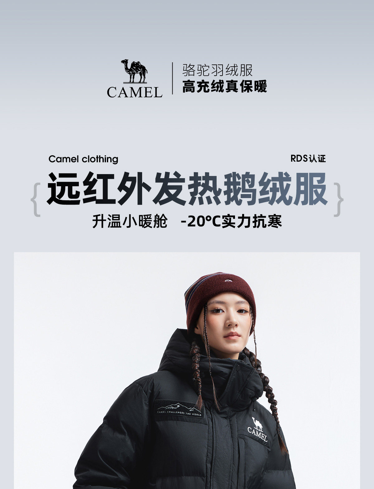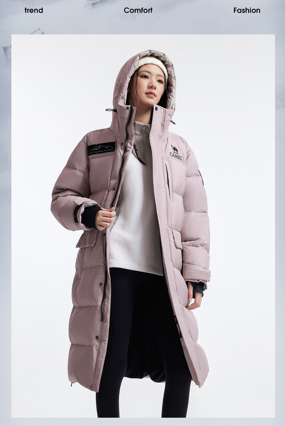【Goose Down】Camel Outdoor Extreme Cold down Jacket Winter New Model for Women and Men, Long Thickened Warm Puffer Jacket