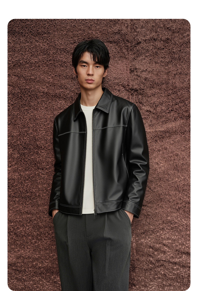 [Cowhide] Gxg Men's Genuine Leather Jacket Commuting Casual Coat Turn-Down Collar Fashion Jacket 2025 Autumn New Model