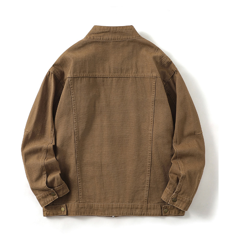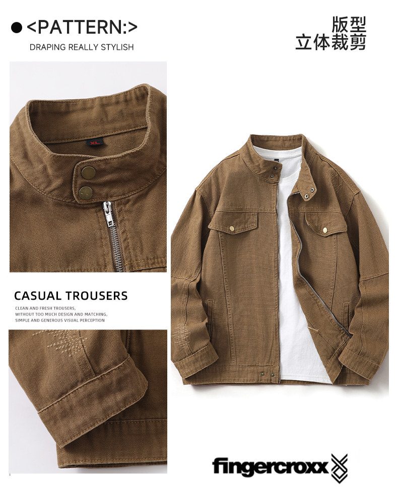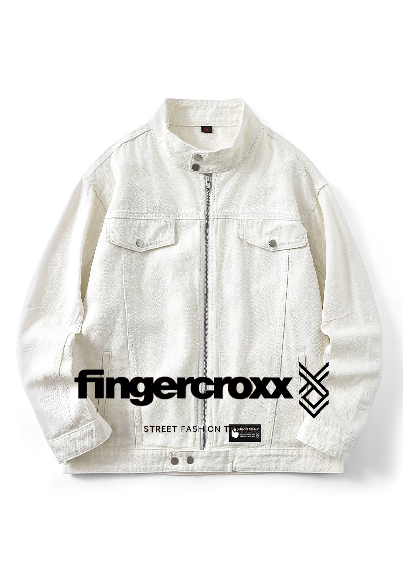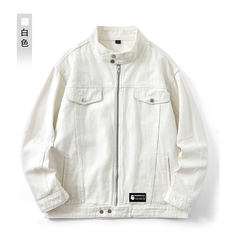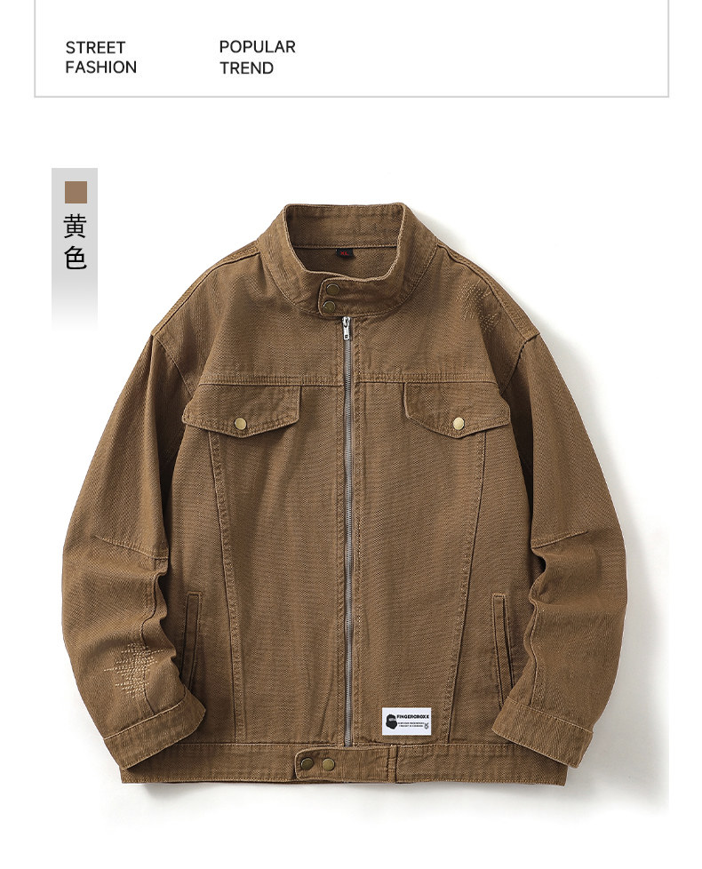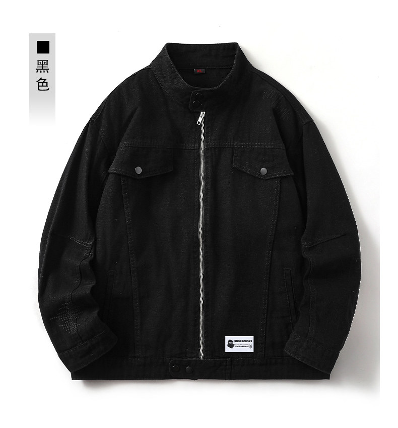 It:Fingercroxx American-Style Denim Jacket for Men 2026 Spring and Autumn Versatile Stand-Up Collar Loose Zipper Jacket B