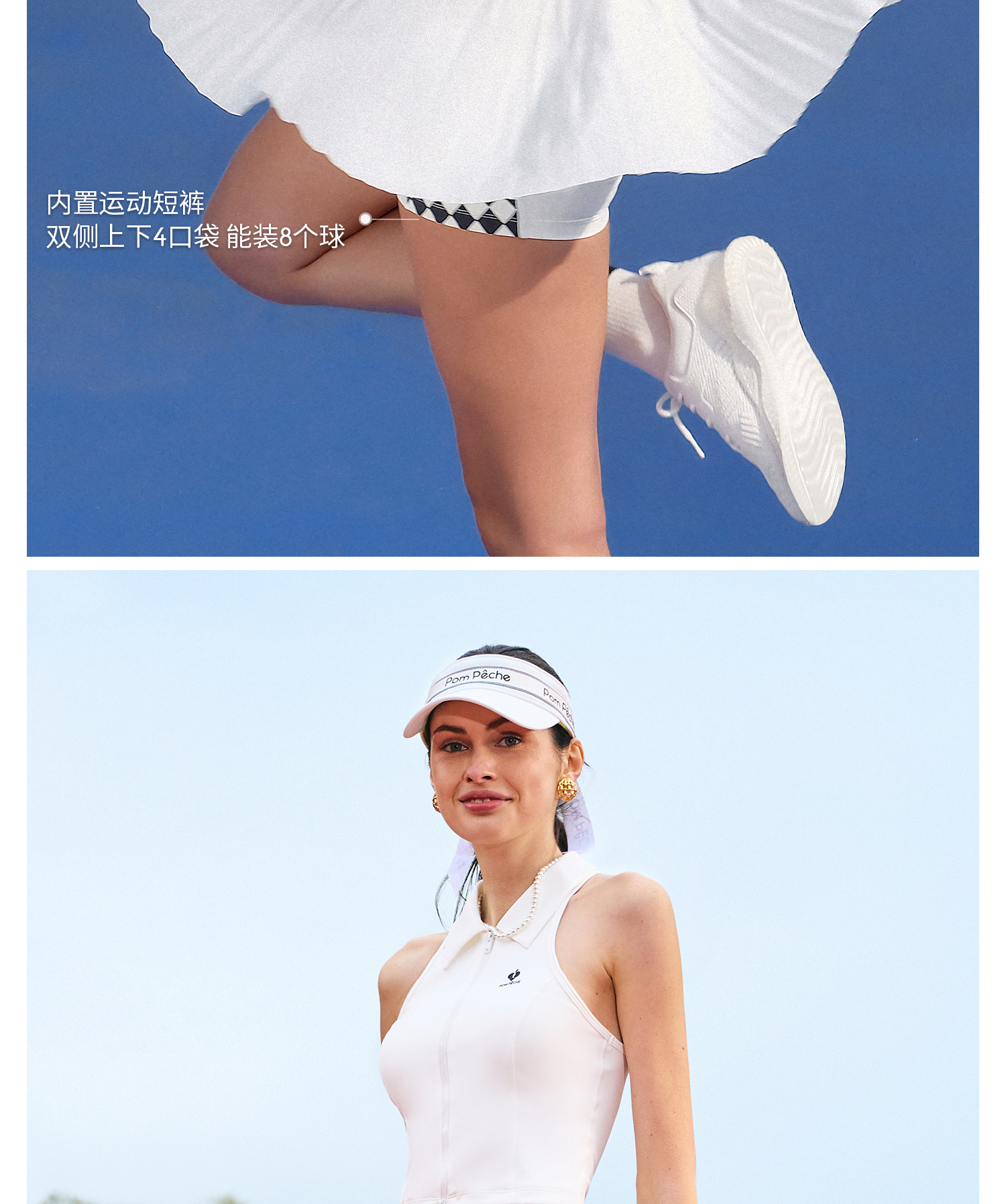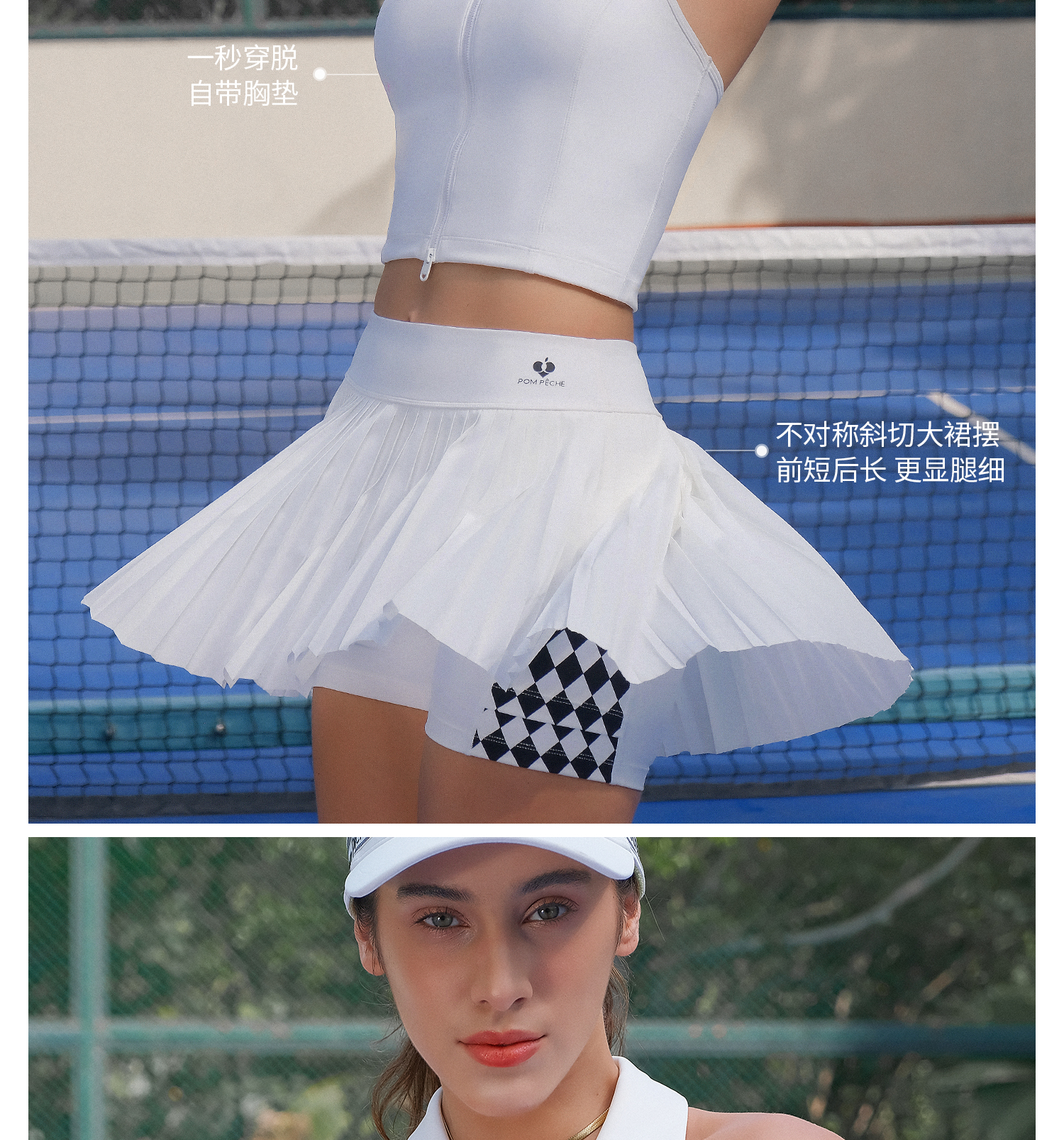Pompeche Tennis Skirt Women's Half Skirt Running Fitness White Sports Suit Women's Vest Fitness Clothing