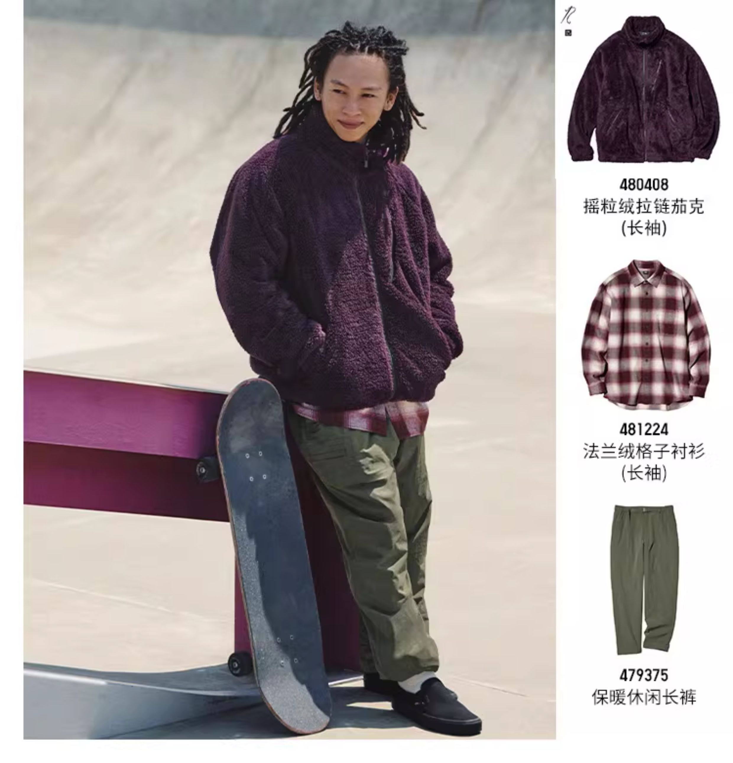 Regular Style Uniqlo Men's and Women's Warm Casual Pants/Casual Trousers 25 Autumn and Winter New Model 479375