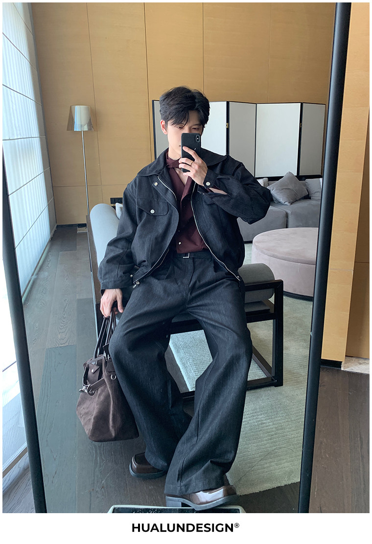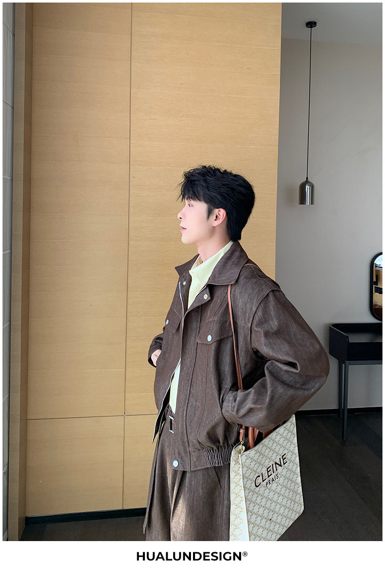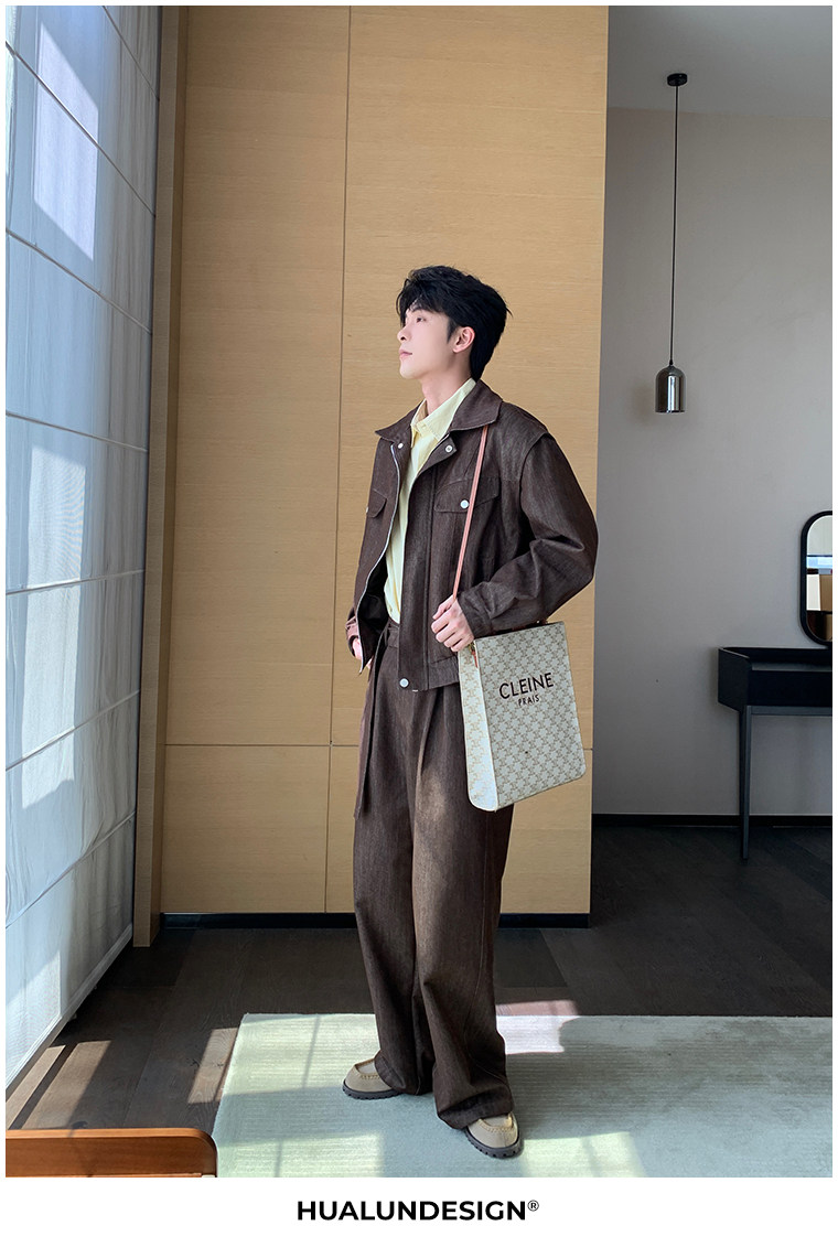 Hualun Autumn and Winter Original Color Denim Jacket Suit for Men, High-End 2025 New Style, Simple and Casual Complete Outfit