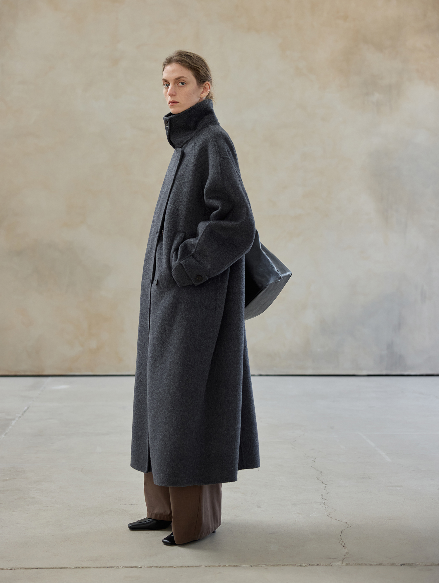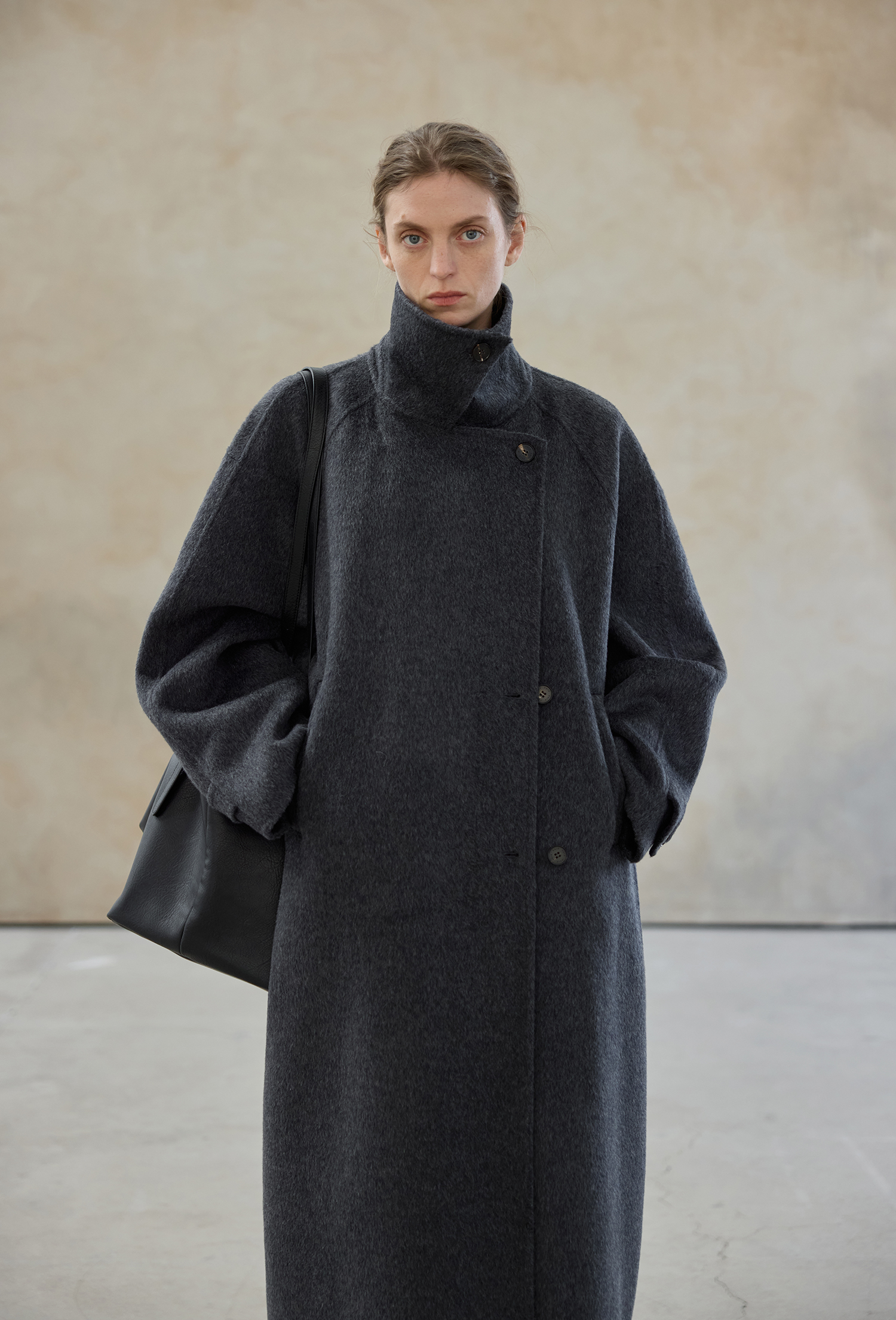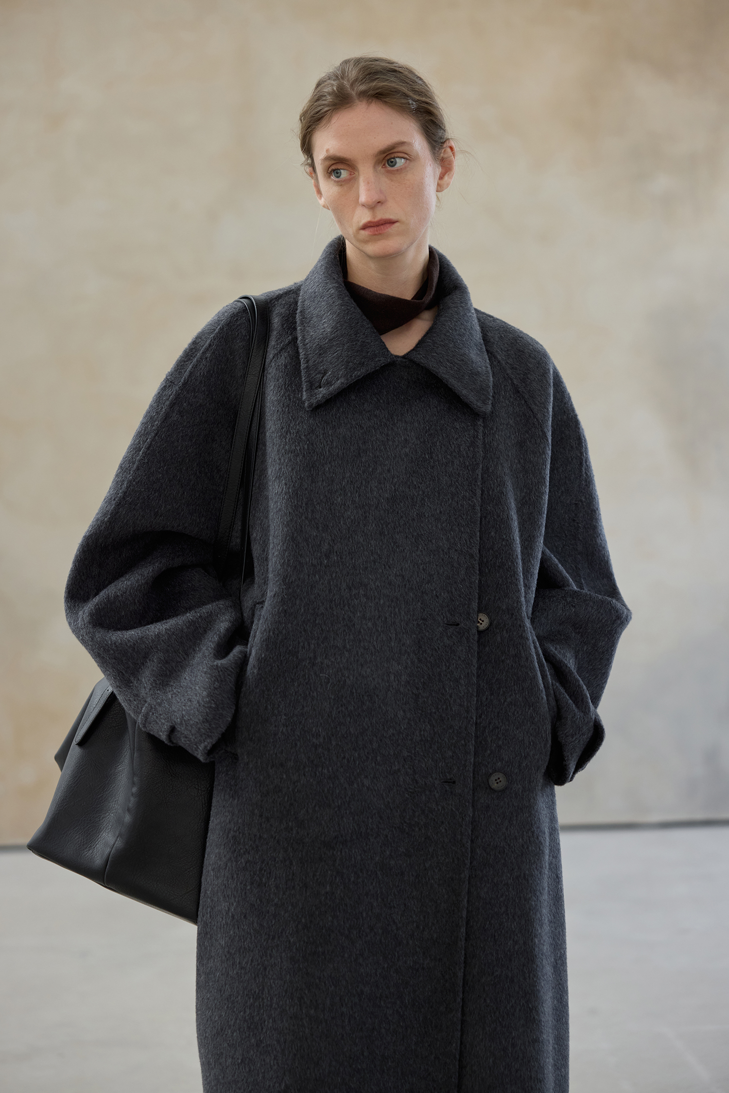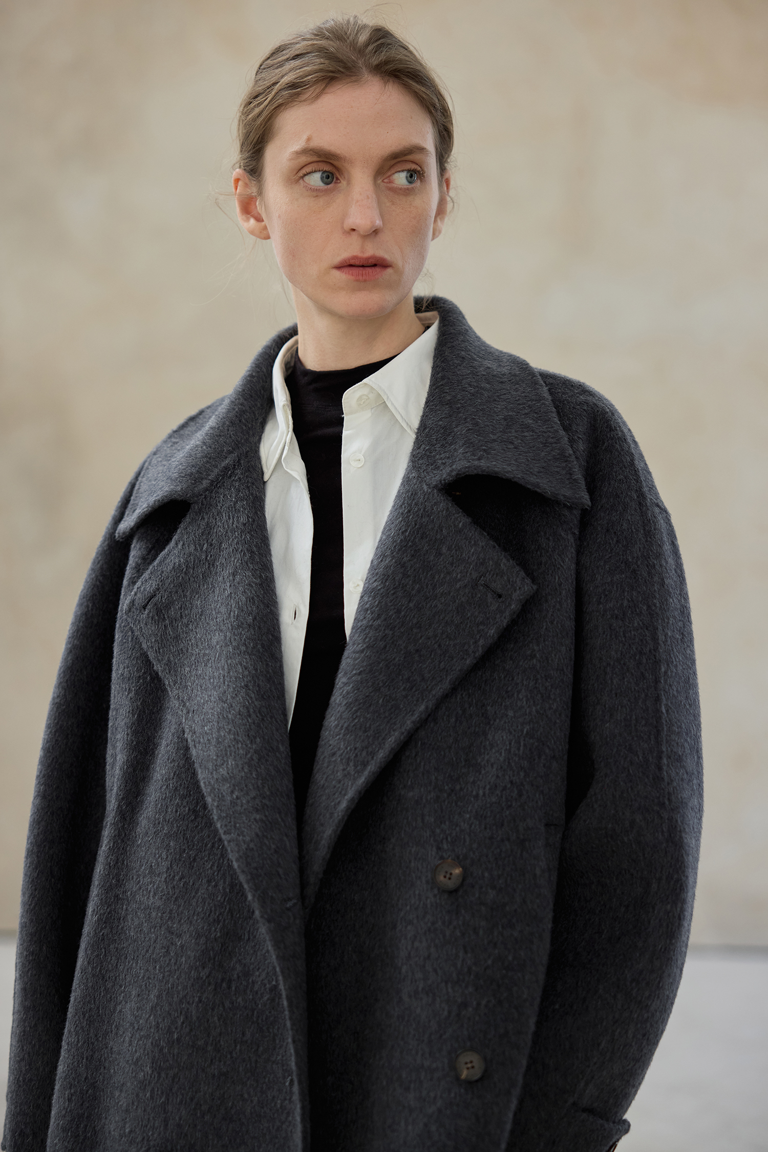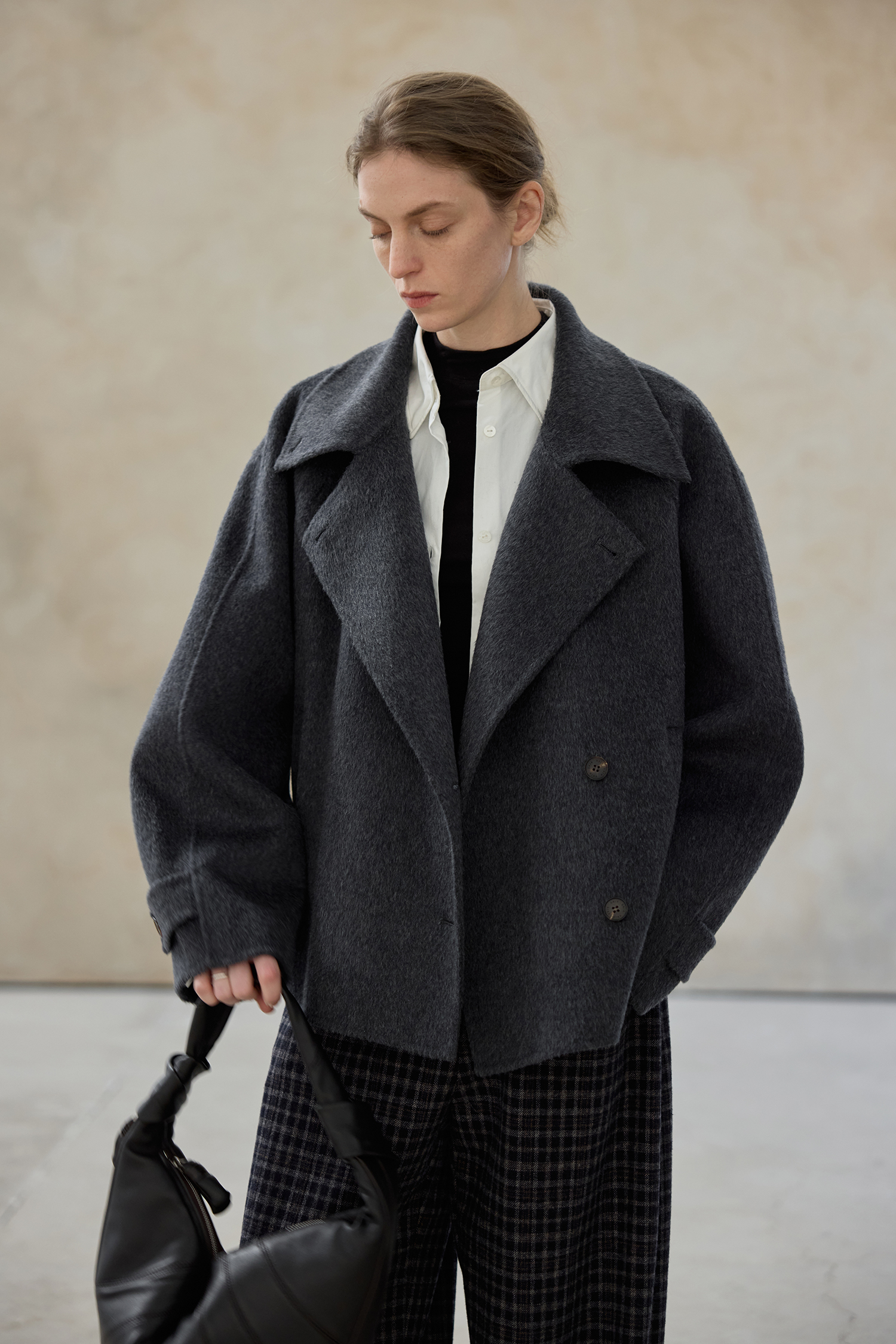 【Same Style as the Blogger】Saje Natural Poet's "Ussuyadan" Wool Relaxed Double-Breasted Double-Sided Nylon Coat